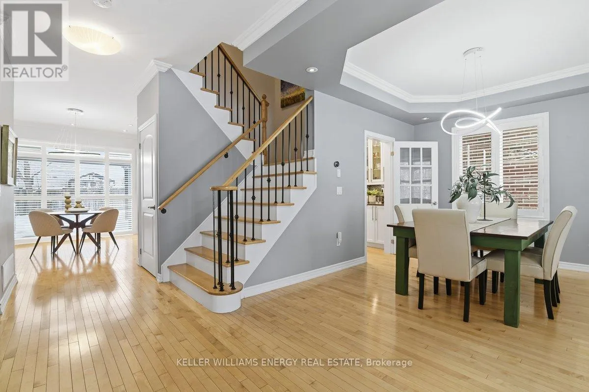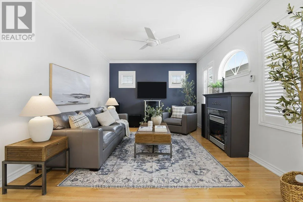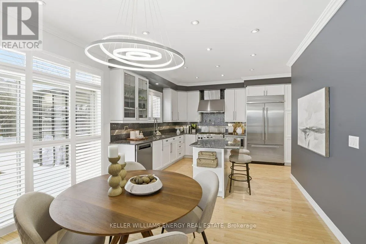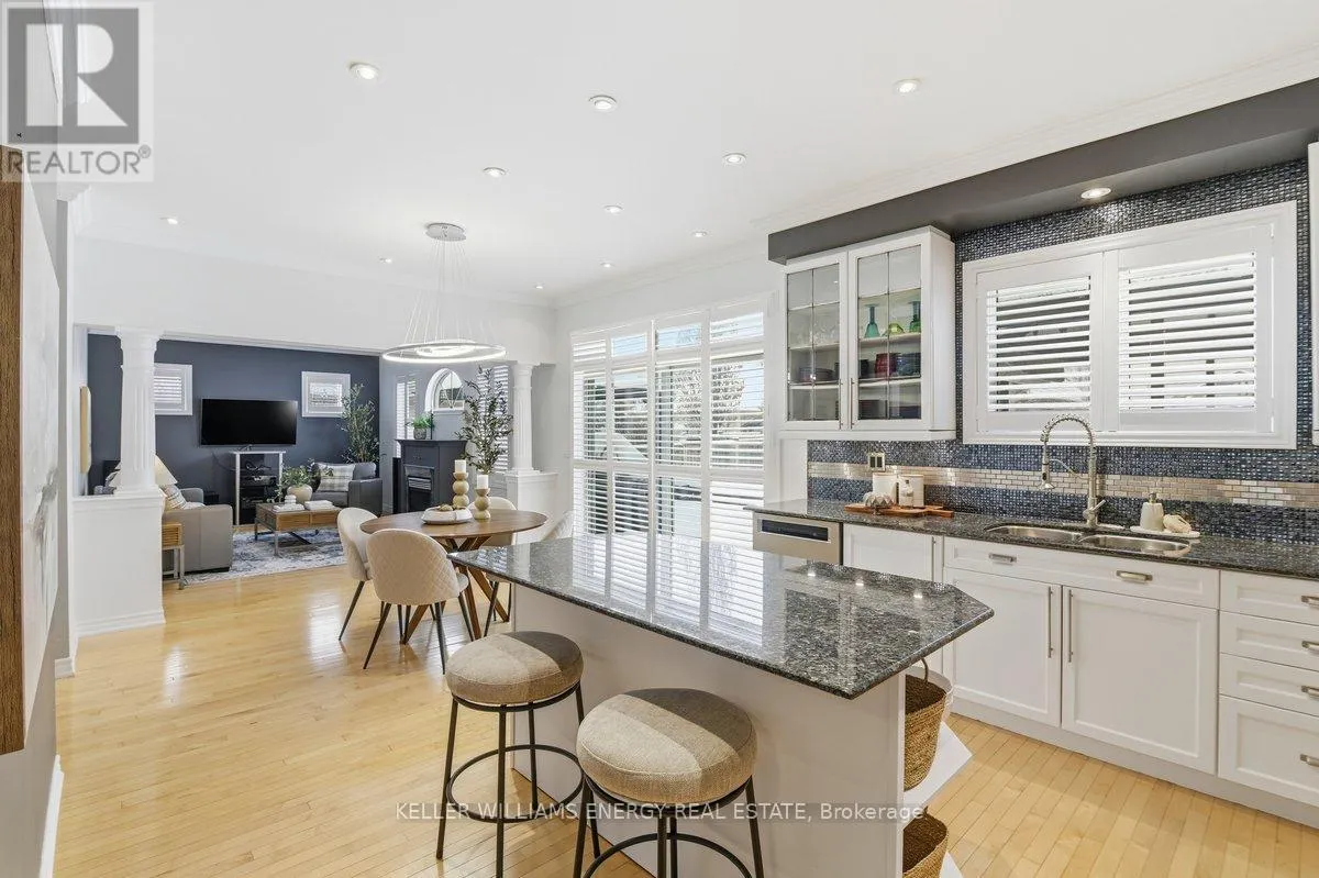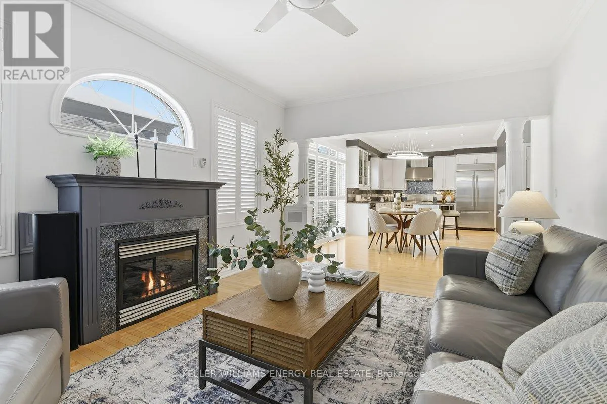 Concession Rd 3 & Mccorkell St Town & Country Victorian Executive Home | Private Bowmanville Enclave. Tucked quietly into a pedestrian-friendly enclave in Bowmanville, this Town & Country Victorian blends classic architecture with modern executive living. Despite its central location, the street itself is calm, walkable, and insulated from traffic-more morning dog walkers than passing cars. Professionally designed hardscaping leads to a grand foyer that opens to a flowing, open-concept main floor. Rich hardwood floors, crown mouldings, and recessed lighting set a polished tone throughout. The chef's kitchen anchors the home, featuring stainless steel appliances, a statement KitchenAid 6-burner gas range with pot filler, granite island, and a fully appointed butler's pantry-designed for both serious cooking and effortless entertaining. The family room, framed by California shutters and a fireplace, keeps everyone connected while the chef works center stage. A formal dining room with coffered ceiling adds elegance, while the main-floor laundry offers direct access to the insulated garage and a convenient ground-level walkout. The backyard is layered and intentional, easily accessed by a main floor walkout: a raised stone patio, private gazebo, two-season sunroom, and a charming potting shed-sun-filled, functional, and quietly luxurious. Upstairs, a dedicated work-from-home space opens to an east-facing covered balcony-coffee, sunrise, silence. Four oversized bedrooms include a spacious primary retreat with walk-in closet, spa-style ensuite, and whirlpool tub. This is a true executive residence-beautifully upgraded, casual yet thoughtfully designed-set within a peaceful neighbourhood that feels hidden in plain sight. (id:27476)