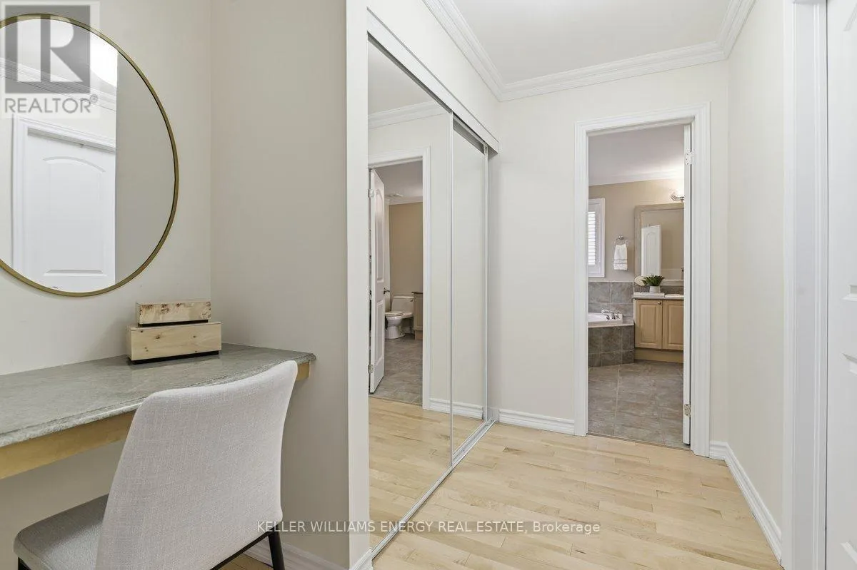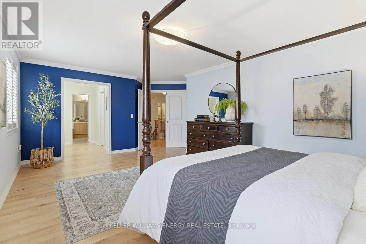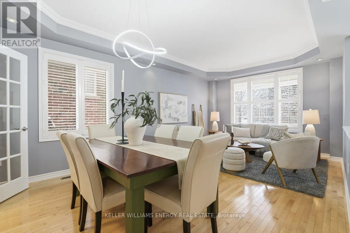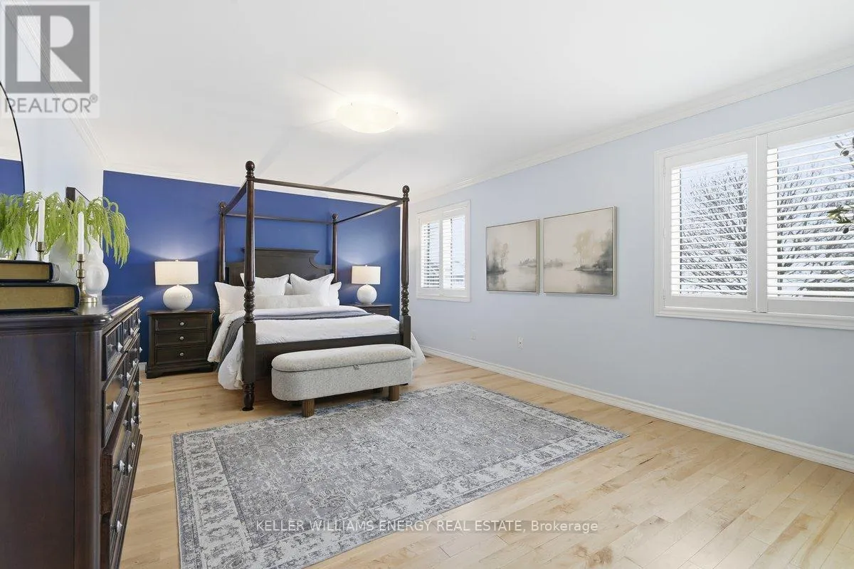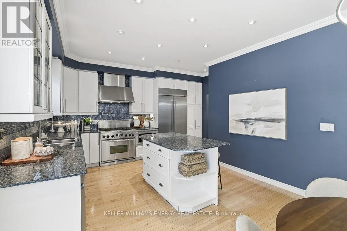 Concession Rd 3 & Mccorkell St Town & Country Victorian Executive Home | Private Bowmanville Enclave. Tucked quietly into a pedestrian-friendly enclave in Bowmanville, this Town & Country Victorian blends classic architecture with modern executive living. Despite its central location, the street itself is calm, walkable, and insulated from traffic-more morning dog walkers than passing cars. Professionally designed hardscaping leads to a grand foyer that opens to a flowing, open-concept main floor. Rich hardwood floors, crown mouldings, and recessed lighting set a polished tone throughout. The chef's kitchen anchors the home, featuring stainless steel appliances, a statement KitchenAid 6-burner gas range with pot filler, granite island, and a fully appointed butler's pantry-designed for both serious cooking and effortless entertaining. The family room, framed by California shutters and a fireplace, keeps everyone connected while the chef works center stage. A formal dining room with coffered ceiling adds elegance, while the main-floor laundry offers direct access to the insulated garage and a convenient ground-level walkout. The backyard is layered and intentional, easily accessed by a main floor walkout: a raised stone patio, private gazebo, two-season sunroom, and a charming potting shed-sun-filled, functional, and quietly luxurious. Upstairs, a dedicated work-from-home space opens to an east-facing covered balcony-coffee, sunrise, silence. Four oversized bedrooms include a spacious primary retreat with walk-in closet, spa-style ensuite, and whirlpool tub. This is a true executive residence-beautifully upgraded, casual yet thoughtfully designed-set within a peaceful neighbourhood that feels hidden in plain sight. (id:27476)