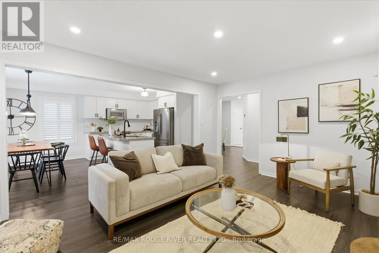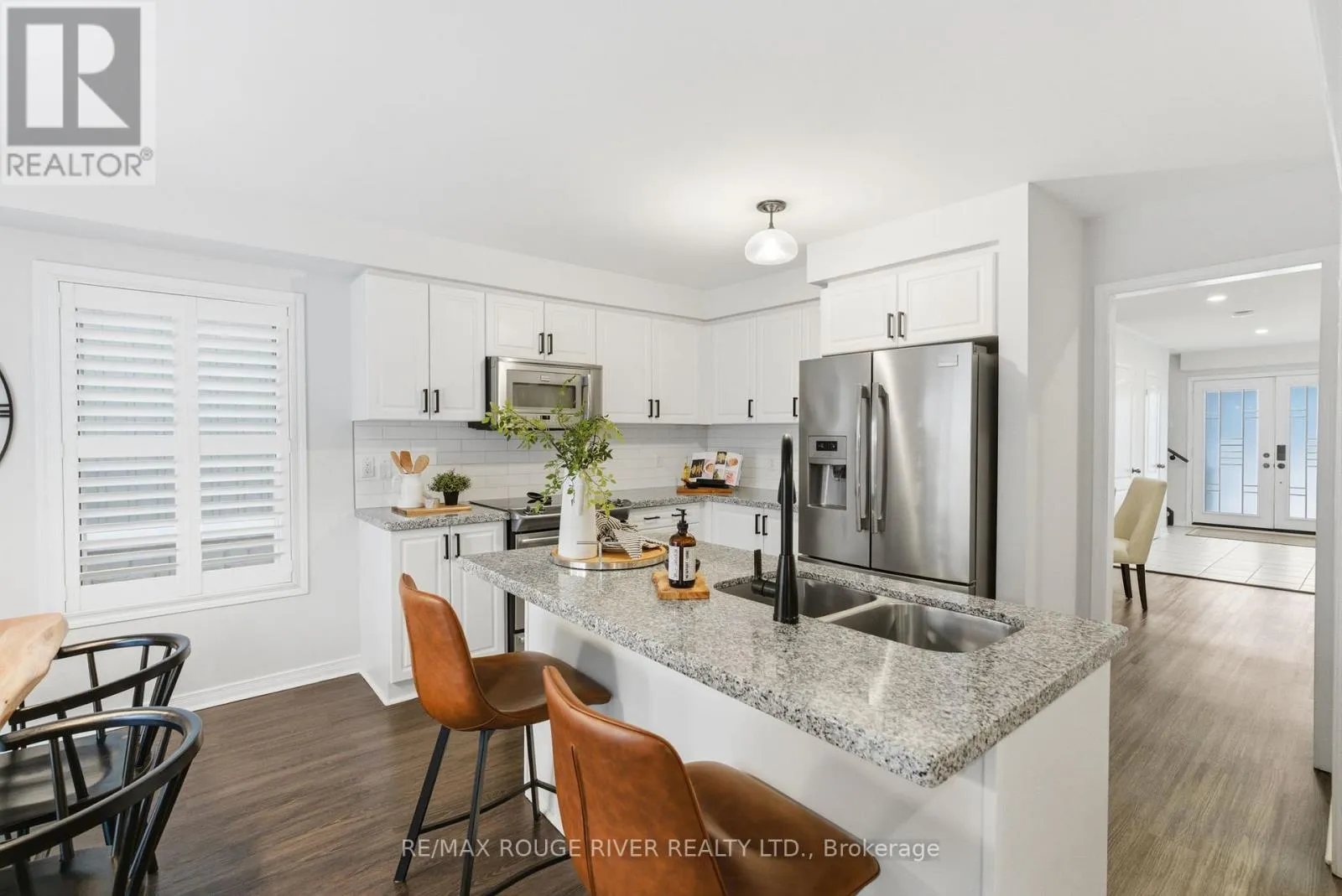 Cross Streets: Edwin Carr & Northglen. ** Directions: East from Bowmanville Ave on Northglen to Edwin Carr. Beautifully upgraded, spacious 3+1 bedroom, 4-bathroom home offering incredible versatility for families, professionals, and multi-generational living. Located across from Northglen Park and just a 2 minute walk to the new Northglen Orchard P.S. (JK to grade 8 opening September 2026), this property combines everyday convenience with exceptional functionality. The main floor welcomes you with a bright living and dining area featuring pot lights, upgraded window coverings, laminate flooring, and California shutters. The cozy family room with a gas fireplace provides the perfect space to unwind, while the large kitchen impresses with granite countertops, stainless steel appliances, a breakfast bar, and a walkout to a deck overlooking a fully fenced backyard oasis, ideal for entertaining or relaxing outdoors. A dedicated office/den/workspace on the second floor makes working from home effortless featuring a built-in desk. Added practicality comes with main-floor laundry with direct garage access, upgraded lighting, faucets, and custom shelving. Upstairs, the spacious primary bedroom serves as a true retreat, complete with a large 4 piece ensuite bathroom and two walk-in closets. Two additional bedrooms offer generous closet space and natural light. The fully finished, completely independent basement is a standout feature, offering a true in-law suite with its own separate side entrance. It includes a full kitchen with under cabinet lighting, large living/dining area, private laundry, one bedroom with a 3-piece ensuite and pot lights throughout, perfect for extended family or potential rental income. Additional highlights include a 1.5 car wide garage, extended and wide driveway with parking for up to 4 vehicles, upgraded bathroom lighting and thoughtful finishes throughout the home. This is a rare opportunity to own a move-in-ready property in front of a park and brand new school that truly checks every box for space, comfort, and flexibility. (id:27476)