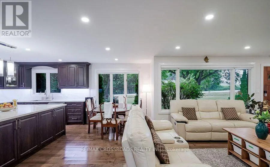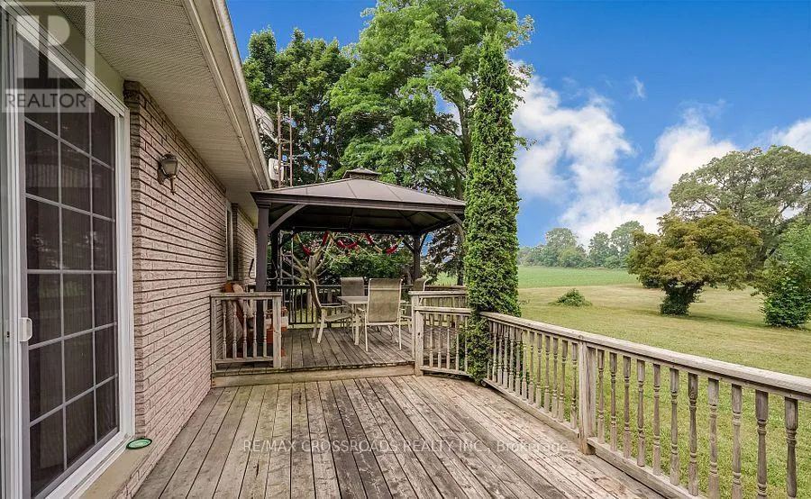 Baseline Road west and Green road Beautiful Brick Bungalow on 1.5 Acres ! Don't miss this rare opportunity to own a fully renovated (2022) brick bungalow nestled on a stunning 1.5-acre lot, complete with mature apple and pear trees, a fenced garden area, and plenty of backyard space to enjoy with family and friends.This charming home features a spacious 2-car attached garage and a bright, modern interior family-sized kitchen renovated in 2023 and includes brand-new cabinets, a massive quartz center island with added storage, and high-end stainless steel appliances , gas stove, built-in oven, 4-door fridge, built-in dishwasher all overlooking the open-concept dining and living areas. A large picture window in the living room offers stunning views of the front yard.Enjoy hardwood flooring throughout (2022), pot lights in the kitchen, living, and family rooms, and a cozy family room with a wood-burning fireplace, custom built-in showcase and a walk-out to the deck and backyard. 200 Amps upgraded electrical panel (2023).The front yard mature trees provide shade all summer long, creating a peaceful, private setting.This home offers both comfort and elegance ideal for those seeking space, nature, and modern upgrades in one perfect package (id:27476)