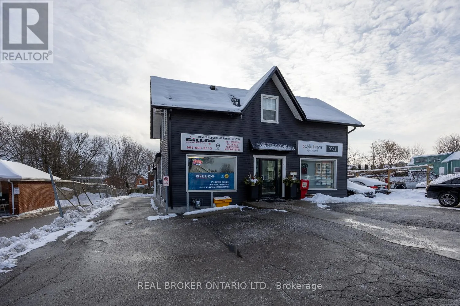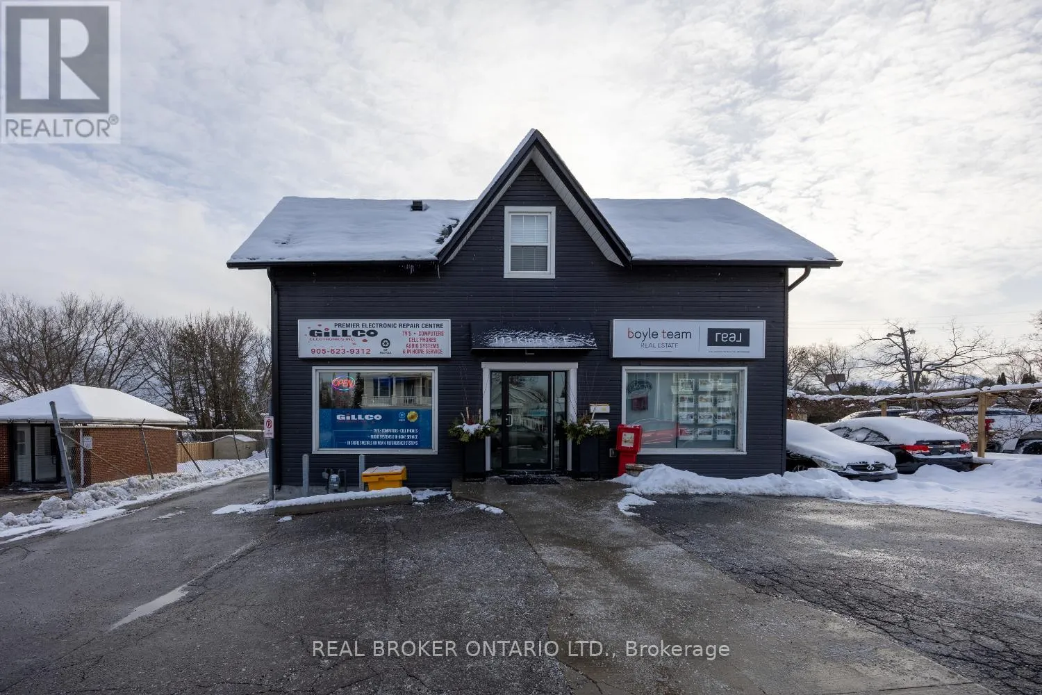 Cross Streets: King St E/Liberty St N. ** Directions: Exit at Liberty St N and head north to King St E. Turn west onto King St E and building is on south side of street. Seize the chance to own a 3-unit, mixed-use commercial building ideally located in the heart of downtown Bowmanville including parking for all units, offering a total of 9 on-site parking spaces-a rare and valuable feature in a downtown setting. Quick and easy access to Hwy 401. This versatile property features two ground-level commercial/retail units and a one-bedroom residential apartment upstairs, offering strong income potential and flexibility for investors or owner-occupiers. One commercial unit is occupied by an excellent, long-standing tenant, providing stable revenue from day one. Situated in a high-traffic, highly visible location, the property is perfectly positioned to attract and support successful businesses. Additionally there is a 1.5 car attached garage. With its prime location, solid tenancy, and mixed-use appeal, this property presents a fantastic opportunity to invest in Bowmanville's vibrant commercial corridor. 3 Separate hydro meters. Front door to lobby (2025). (id:27476)
