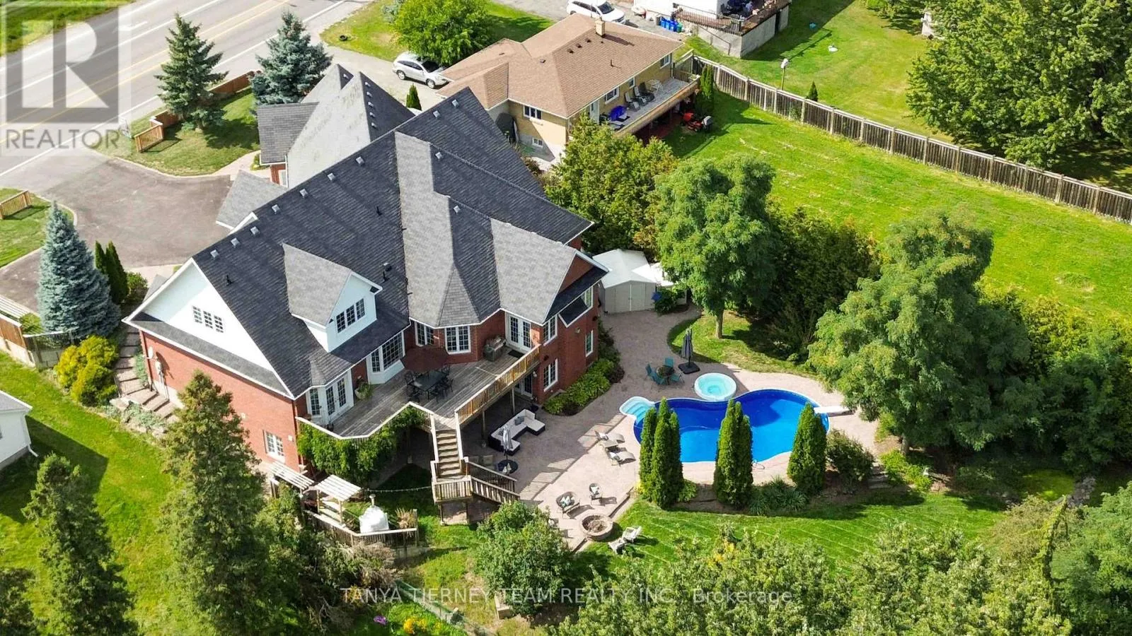 Taunton/Townline Truly one-of-a-kind, this custom 4+2 bedroom, 5-bathroom estate offers over 6,500 sq ft of luxurious living space on a spectacular 245-ft deep treed ravine lot-an opportunity that is nearly impossible to replicate today, as you could not build a home of this size or acquire a property like this for under $2 million. Designed with multi-generational living in mind, this home features a spacious open-concept layout, a fully finished walkout basement with separate entrance, and flexible living areas ideal for extended family or in-law accommodation.The gourmet kitchen is the heart of the home, complete with quartz countertops, oversized island, walk-in pantry, built-in coffee bar, and breakfast area overlooking a private backyard retreat. The upper level includes 4 large bedrooms and a media room, while the basement offers 2 additional bedrooms, a large rec room, office, spa-like bathroom, and cozy in-floor hydronic heating-perfect for independent living with comfort and privacy.Step outside to your own resort-style oasis: an elevated deck with ravine views, covered walkout patio, in-ground pool, jacuzzi hot tub, built-in fire pit, gas BBQ hookup, and a handcrafted wood-burning pizza oven. Whether entertaining or unwinding, this backyard has it all.An attached 882 sq ft 3-car garage with heated workshop, garden door access, and ample parking adds function to elegance. Located minutes from Hwy 407 and steps to top schools, parks, big box stores, Cineplex, and more, this exceptional home blends space, style, and multi-generational living in one of Clarington's most desirable settings! (id:27476)