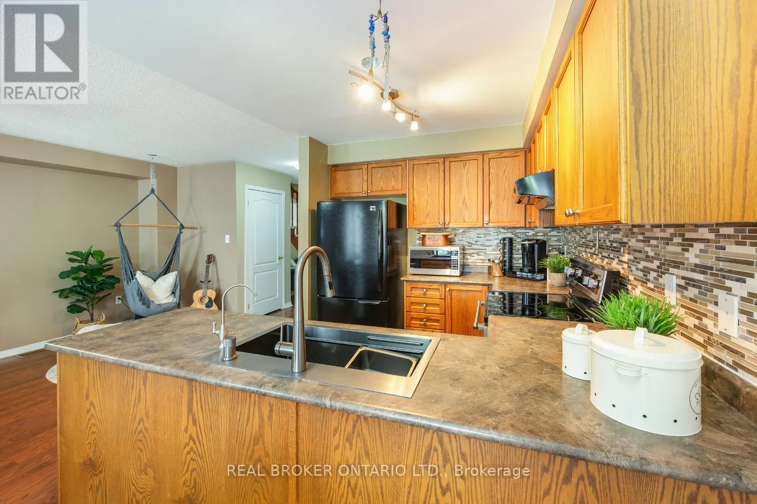 Cross Streets: Mearns/Sprucewood. ** Directions: From King St (Hwy 2) Head north onto Mearns St. Follow to the second entrance onto Sprucewood and then turn left onto Sprucewood at the first street on north side. Ideally located close to schools, transit, restaurants, and shopping, this spacious three-bedroom townhome offers comfortable living in a convenient setting. A covered front porch welcomes you into the foyer featuring tile flooring and a double closet, while an interior access from the garage leads to a practical mudroom, perfect for everyday life. The main floor boasts an open-concept layout with a generous living room, laminate flooring, and a large window that fills the space with natural light. The charming kitchen features tile flooring, a stylish backsplash, and an updated single bowl sink, and flows seamlessly into the dining area accented with wainscoting and a walk-out to the backyard, ideal for entertaining or barbeques. Upstairs, you'll find three good-sized bedrooms, all with closets and recently installed broadloom. The primary bedroom is complete with a convenient three-piece ensuite. As well, there is a handy, second floor laundry. Step outside to enjoy the fully fenced backyard, offering a private space to relax, garden, or entertain. There is an entrance from the garage to backyard as well. Visitor parking and parkette are nearby. Move right in to this charming home. POTL Fee Of $246.98/Month Covers water, snow removal on road & Shared Area Maintenance. (id:27476)