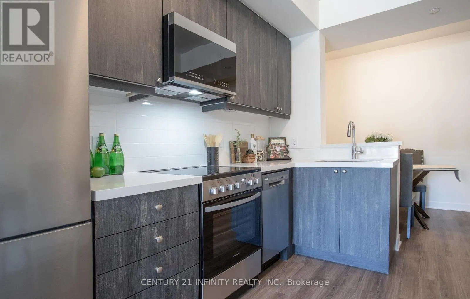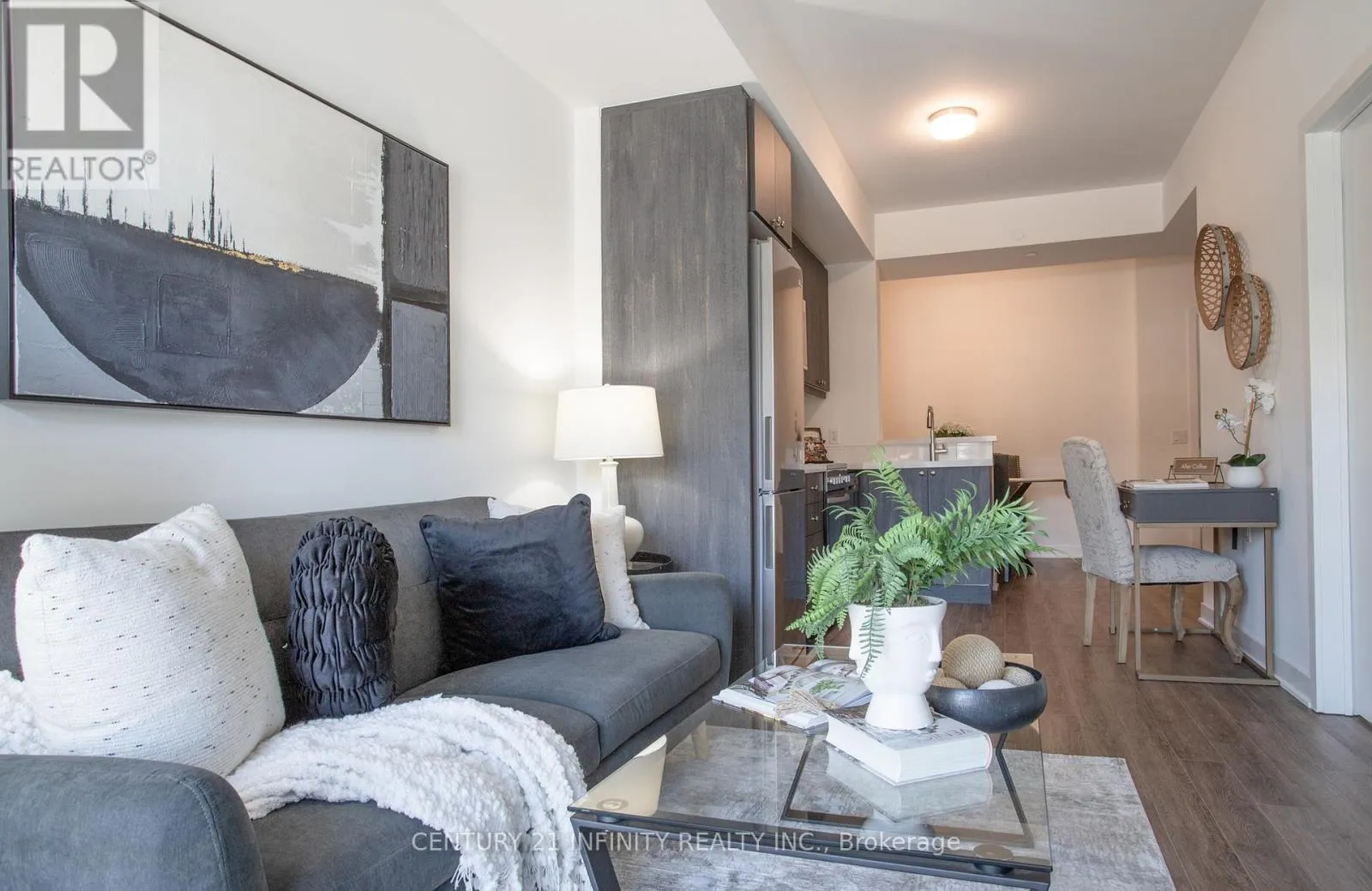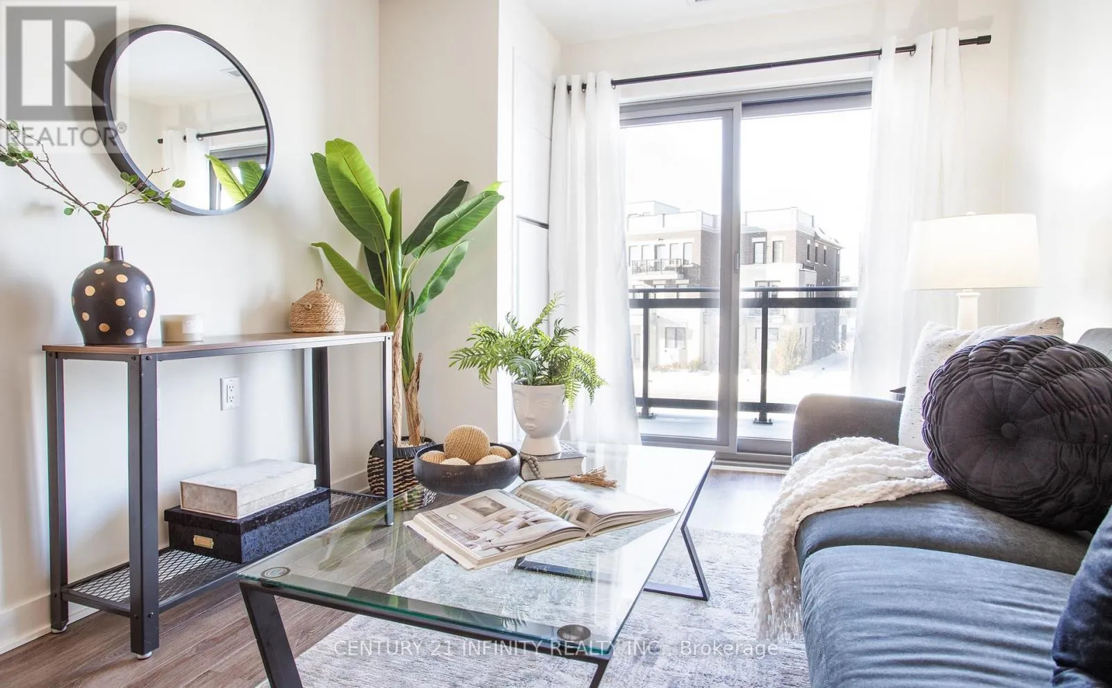 Green Rd / Clarington Blvd Brand New, Never Lived In! Discover Modo 51, Bowmanville's Exclusive Community Offering Exceptional First-Time Conveniences & Premium Amenities In Clarington's Condo World. This Stunning Building Features A 24-Hour Concierge Desk, A Connected 7th Floor Rooftop Terrace With BBQs, A Fully Equipped Fitness Centre & Yoga Studio, Games Room, Party Room, Library, & A Spacious Resident Lounge Designed For Relaxation & Socializing. Conveniently Equipped With 4 Elevators & 2 Garbage Chutes, This Building Truly Sets Itself Apart In Clarington. This One-Bedroom Unit With Den/Dining Features Wheelchair Accessible Doors, 9-Foot Ceilings, Quartz Countertops, Upgraded Nebula Sequoia Cabinetry With Ceramic Backsplash & Under-Cabinet Lighting R/I. A Matching Comfort Height Quartz Vanity And Soaker Tub Compliment The Semi Ensuite, Combined With Luxury Vinyl/Ceramic Flooring Throughout. Enjoy An Extra-Large Balcony With Two Walkouts, Including One From The Bedroom. This Condo Also Features Ensuite Laundry, Includes 6 Appliances & One Parking Space. With High-Speed Internet Included In The Maintenance Fees There's No Need To Pay Any Extra Bills. Ideally Located Next To The Soon-To-Be-Built GO Train Station, Within Walking Distance To Restaurants, Entertainment, Grocery Stores, Retailers, & More. With Ample Space To Relax And Recharge, The Building's Amenities Are Truly Second To None. Host Gatherings Or Celebrations In One Of The Well-Appointed Multi-Purpose Rooms Or One Of The Multi Level Out Door Common Areas With BBQs & Enjoy Elevated Condo Living At Its Finest.**Virtual Tour** (id:27476)