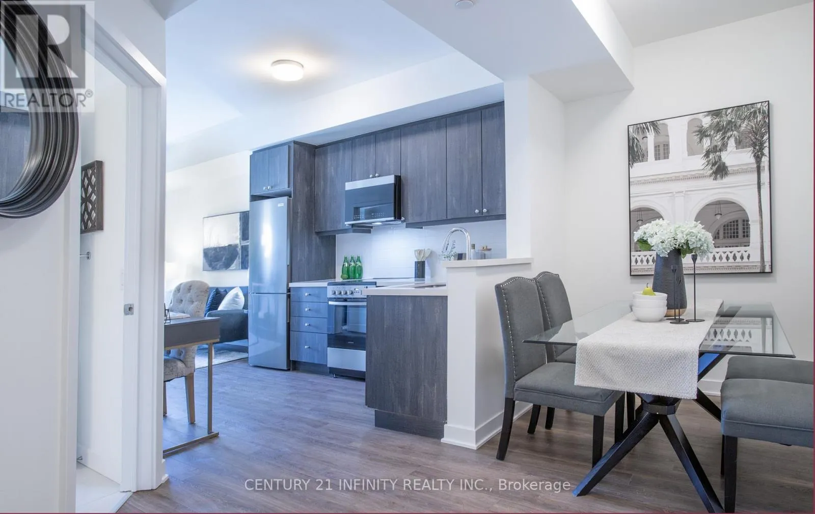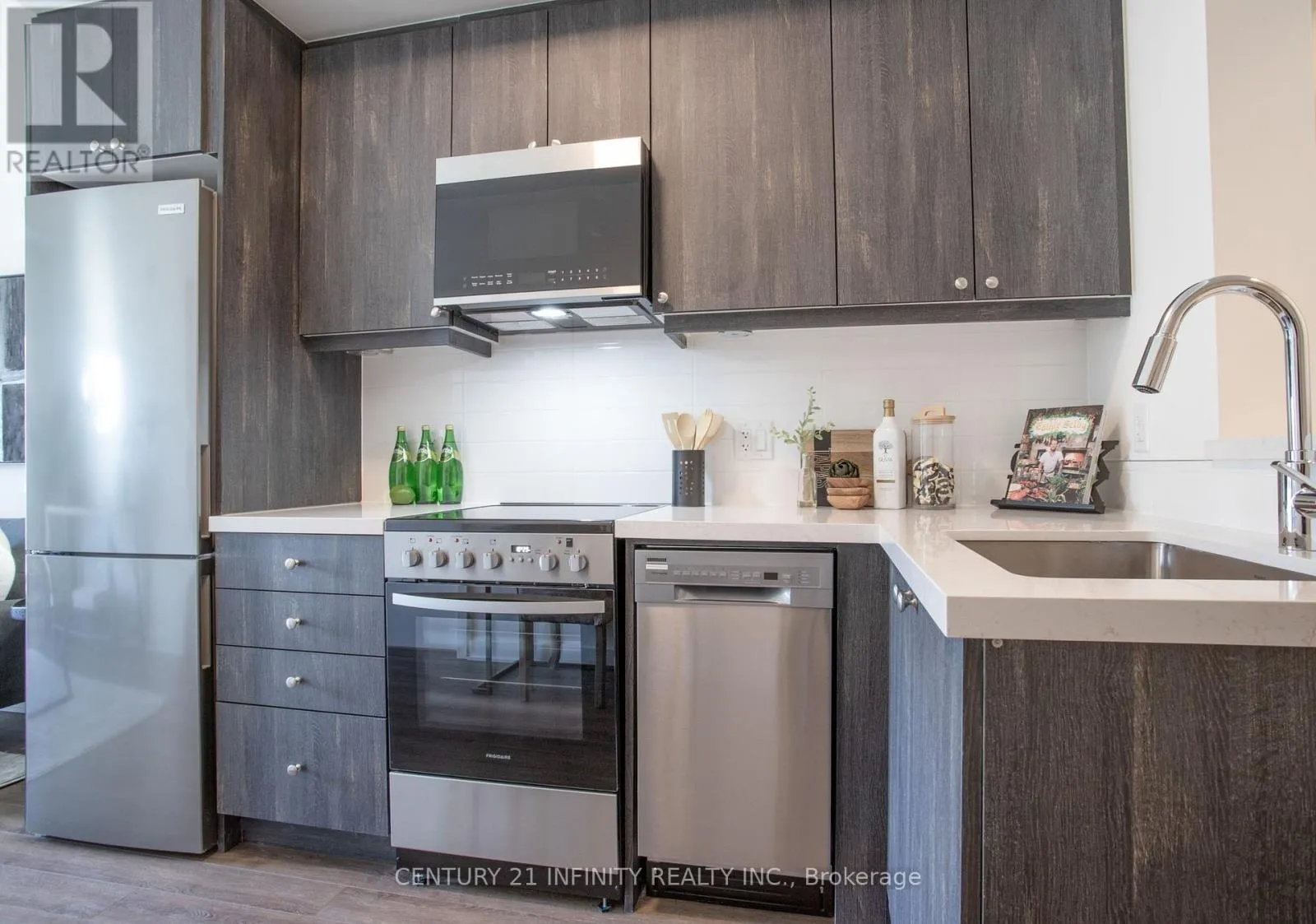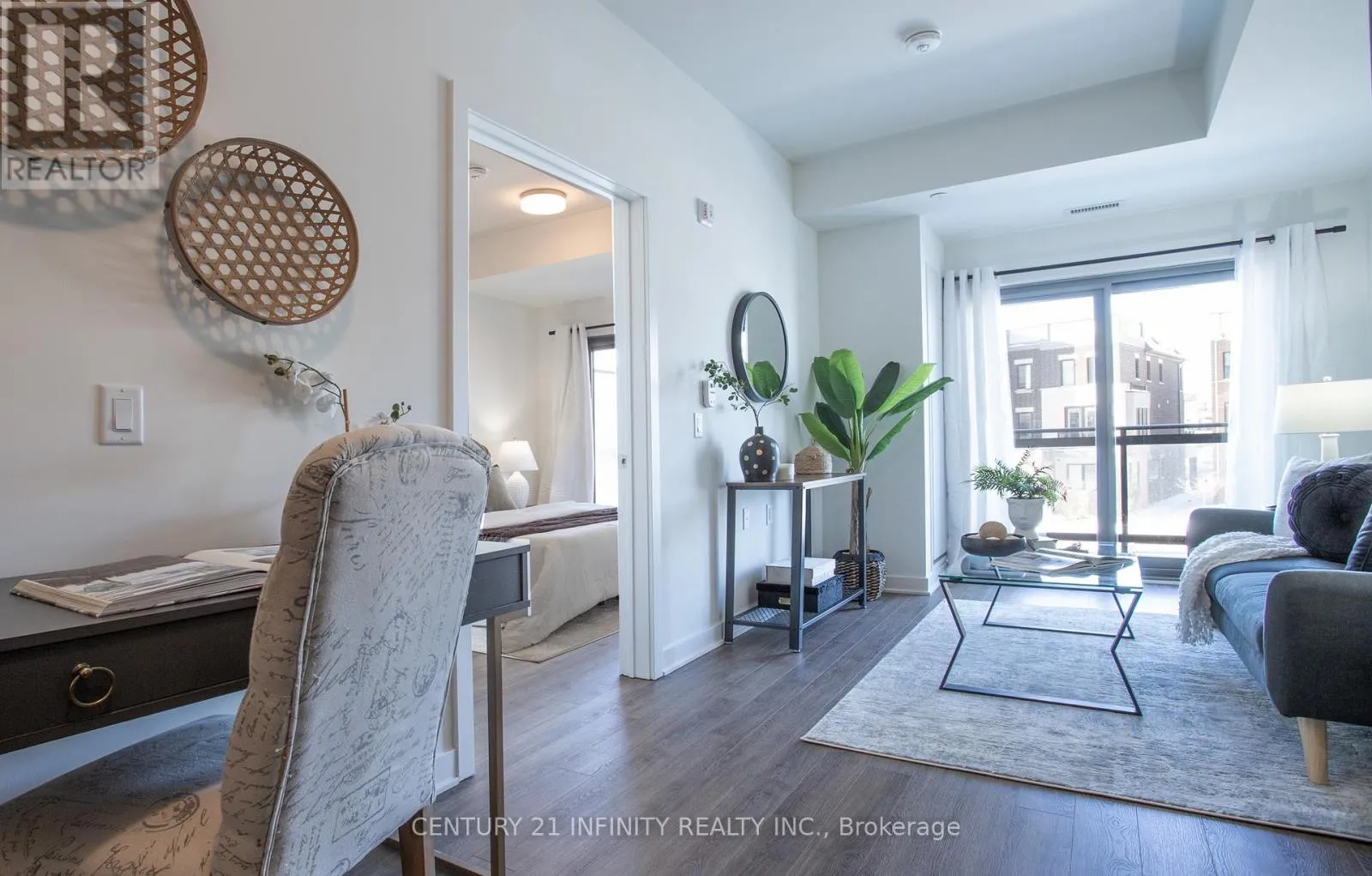 Green Rd / Clarington Blvd Brand New, Never Lived In! Discover Modo 51, Bowmanville's Exclusive Community Offering Exceptional First-Time Conveniences & Premium Amenities In Clarington's Condo World. This Stunning Building Features A 24-Hour Concierge Desk, A Connected 7th Floor Rooftop Terrace With BBQs, A Fully Equipped Fitness Centre & Yoga Studio, Games Room, Party Room, Library, & A Spacious Resident Lounge Designed For Relaxation & Socializing. Conveniently Equipped With 4 Elevators & 2 Garbage Chutes, This Building Truly Sets Itself Apart In Clarington. This One-Bedroom Unit With Den/Dining Features Wheelchair Accessible Doors, 9-Foot Ceilings, Quartz Countertops, Upgraded Nebula Sequoia Cabinetry With Ceramic Backsplash & Under-Cabinet Lighting R/I. A Matching Comfort Height Quartz Vanity And Soaker Tub Compliment The Semi Ensuite, Combined With Luxury Vinyl/Ceramic Flooring Throughout. Enjoy An Extra-Large Balcony With Two Walkouts, Including One From The Bedroom. This Condo Also Features Ensuite Laundry, Includes 6 Appliances & One Parking Space. With High-Speed Internet Included In The Maintenance Fees There's No Need To Pay Any Extra Bills. Ideally Located Next To The Soon-To-Be-Built GO Train Station, Within Walking Distance To Restaurants, Entertainment, Grocery Stores, Retailers, & More. With Ample Space To Relax And Recharge, The Building's Amenities Are Truly Second To None. Host Gatherings Or Celebrations In One Of The Well-Appointed Multi-Purpose Rooms Or One Of The Multi Level Out Door Common Areas With BBQs & Enjoy Elevated Condo Living At Its Finest.**Virtual Tour** (id:27476)