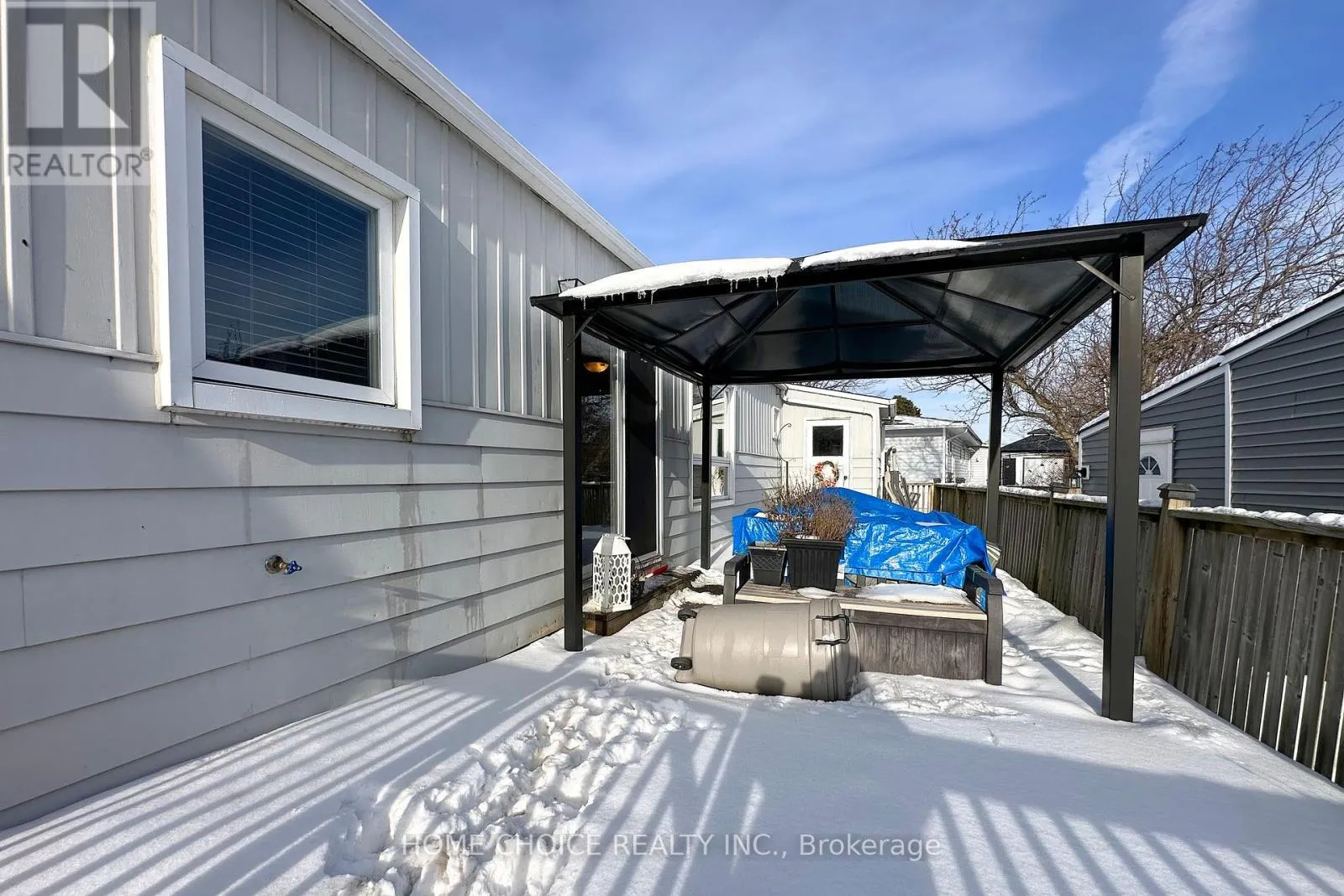 Cross Streets: Eastbank/Heritage. ** Directions: Wilmot Tr / S on Eastbank Rd. Welcome to Wilmot Creek (an adult lifestyle community situated along the shores of Lake Ontario. This 2 Bedroom Bungalow has a lot to offer. The Double Driveway is located at the side of the house giving lots of frontage as it is a corner home. Kitchen boasts stainless steel appliances. pantry and walk-out to a 10 x 30 (approx) Deck. The Living Room features a gas fireplace and an open concept design. The primary bedroom has a large walk-in closet and oversized front window. This home shows pride of ownership. The $1300.00 monthly maintenance fee includes snow removal from the driveway, sewer charge and full access to an exceptional range of amenities, including (but not limited to) a 9-hole golf course, recreation centre, pools, gym, sauna, tennis/pickleball court, lawn bowling, horseshoes and over 100 activities, leagues and special interest groups. A rare opportunity to enjoy carefree living in a vibrant, active community. (id:27476)