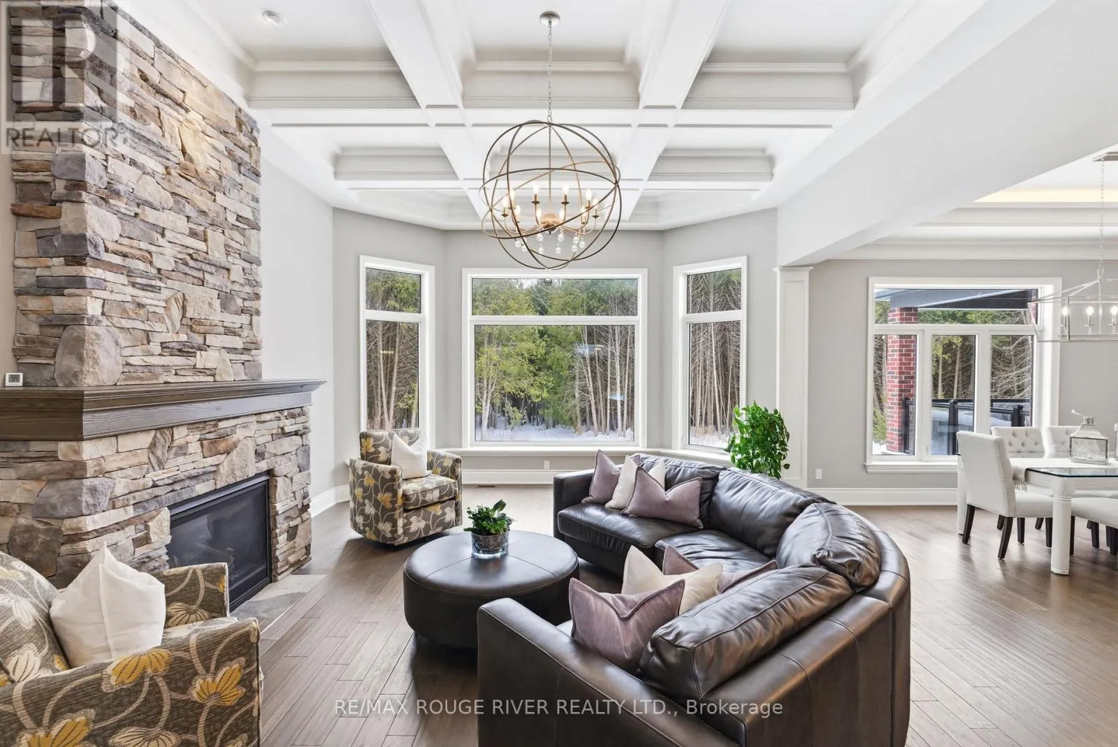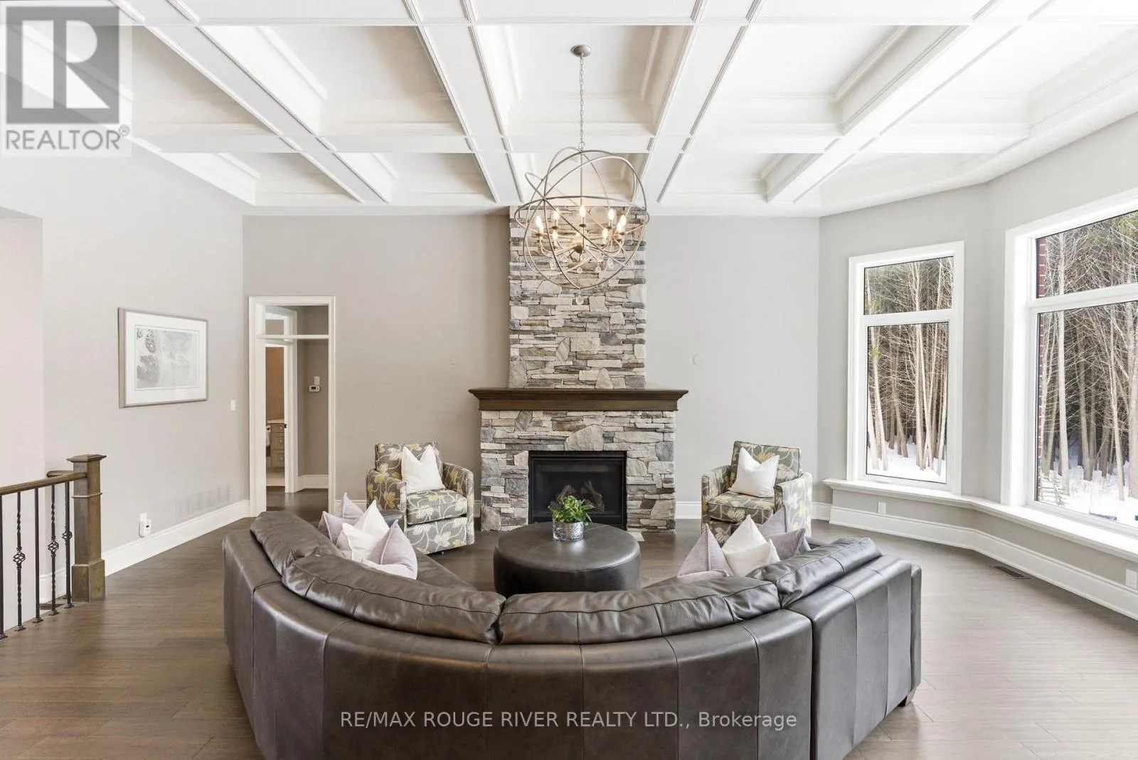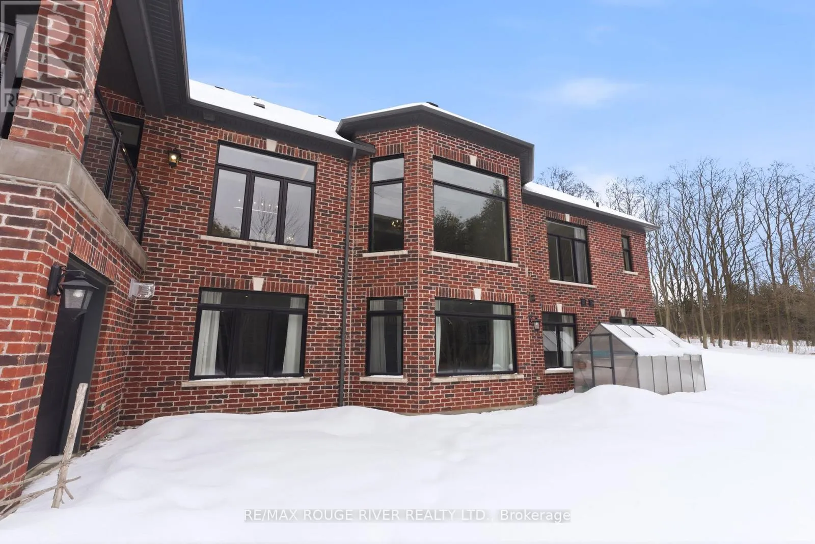 Cross Streets: Hwy 2 and Morgans Rd. ** Directions: Hwy 2. Welcome to this one-of-a-kind, custom-built Andelwood Homes bungalow, nestled on 80+ private acres w/pond surrounded by mature trees & the peace and calm of nature in Newcastle. This remarkable estate offers refined luxury just minutes from city amenities & convenient access to Hwy 401, 115/35, 407, and 418.Southern exposure & expansive windows offer spectacular, secluded views of forest, which views are also enjoyed from covered loggia. Designed with impeccable craftsmanship, the home features custom millwork, soaring ceilings, plaster crown mouldings, both interior & exterior transom windows that enhance natural light. Illuminated closets, multiple ceiling treatments, large mudroom w/ bench, Laundry room w/custom dog shower adds both elegance & everyday function. The open-concept main floor is ideal for entertaining & family living. Stunning Great Room showcases a dramatic waffle ceiling & striking dry-stacked fireplace creating a warm yet sophisticated focal point. This dream kitchen is a true showpiece with custom cabinetry, Cambria countertops & backsplash, WOLF & Subzero appliances, & a custom walk-in pantry. The primary suite has a spa-inspired ensuite with heated floors, heated towel rack, stand-alone tub, serene forest views, frameless glass shower w/ porcelain tile, separate rain shower head, bench & Shampoo niche Spacious additional bedrooms provide ample room for family and guests. The fully finished lower level includes a separate entrance & rough-in for a bar or second kitchen, offering in-law or multi-generational living potential. Car enthusiasts & hobbyists will appreciate the three oversized garages plus a dedicated ATV garage, providing exceptional space for vehicles, storage, & recreational equipment. Step outside to explore private trails, open green space, and endless outdoor possibilities all within your own property lines. A rare offering that seamlessly combines modern luxury with rural tranquility. (id:27476)