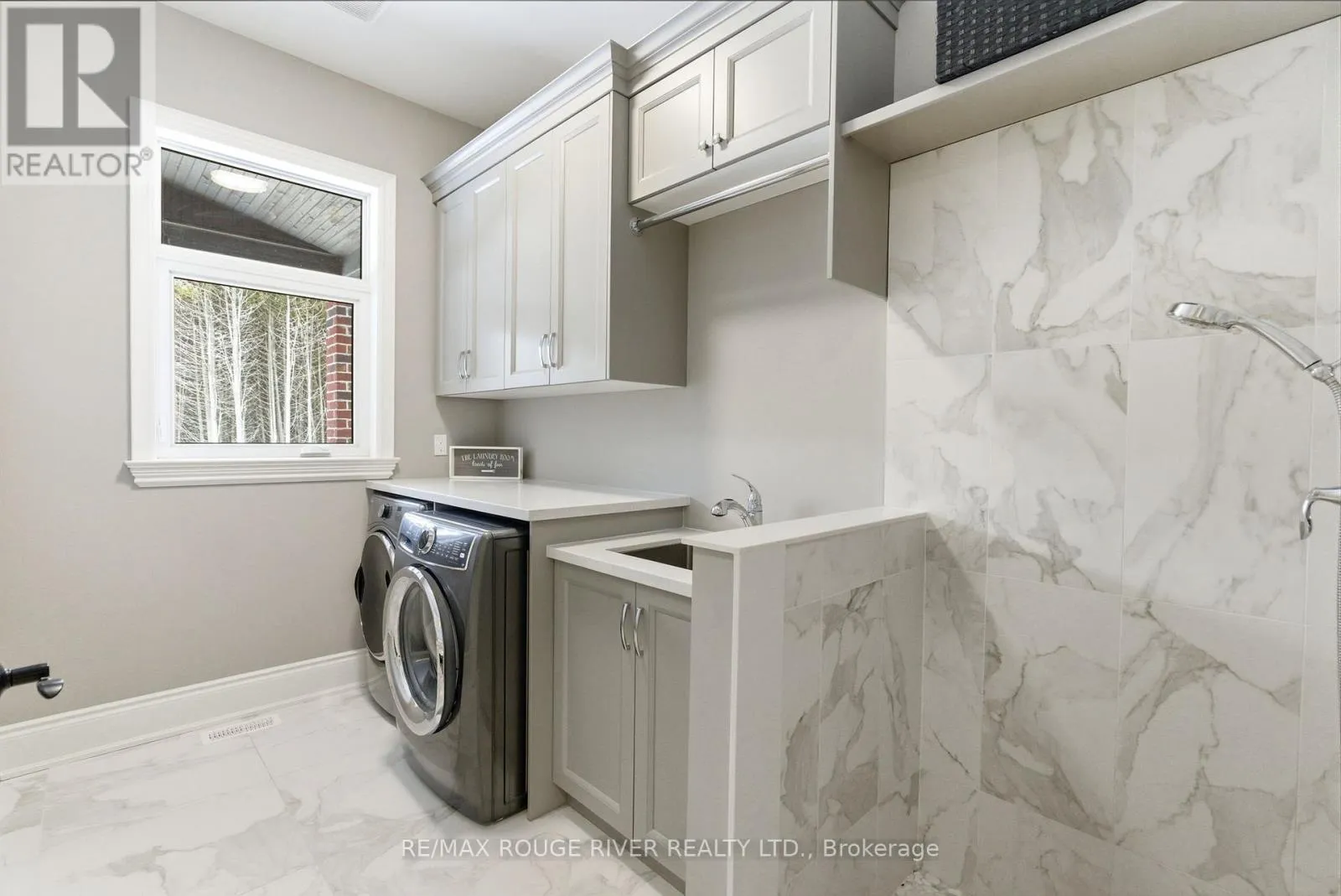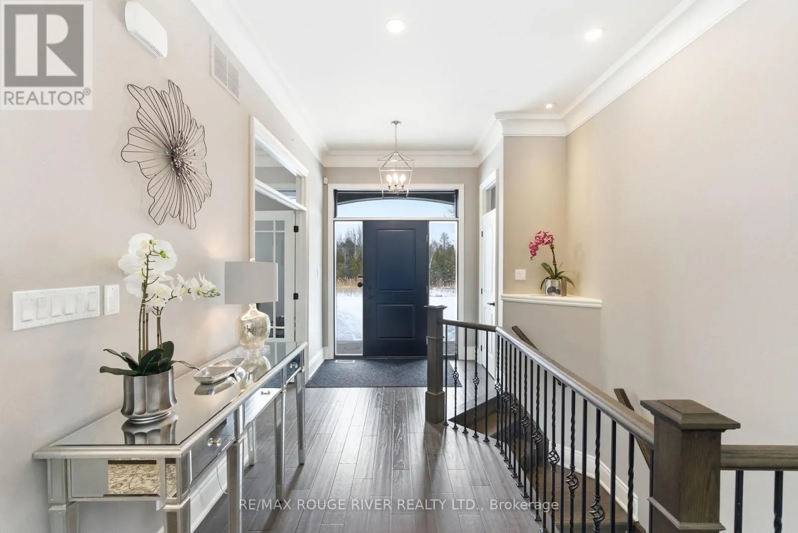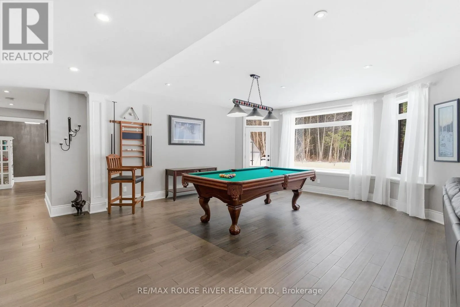 Cross Streets: Hwy 2 and Morgans Rd. ** Directions: Hwy 2. Welcome to this one-of-a-kind, custom-built Andelwood Homes bungalow, nestled on 80+ private acres w/pond surrounded by mature trees & the peace and calm of nature in Newcastle. This remarkable estate offers refined luxury just minutes from city amenities & convenient access to Hwy 401, 115/35, 407, and 418.Southern exposure & expansive windows offer spectacular, secluded views of forest, which views are also enjoyed from covered loggia. Designed with impeccable craftsmanship, the home features custom millwork, soaring ceilings, plaster crown mouldings, both interior & exterior transom windows that enhance natural light. Illuminated closets, multiple ceiling treatments, large mudroom w/ bench, Laundry room w/custom dog shower adds both elegance & everyday function. The open-concept main floor is ideal for entertaining & family living. Stunning Great Room showcases a dramatic waffle ceiling & striking dry-stacked fireplace creating a warm yet sophisticated focal point. This dream kitchen is a true showpiece with custom cabinetry, Cambria countertops & backsplash, WOLF & Subzero appliances, & a custom walk-in pantry. The primary suite has a spa-inspired ensuite with heated floors, heated towel rack, stand-alone tub, serene forest views, frameless glass shower w/ porcelain tile, separate rain shower head, bench & Shampoo niche Spacious additional bedrooms provide ample room for family and guests. The fully finished lower level includes a separate entrance & rough-in for a bar or second kitchen, offering in-law or multi-generational living potential. Car enthusiasts & hobbyists will appreciate the three oversized garages plus a dedicated ATV garage, providing exceptional space for vehicles, storage, & recreational equipment. Step outside to explore private trails, open green space, and endless outdoor possibilities all within your own property lines. A rare offering that seamlessly combines modern luxury with rural tranquility. (id:27476)