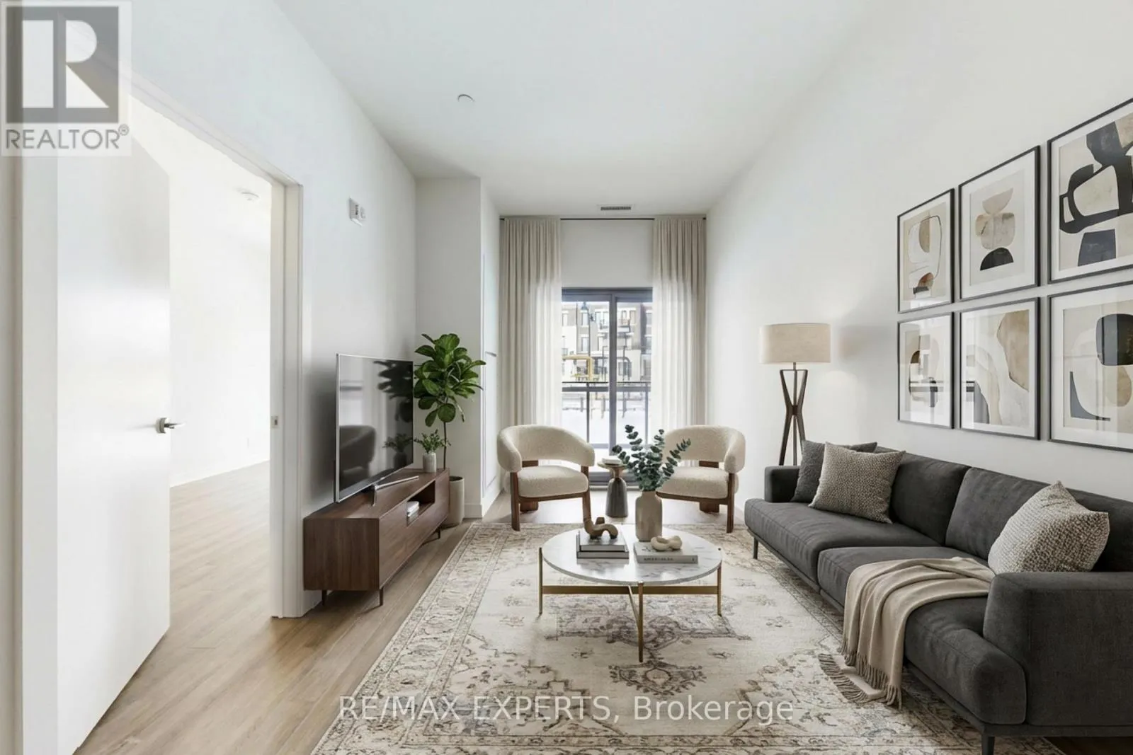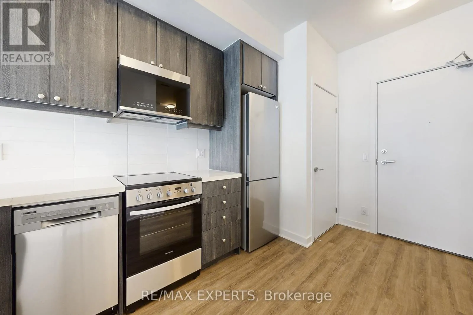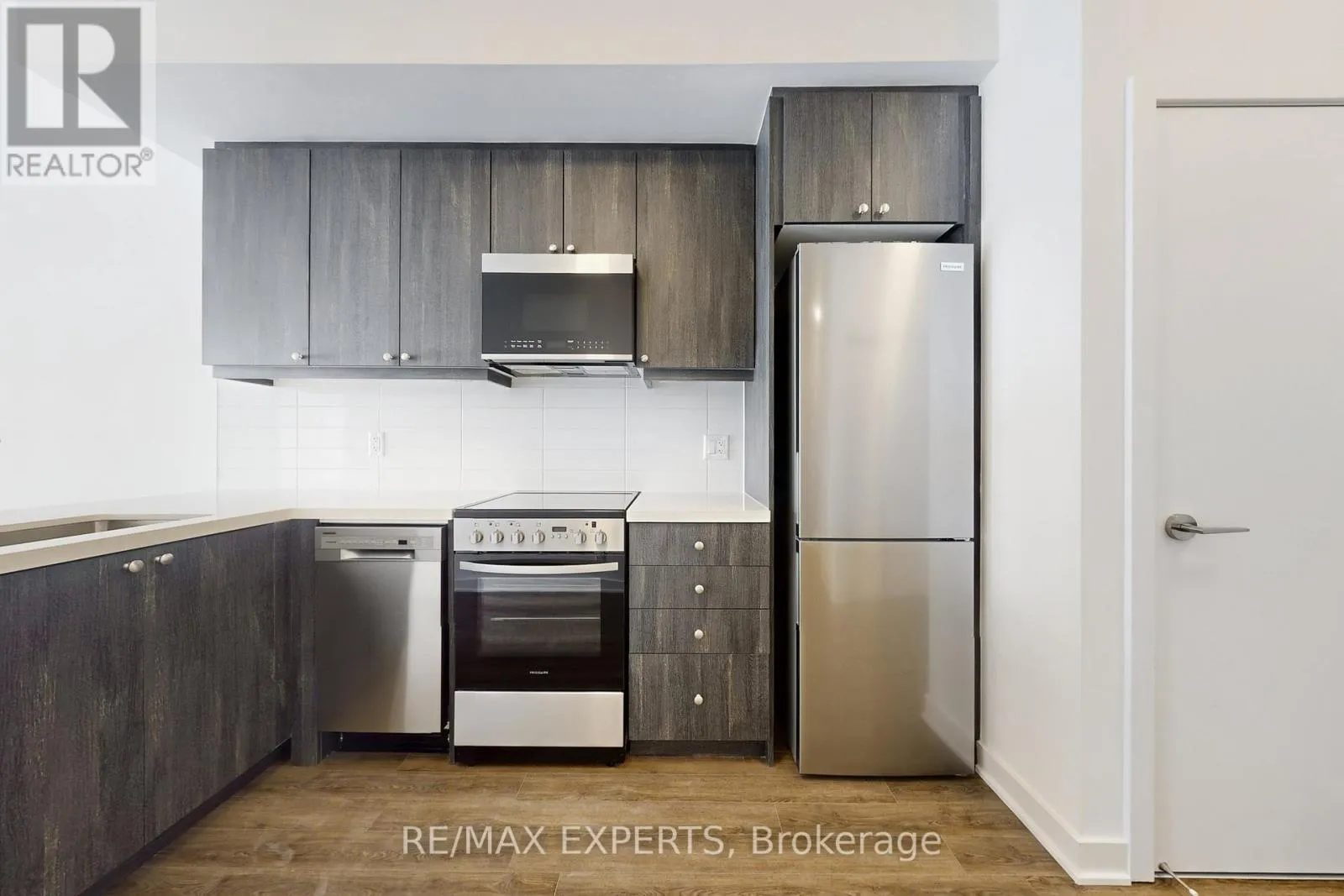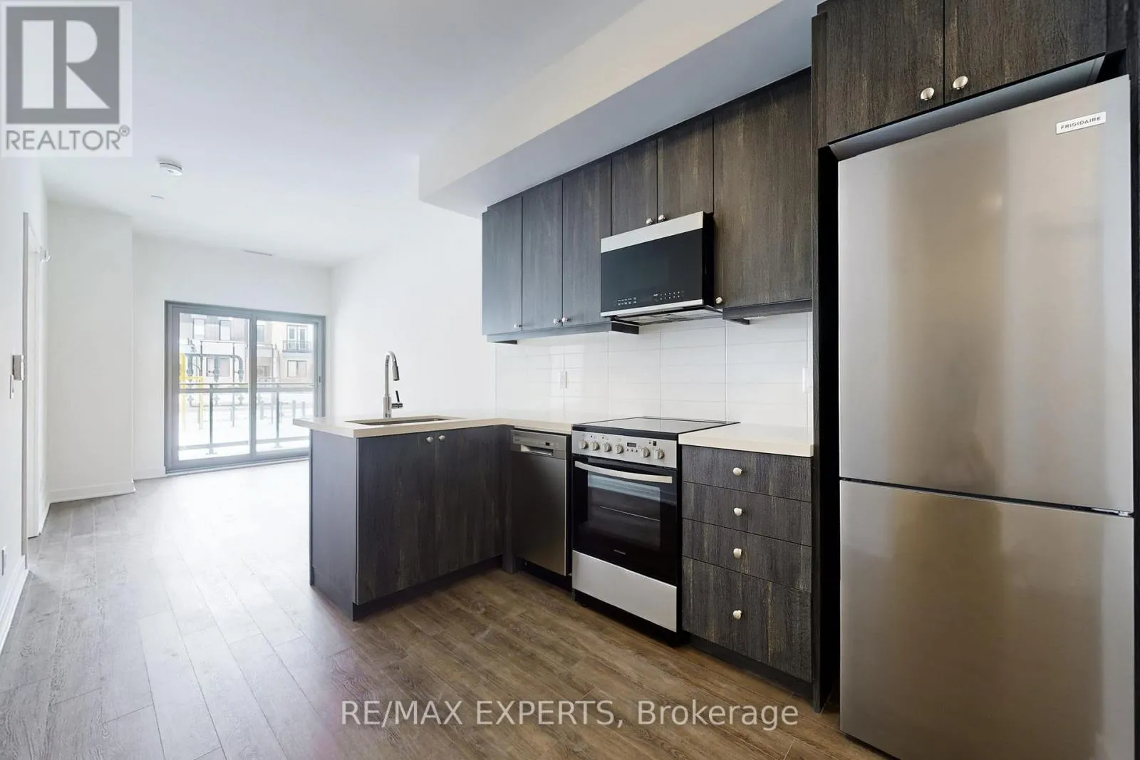 Green Rd & Clarington Blvd Be the first to enjoy this brand-new 1-bedroom plus den suite at MODO Condominiums, ideally located in the heart of Bowmanville. This well-designed unit offers a bright, open-concept layout with large windows and a private balcony that allows for plenty of natural light, creating a comfortable and inviting atmosphere throughout the living space. The contemporary kitchen is equipped with quartz countertops and stainless steel appliances, providing both style and functionality while seamlessly connecting to the main living and dining area-perfect for everyday living or entertaining. Vinyl flooring runs throughout the suite for a clean, modern look, and the convenience of in-suite stacked laundry adds to the practicality of the home. The separate den offers excellent flexibility and can easily be used as a home office, reading nook, or additional sitting area depending on your needs. Residents of the building have access to a variety of amenities, including indoor and outdoor lounge spaces, a fully equipped fitness centre, and a residents' boardroom suitable for meetings or remote work. The unit also comes complimentary rooftop barbeque internet service for added value. Located just steps to shops, cafes, parks, everyday conveniences, Highway 401, and the future Bowmanville GO Station, this suite offers an excellent opportunity to lease in a growing and well-connected community. A fantastic option for anyone looking for modern living in one of Bowmanville's newest developments. (id:27476)