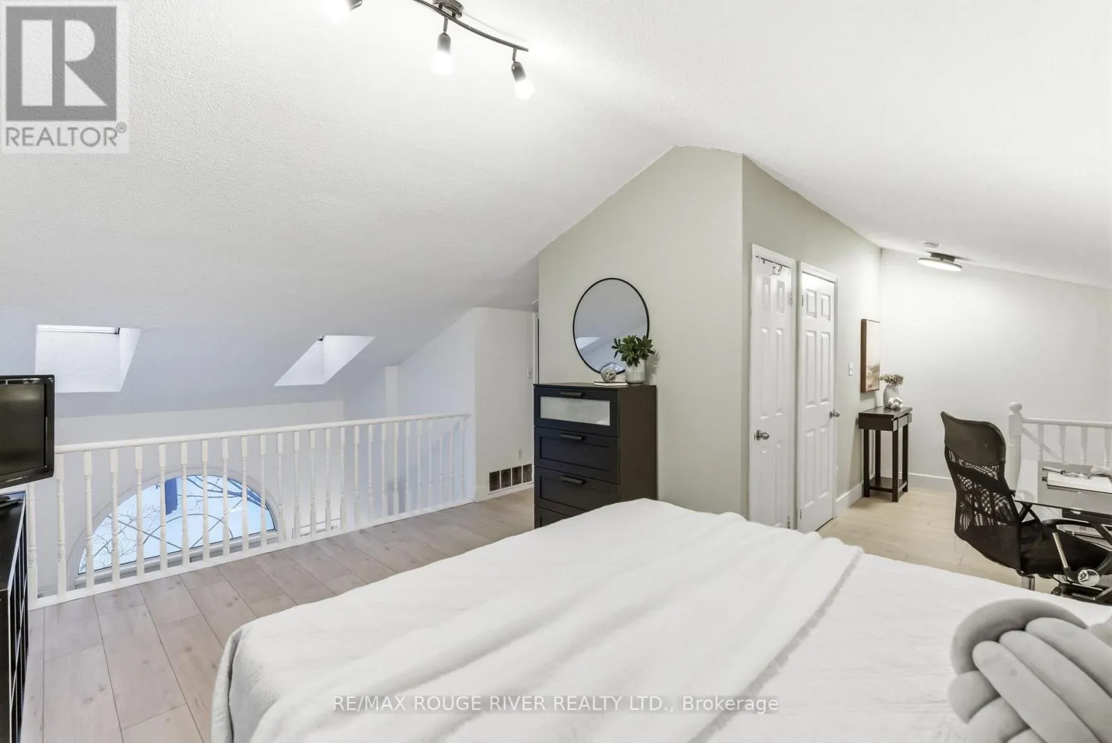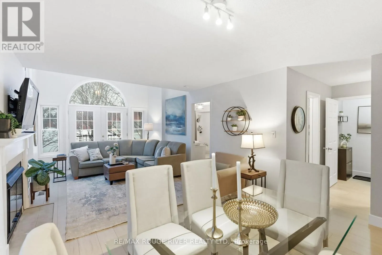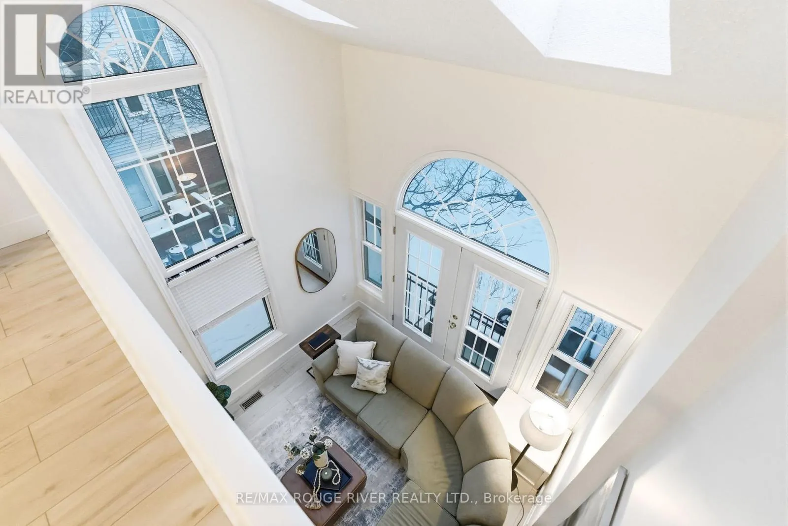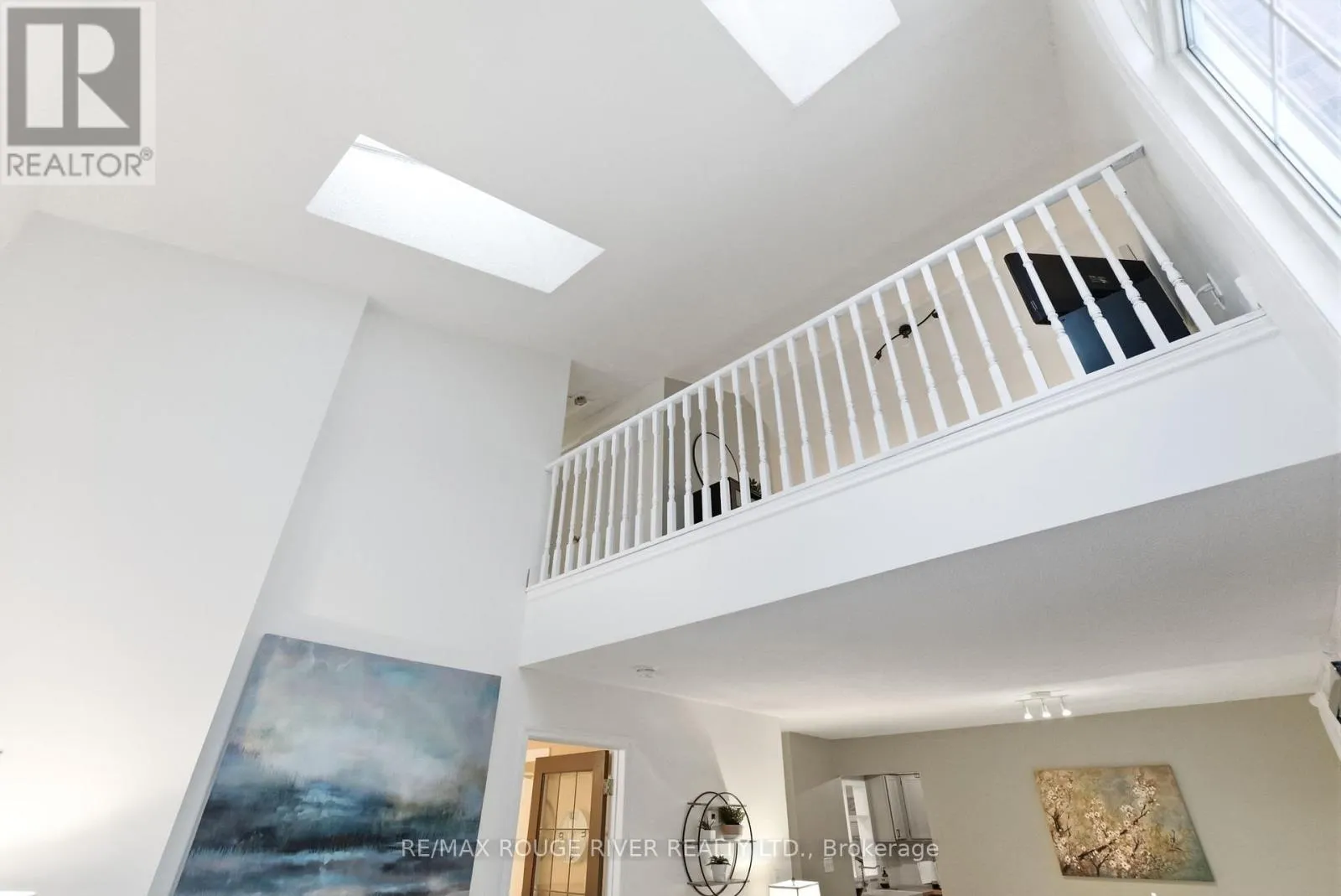 Cross Streets: Nash Rd & Trulls Rd. ** Directions: South East side of Nash & Trulls. Welcome to this bright, updated end-unit stacked condo townhome in sought-after Parkwood Village - flooded with natural light thanks to its premium end-unit position and extra windows throughout. Featuring seamless laminate flooring and new blinds, the main level offers a stylish eat-in kitchen with stainless steel appliances, butcher block counters, farmhouse sink and ample cabinetry. The open dining area flows into a sun-filled living room with vaulted ceilings, skylights, a wood-burning fireplace and Juliette balcony.A spacious bedroom with semi-ensuite completes the main level. Upstairs, the loft-style primary retreat includes a double closet, 4-piece ensuite and convenient in-suite laundry.Enjoy rare privacy with no neighbours above and none on one side, along with abundant natural light that only an end unit can offer. Set in a quiet, pet-friendly community with beautifully landscaped grounds, residents enjoy amenities including a BBQ area, party room, dog run, tennis and pickleball courts, heated car wash, EV charging and ample visitor parking. Includes one premium parking space, with additional spots available for rent. Ideally located steps to schools. Bright, private and perfectly positioned-this one checks all the boxes! (id:27476)