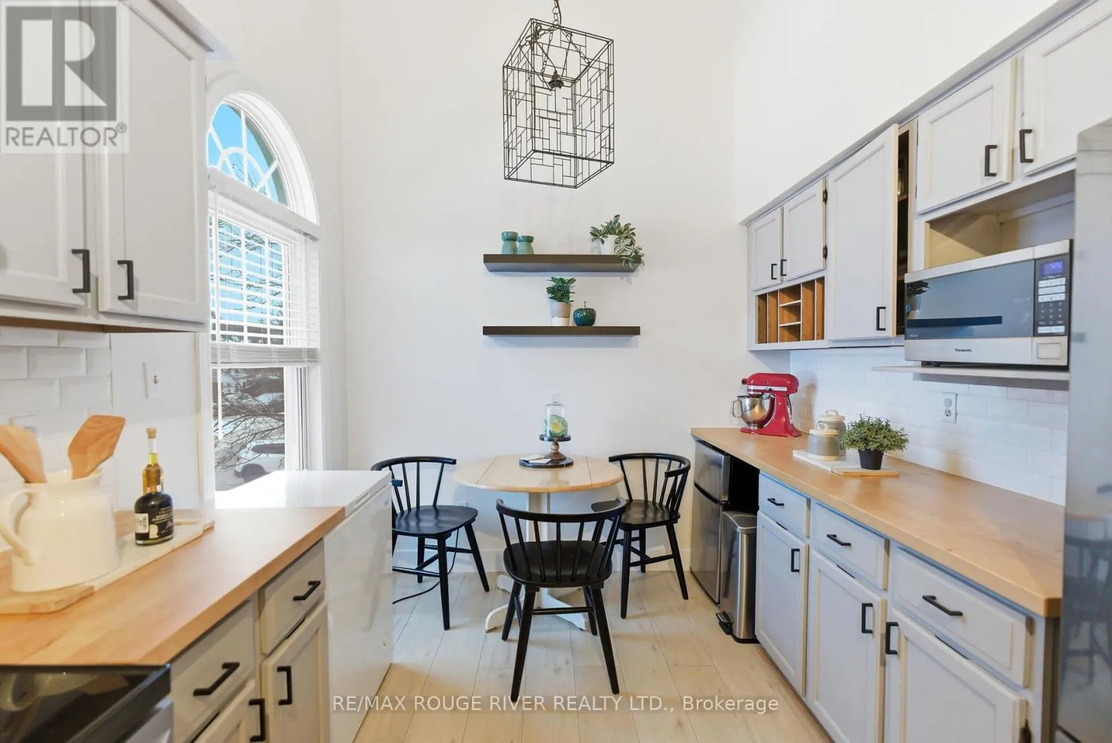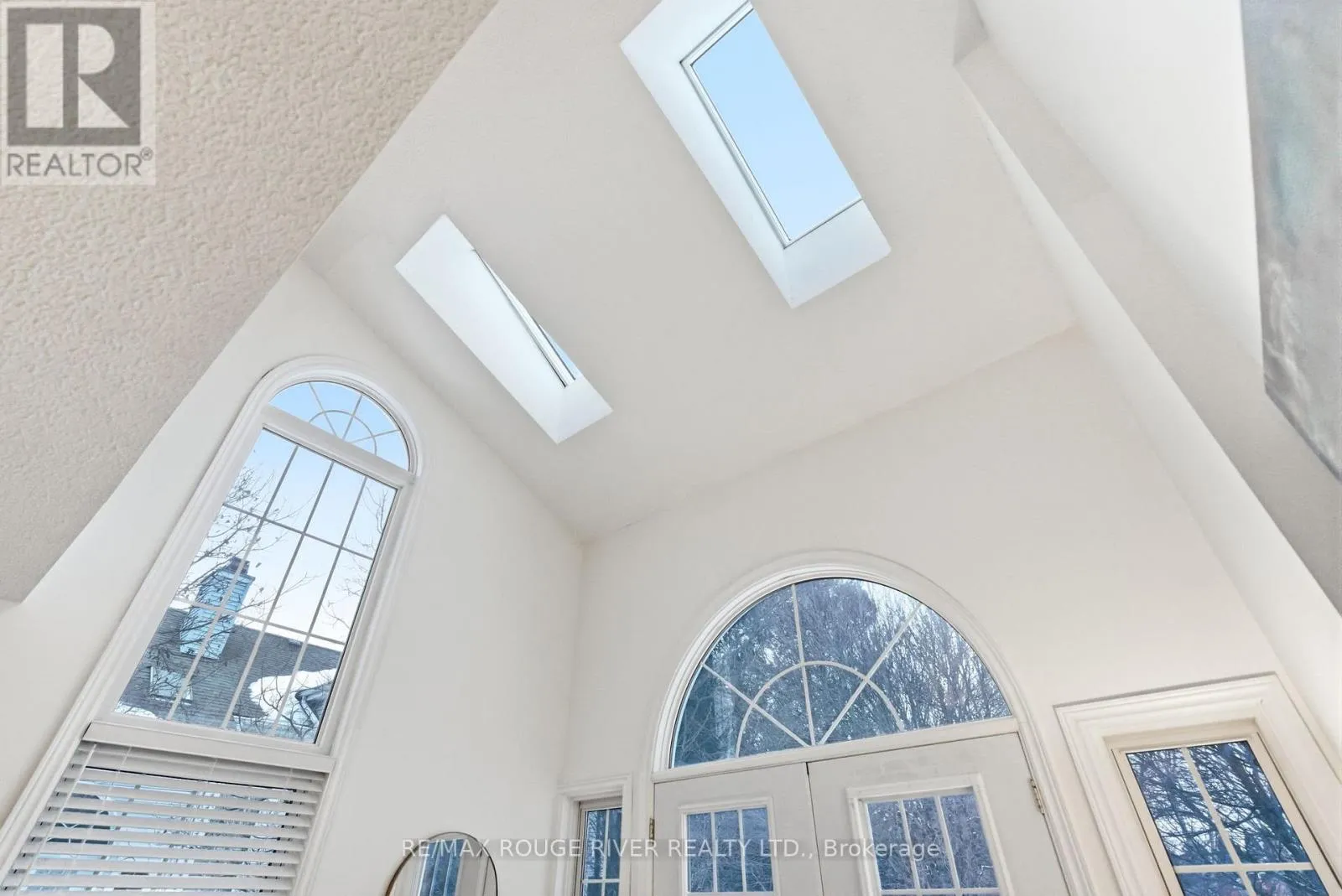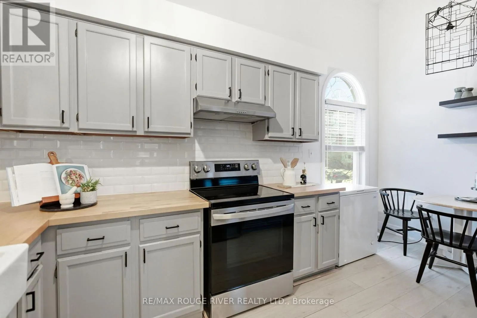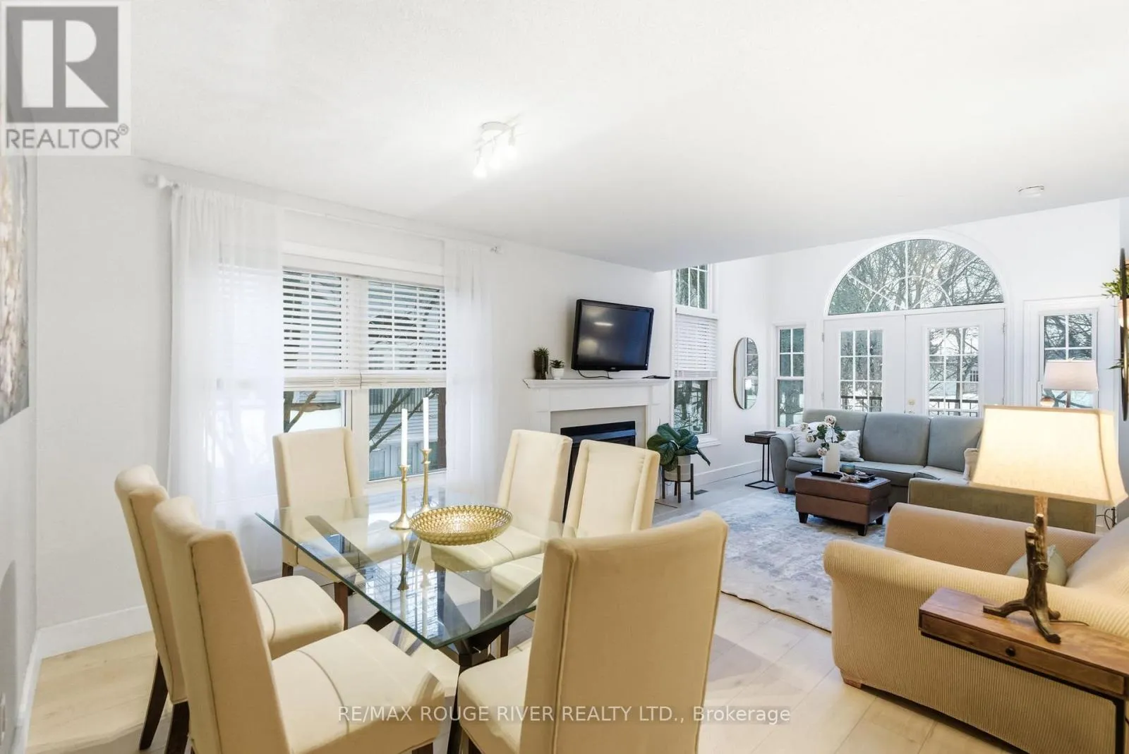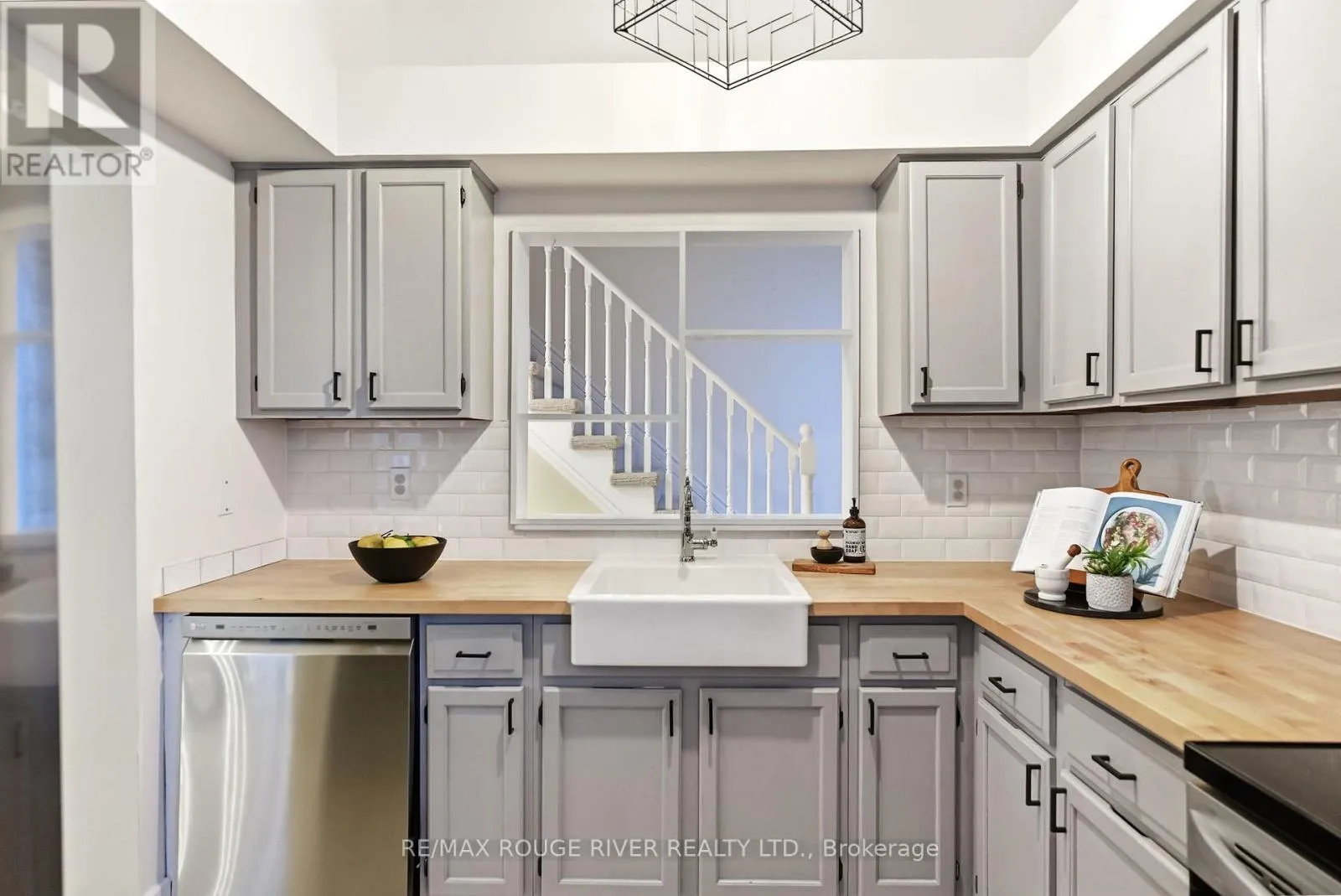 Cross Streets: Nash Rd & Trulls Rd. ** Directions: South East side of Nash & Trulls. Welcome to this bright, updated end-unit stacked condo townhome in sought-after Parkwood Village - flooded with natural light thanks to its premium end-unit position and extra windows throughout. Featuring seamless laminate flooring and new blinds, the main level offers a stylish eat-in kitchen with stainless steel appliances, butcher block counters, farmhouse sink and ample cabinetry. The open dining area flows into a sun-filled living room with vaulted ceilings, skylights, a wood-burning fireplace and Juliette balcony.A spacious bedroom with semi-ensuite completes the main level. Upstairs, the loft-style primary retreat includes a double closet, 4-piece ensuite and convenient in-suite laundry.Enjoy rare privacy with no neighbours above and none on one side, along with abundant natural light that only an end unit can offer. Set in a quiet, pet-friendly community with beautifully landscaped grounds, residents enjoy amenities including a BBQ area, party room, dog run, tennis and pickleball courts, heated car wash, EV charging and ample visitor parking. Includes one premium parking space, with additional spots available for rent. Ideally located steps to schools. Bright, private and perfectly positioned-this one checks all the boxes! (id:27476)