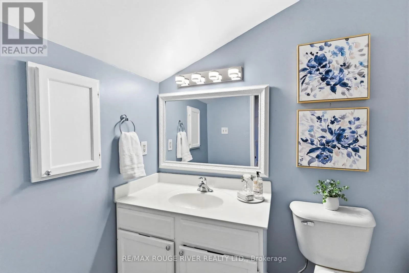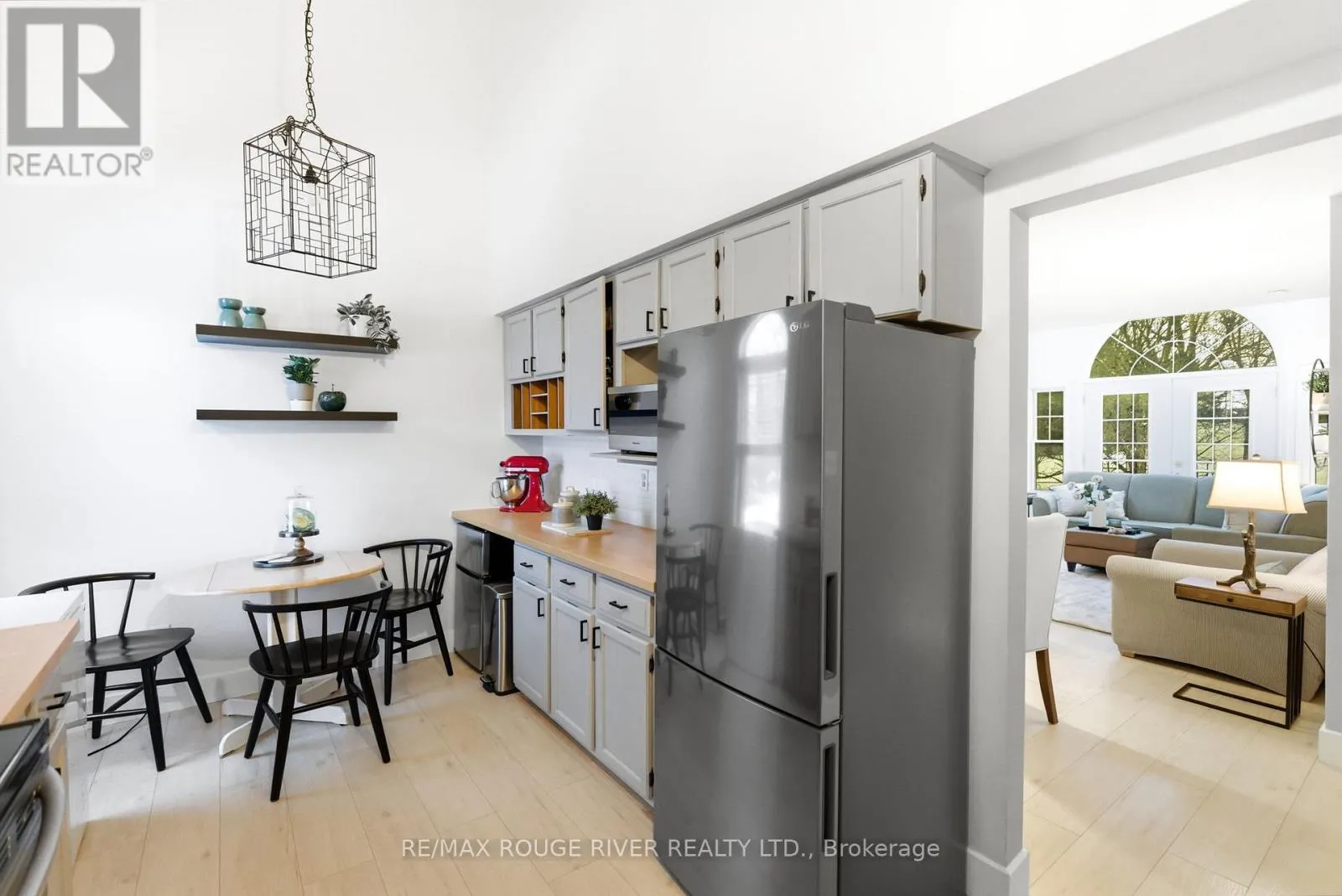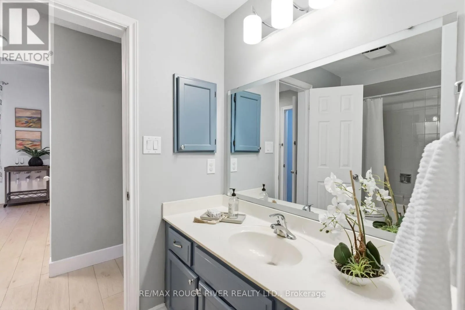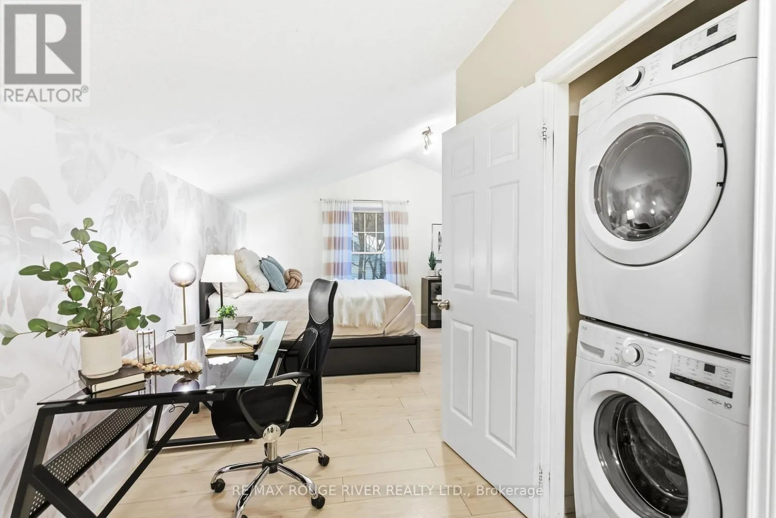 Cross Streets: Nash Rd & Trulls Rd. ** Directions: South East side of Nash & Trulls. Welcome to this bright, updated end-unit stacked condo townhome in sought-after Parkwood Village - flooded with natural light thanks to its premium end-unit position and extra windows throughout. Featuring seamless laminate flooring and new blinds, the main level offers a stylish eat-in kitchen with stainless steel appliances, butcher block counters, farmhouse sink and ample cabinetry. The open dining area flows into a sun-filled living room with vaulted ceilings, skylights, a wood-burning fireplace and Juliette balcony.A spacious bedroom with semi-ensuite completes the main level. Upstairs, the loft-style primary retreat includes a double closet, 4-piece ensuite and convenient in-suite laundry.Enjoy rare privacy with no neighbours above and none on one side, along with abundant natural light that only an end unit can offer. Set in a quiet, pet-friendly community with beautifully landscaped grounds, residents enjoy amenities including a BBQ area, party room, dog run, tennis and pickleball courts, heated car wash, EV charging and ample visitor parking. Includes one premium parking space, with additional spots available for rent. Ideally located steps to schools. Bright, private and perfectly positioned-this one checks all the boxes! (id:27476)