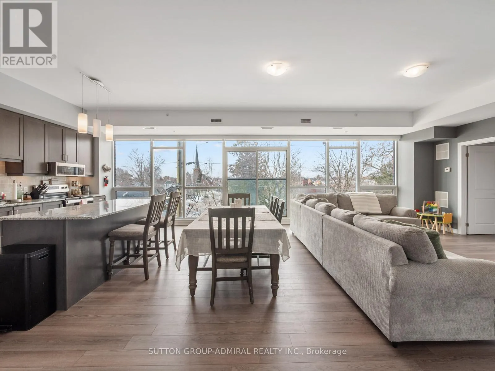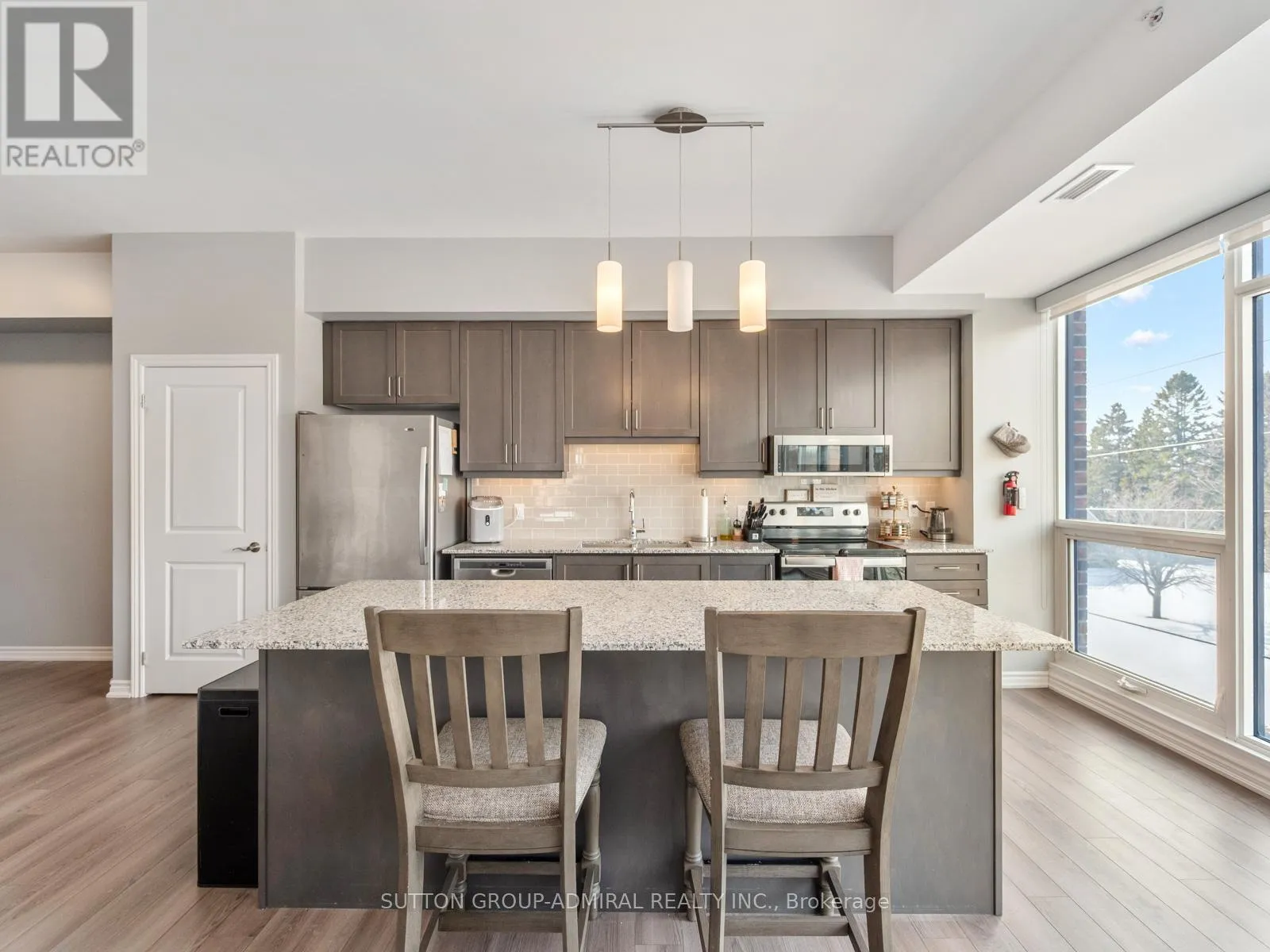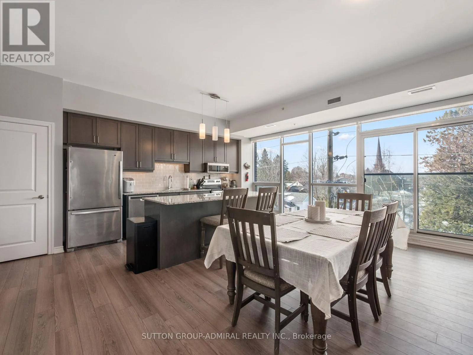 Cross Streets: King Ave. E. and Mill St. N. ** Directions: Exit HWY 401, North on Mill St. East on Emily St. Welcome to your dream home! Located in the heart of Newcastle, Clarington, a spacious and modern 2-bedroom, 2-bathroom condo offering approximately 1,420 sq. ft. of beautifully designed living space in a well-managed 2020-built building. This recently painted, carpet-free suite features impressive 9-foot ceilings and expansive floor-to-ceiling windows that flood the open-concept living and dining areas with natural light, complemented by electric blinds in the main living space and one bedroom for added comfort and privacy. The contemporary kitchen is equipped with stainless steel appliances, a centre island, stylish backsplash, and seamless flow into the dining area with a Juliette balcony, creating an ideal setting for both everyday living and entertaining. The generous primary bedroom includes a walk-in closet and a 3-piece ensuite, while the second bedroom also offers ample space and floor-to-ceiling windows; an additional 3-piece bath and a separate laundry room with sink enhance functionality. Residents enjoy controlled entry, elevator access, underground parking with one exclusive space, bike storage, visitor parking, and a rooftop terrace with seating and BBQ, perfect for relaxing or hosting while taking in clear skyline and treetop views. Maintenance fees include common elements, building insurance, and parking, and the building offers accessibility features with nearby public transit. Adding unmatched convenience, a Dollarama is located on the first floor and medical offices on the second floor, making daily errands effortless, while proximity to Highway 401, parks, libraries, marinas, golf courses, and the shops and amenities of historic Newcastle Village completes this exceptional lifestyle opportunity in Durham Region. (id:27476)