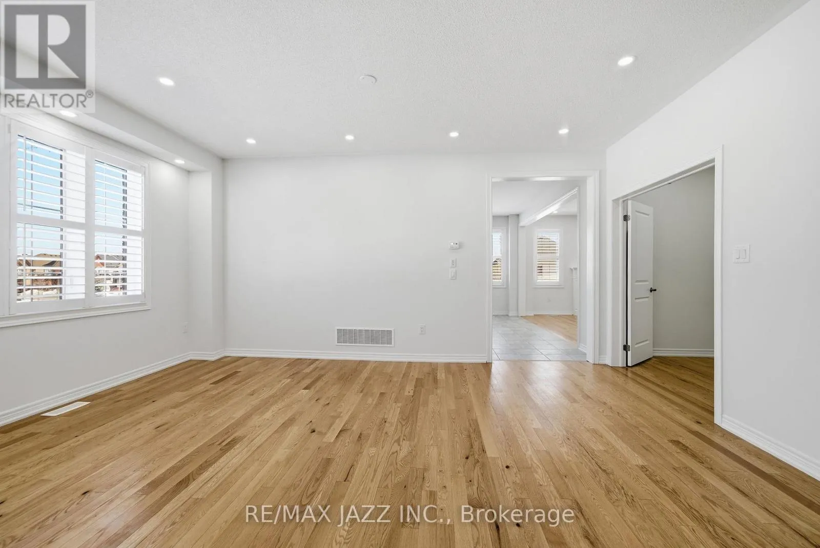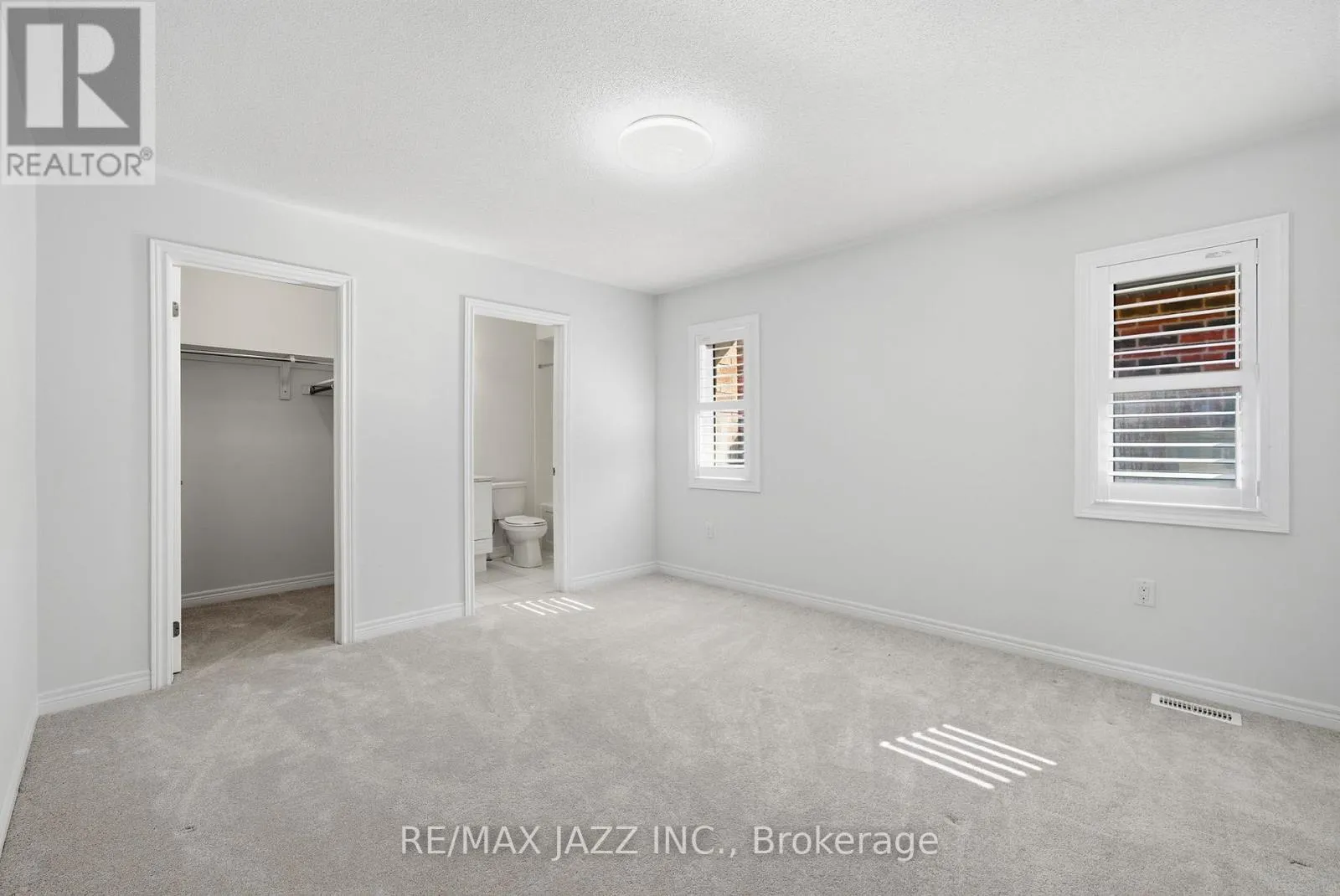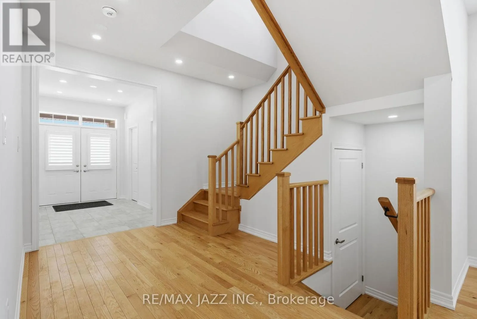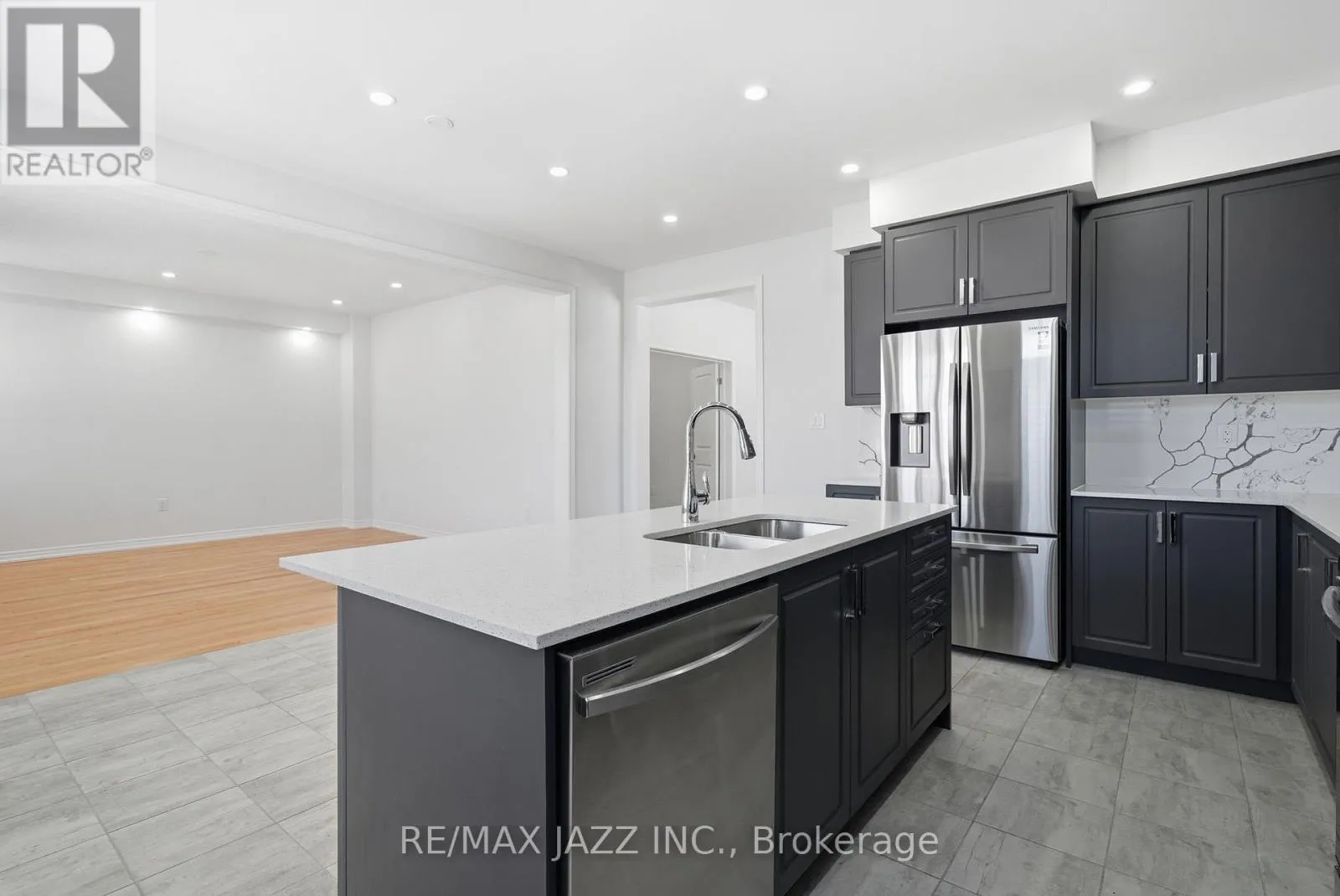 Green Rd/Baseline Rd Striking all brick and stone elevation with contemporary style throughout. A double door entrance welcomes you into a bright, open concept layout featuring 9-ft ceilings and pot lights on the main level and California shutters throughout. The chef's kitchen is the heart of the home featuring quality cabinetry with extended upper cabinets, a large center island with breakfast bar and plenty of prep space - perfect for family gatherings and entertaining guests. This room flows seamlessly into the great room where the conversation can continue next to the cozy gas fireplace. A convenient main floor den provides flexible space that can double as an office, playroom or games room. The interior garage access leads to a convenient mudroom and a walk-in closet located at the front door provides added storage and practicality. Upstairs, you'll find four spacious bedrooms and second-floor laundry. Bedrooms 2 and 3 share a Jack & Jill bathroom, while bedroom 4 has its own private ensuite. The primary retreat is a true sanctuary with a freestanding soaker tub, glass shower enclosure and massive walk-in closet. Two of the other bedrooms also feature walk-in closets providing plenty of storage for the entire family to enjoy. The walkout basement is bright with large windows and a rough-in for a future bathroom, offering excellent potential for a home gym, rec room, or additional living space. Lightly lived in, this home feels brand new and sides onto a park, providing both privacy and beautiful green space views. Located just minutes from major box stores and Highway 401, this home combines convenience, style, and modern family living. (id:27476)