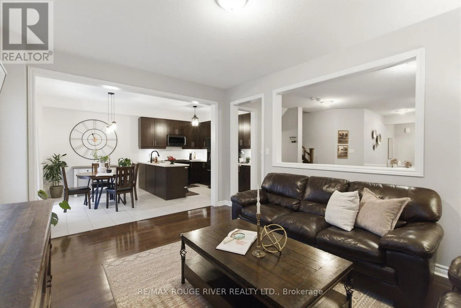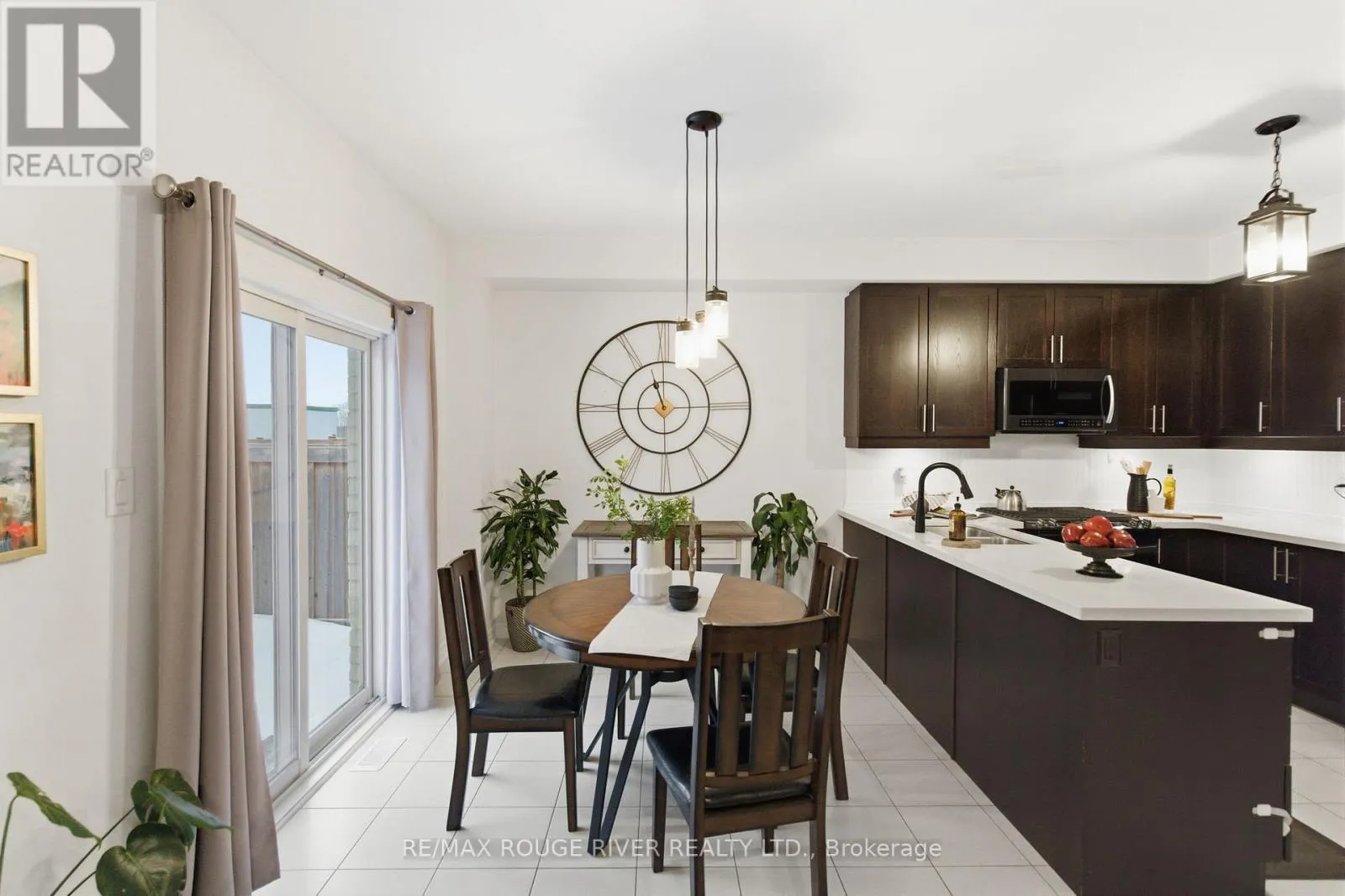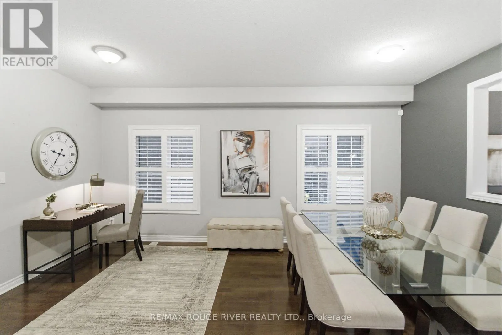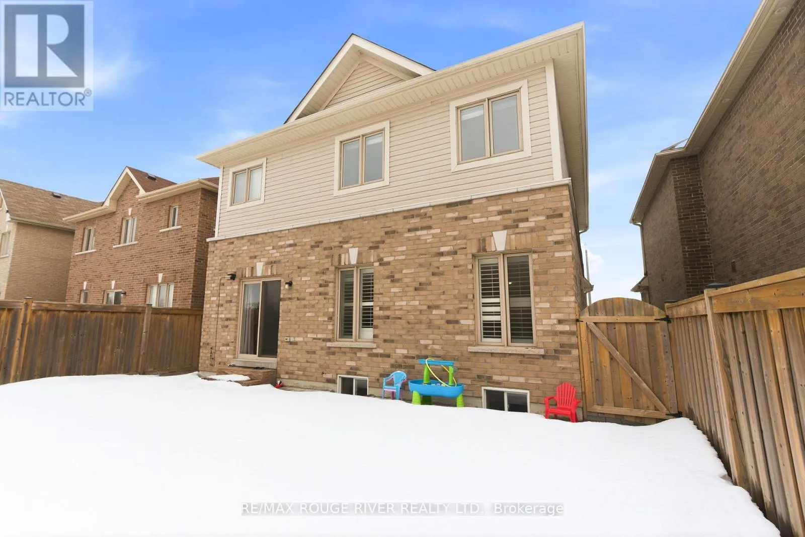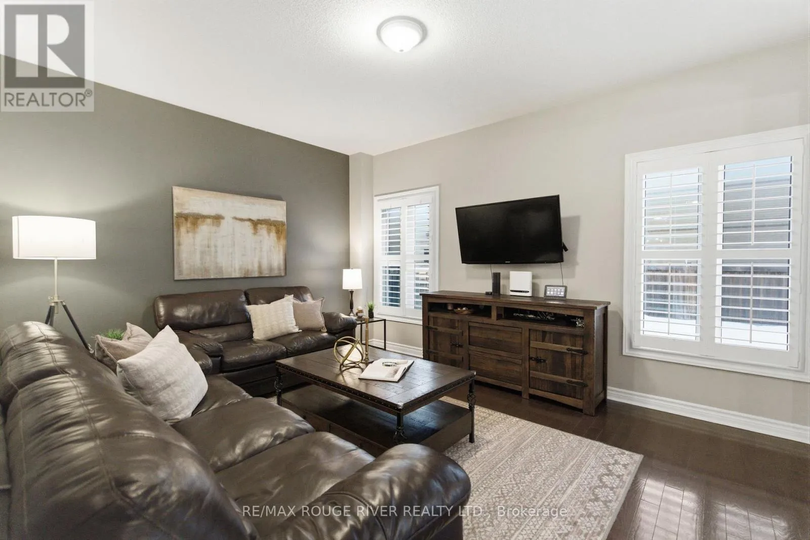 Cross Streets: Bloor/Prestonvale. ** Directions: From Prestonvale Rd go West on Cale Ave. Step into this beautifully designed open-concept family home, built in 2016 by Preston Homes. The main floor boasts 9-foot ceilings, hardwood and ceramic flooring, and a bright, inviting living room overlooking the backyard, complete with California shutters. Adjacent is the formal dining room with elegant hardwood floors and ample natural light, flowing seamlessly into the kitchen and breakfast area. The kitchen features quartz countertops, black Samsung stainless steel appliances, and a breakfast space with walkout access to the private backyard. A convenient main floor laundry adds to the practicality of this level. Upstairs, the primary bedroom offers a luxurious 5-piece ensuite and his-and-hers walk-in closets. Three additional bedrooms provide plenty of space for family and guests, each with broadloom flooring and ample closet space. The partially finished basement offers a versatile recreation area, pot lighting, windows for natural light, and rough-ins for a kitchenette and 3-piece bathroom, along with a cold room for added storage. Outside, the backyard is private and family-friendly, backing onto Dr. G.J. MacGillivray Public School, offering peace of mind and convenience. The property features professionally landscaped front, back, and side yards, creating an inviting outdoor space for play, relaxation, and entertaining. Ideally located, this home offers easy access to Durham Oshawa GO Station and Courtice GO Bus Stop for effortless commuting. Recreation is just steps away, with South Courtice Arena within walking distance and Clarington Public Library only a short drive. With every detail carefully considered, this home perfectly balances style, comfort, and practicality for modern family living. (id:27476)
