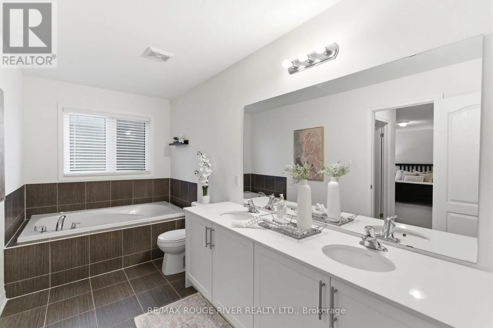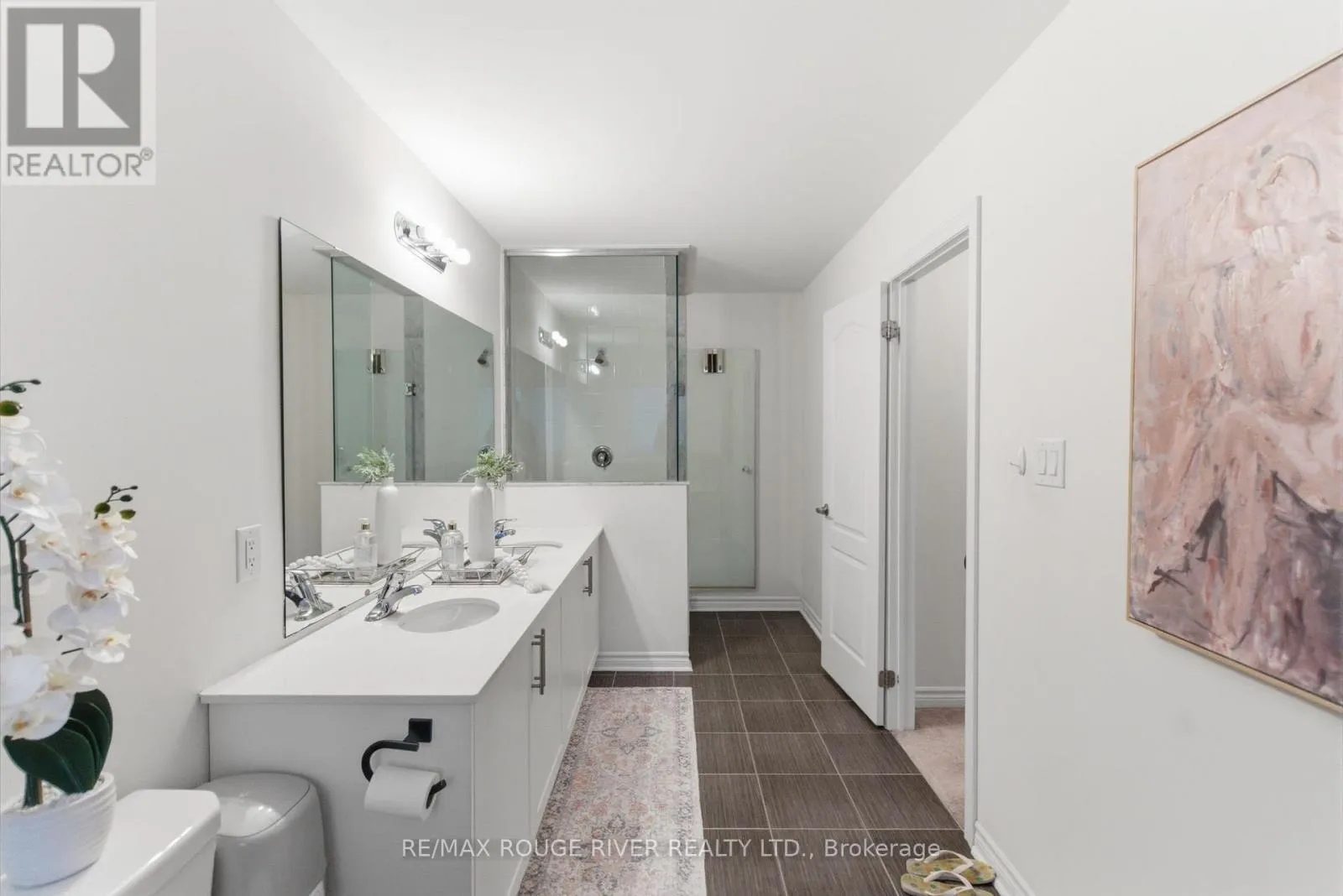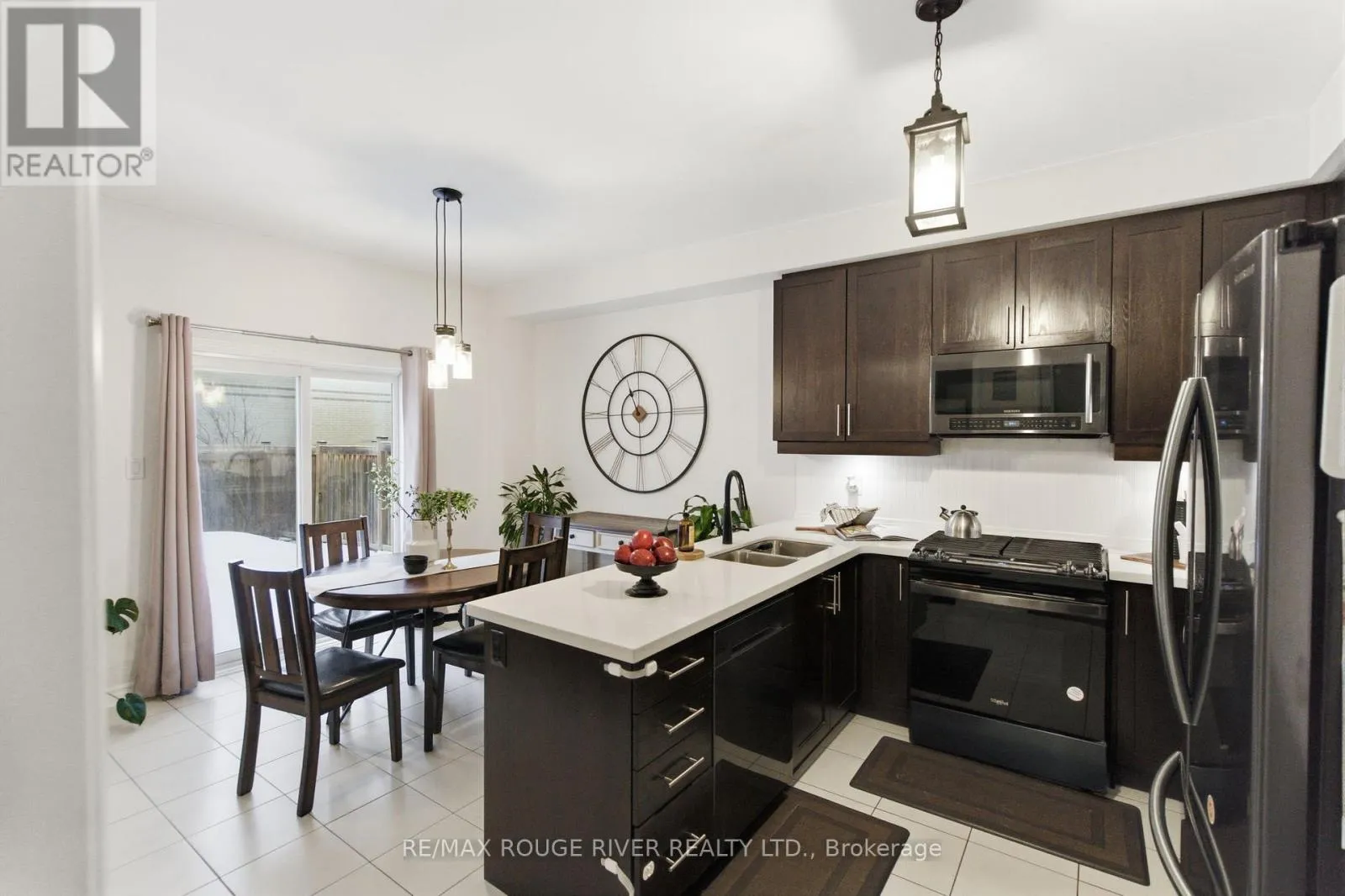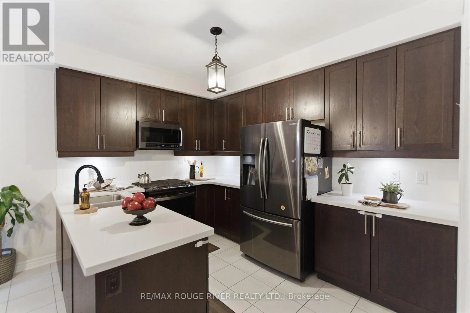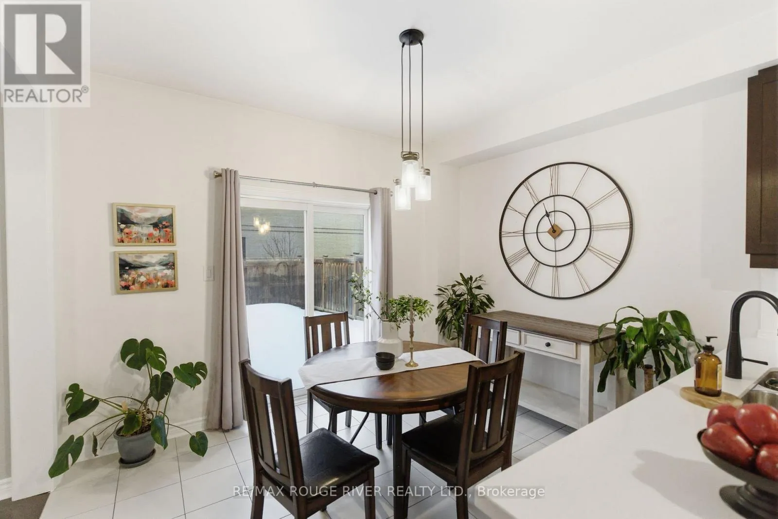 Cross Streets: Bloor/Prestonvale. ** Directions: From Prestonvale Rd go West on Cale Ave. Step into this beautifully designed open-concept family home, built in 2016 by Preston Homes. The main floor boasts 9-foot ceilings, hardwood and ceramic flooring, and a bright, inviting living room overlooking the backyard, complete with California shutters. Adjacent is the formal dining room with elegant hardwood floors and ample natural light, flowing seamlessly into the kitchen and breakfast area. The kitchen features quartz countertops, black Samsung stainless steel appliances, and a breakfast space with walkout access to the private backyard. A convenient main floor laundry adds to the practicality of this level. Upstairs, the primary bedroom offers a luxurious 5-piece ensuite and his-and-hers walk-in closets. Three additional bedrooms provide plenty of space for family and guests, each with broadloom flooring and ample closet space. The partially finished basement offers a versatile recreation area, pot lighting, windows for natural light, and rough-ins for a kitchenette and 3-piece bathroom, along with a cold room for added storage. Outside, the backyard is private and family-friendly, backing onto Dr. G.J. MacGillivray Public School, offering peace of mind and convenience. The property features professionally landscaped front, back, and side yards, creating an inviting outdoor space for play, relaxation, and entertaining. Ideally located, this home offers easy access to Durham Oshawa GO Station and Courtice GO Bus Stop for effortless commuting. Recreation is just steps away, with South Courtice Arena within walking distance and Clarington Public Library only a short drive. With every detail carefully considered, this home perfectly balances style, comfort, and practicality for modern family living. (id:27476)
