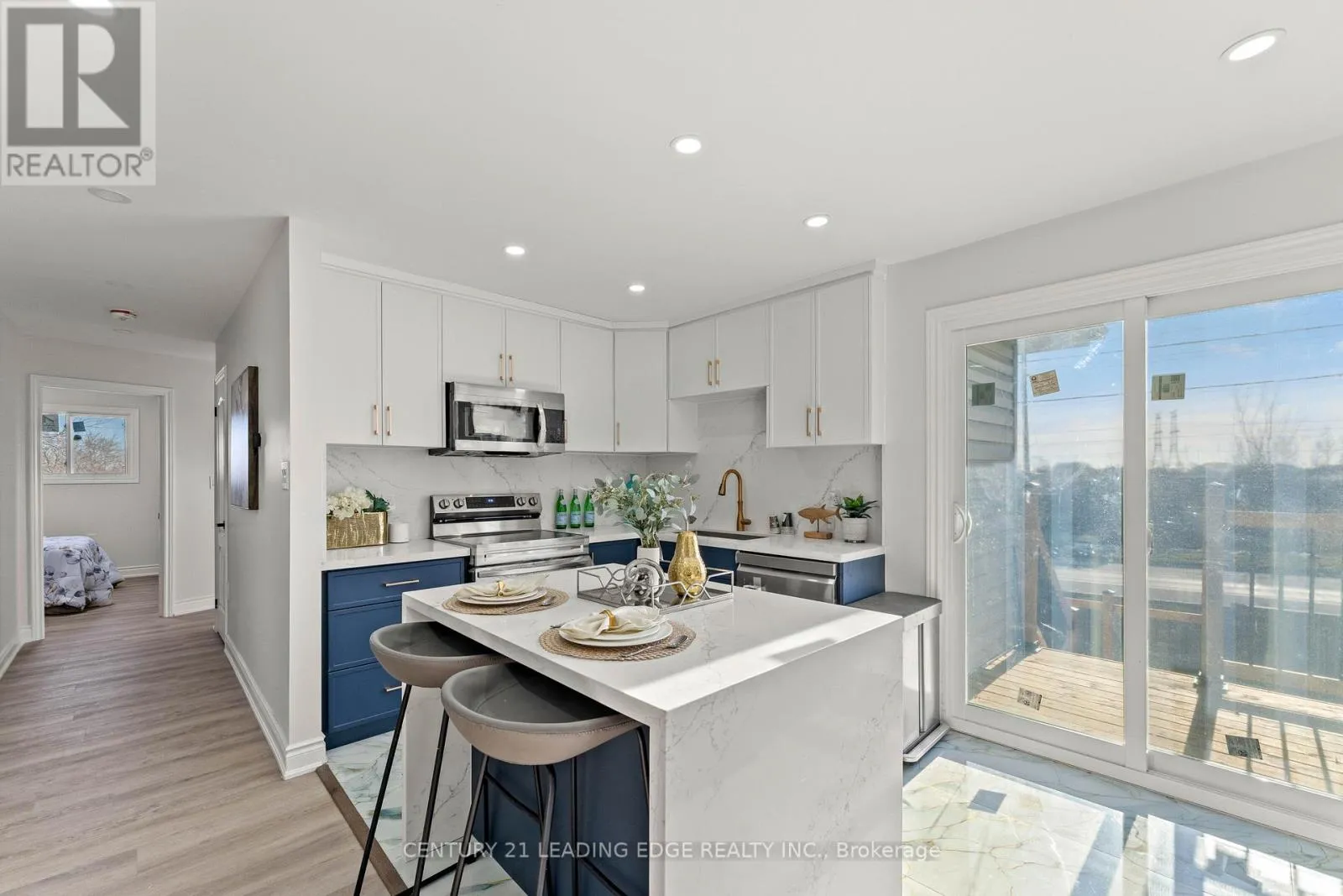 BOWMANVILLE AVE & BASELINE RD W Stunning fully renovated home with legal basement suite - prime corner lot! Welcome to this beautifully remodeled 3 bedroom, 2 bathroom home, perfectly blending modern design and everyday comfort. Step inside to a bright, open concept kitchen featuring a waterfall island, modern designer cabinets, and a patio walkout perfect for entertaining or enjoying your morning coffee. With no neighbours on the south side, this home is filled with natural sunlight throughout the day, enhanced by elegant pot lights for a warm evening ambiance. The basement level offers a bonus room and an additional full washroom, providing extra living or recreational space. Adding incredible value, the property includes a city approved additional dwelling unit (legal basement) complete with 2 rooms and a full bath, ideal for rental income or extended family living. Enjoy outdoor living on the beautiful deck, with a spacious 4 car driveway and the advantages of a corner lot offering extra privacy and curb appeal. Perfectly located just 4 minutes from highway 401 for an easy commute, 6 minutes to scenic Darlington Beach (Lake Ontario), 2 minutes to the creek and nature trails. This home is a rare combination of modern luxury, convenience and income potential ready for you to move in and enjoy! (id:27476)