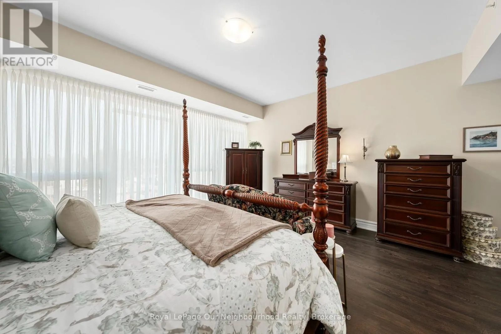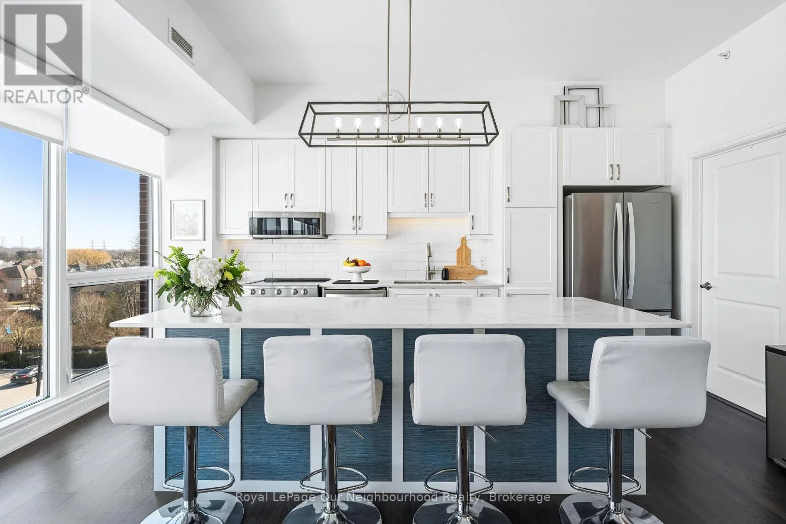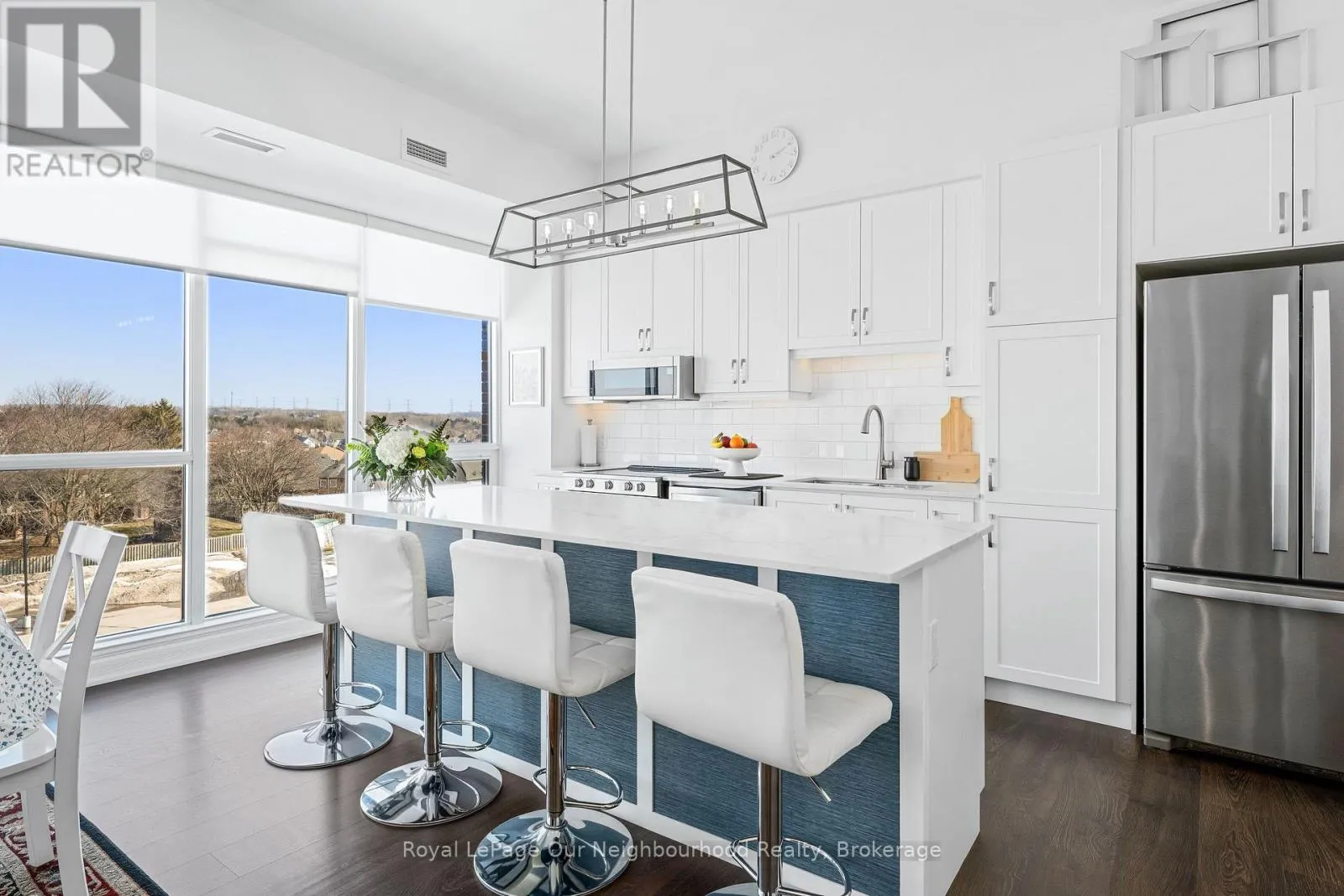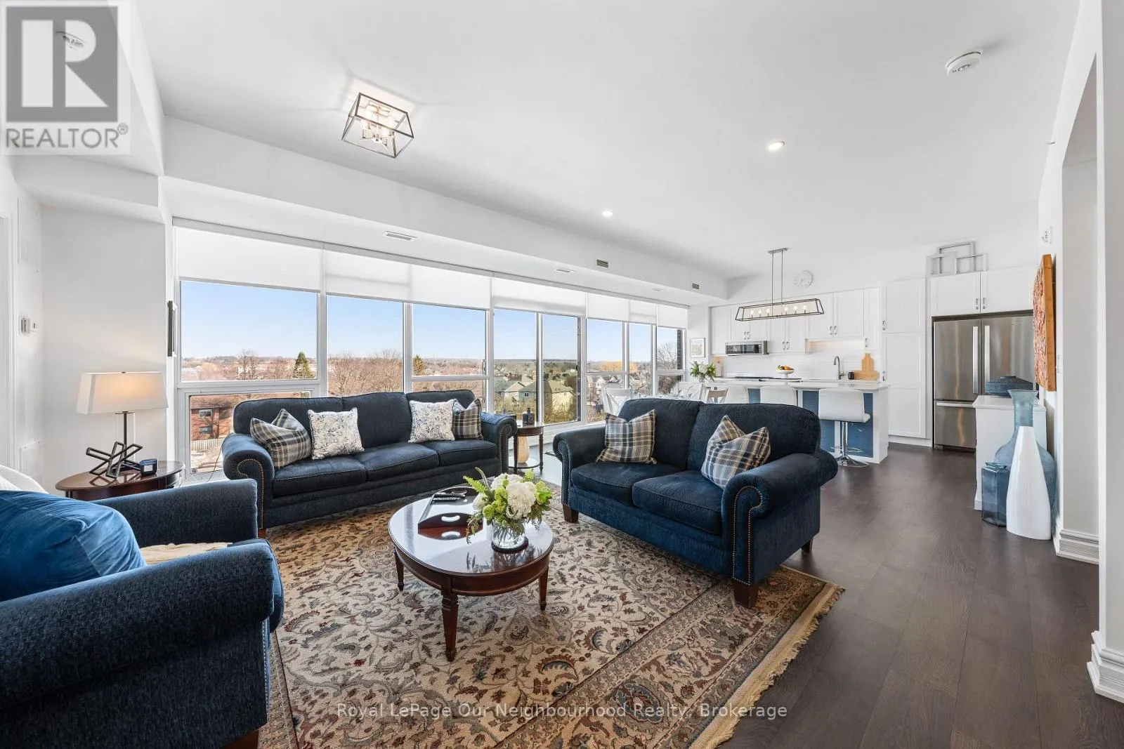 Cross Streets: King St E/Mill St S. ** Directions: Off 401 to Mill St S. Gorgeous open concept condo with expansive windows offering panoramic views overlooking the heart of Newcastle. Spacious front foyer leads to large kitchen and living area featuring 9 1/2' ceilings. Beautiful eat in kitchen boasts center island, quartz countertops, ceramic backsplash, b/i stainless steel appliances and upgraded light fixtures. Convenient laundry room and pantry off kitchen. Additional 4pc bath off living room. Huge primary bedroom with double walk through closet, 3 pc ensuite and another outstanding view with plenty of natural light. Large 2nd bedroom could be used as an office or den. Enjoy underground parking, rooftop patio with shared barbeque and other convenient amenities. Walking distance to everything in town and close to transit and all commuter routes 401, 115 & 407. (id:27476)