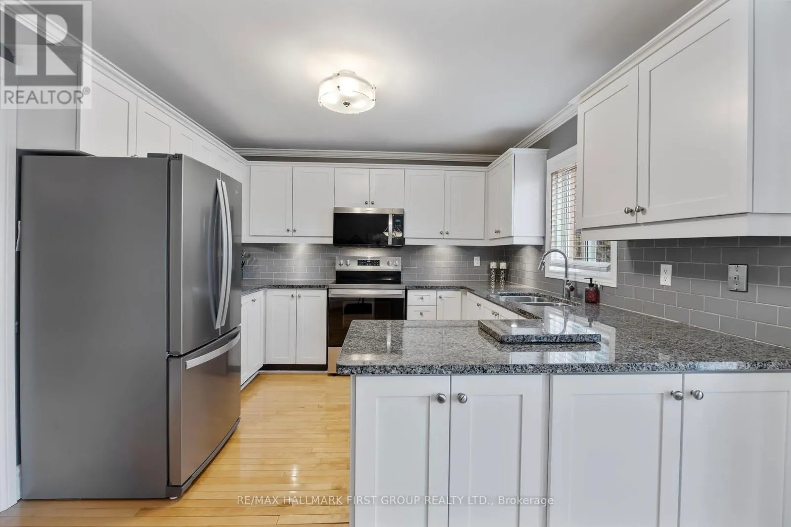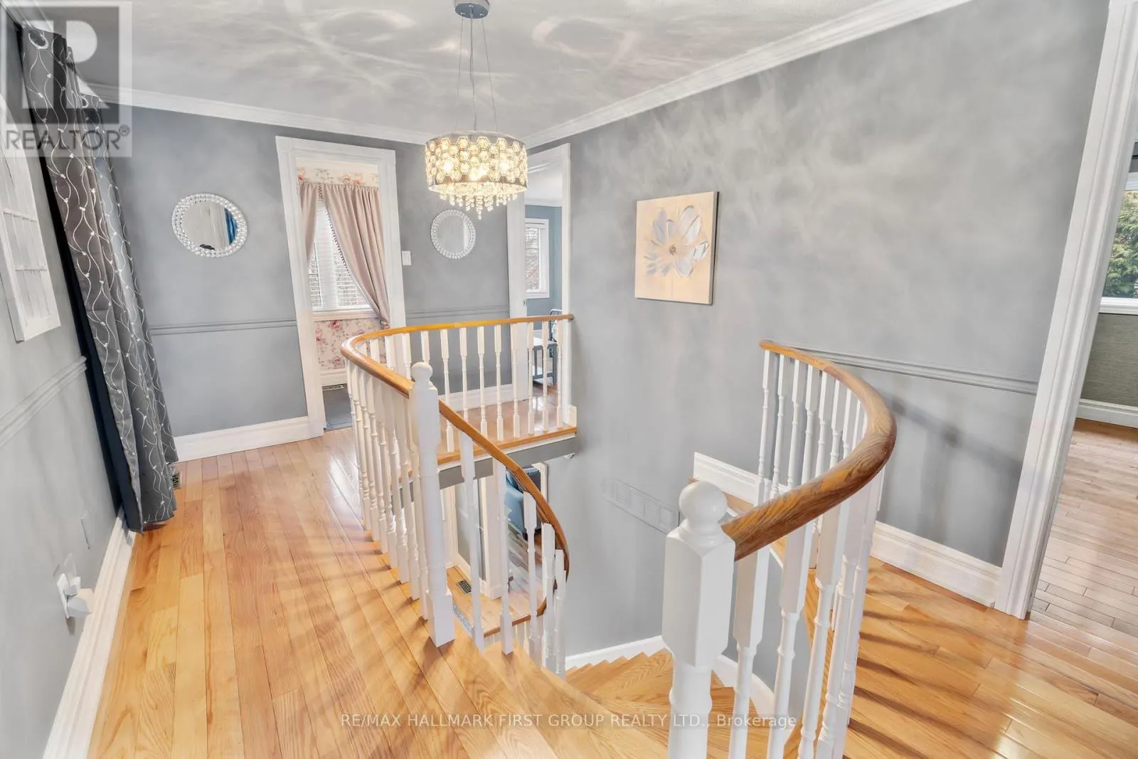 Cross Streets: Prestonvale & Glenabbey. ** Directions: Prestonvale Rd. to Glenabbey Dr. Wonderful four-bedroom family home in a well-established, family-friendly neighbourhood close to schools, parks, shops, restaurants, recreation centre with skating rink and convenient highway access for commuters. Situated on an oversized and extra-deep 54 x 175 ft. fenced lot with sunny southern exposure, offering exceptional outdoor space for entertaining, gardening or relaxing with family.This immaculate, move-in ready home is freshly painted in neutral tones and features classic dcor and timeless finishes throughout. Welcoming front foyer with hardwood floors, chair rail and mirrored hall closet. Elegant Scarlett O'Hara staircase with solid wood treads creates a striking focal point and adds charm and character.Bright and spacious living room open to the formal dining room provides an ideal setting for hosting family gatherings and special occasions. Renovated classic white kitchen features granite countertops, ceramic backsplash, valance lighting, stainless steel appliances and a bright greenhouse breakfast area with walk-out through garden doors to a party-sized deck and patio complete with hot tub-perfect for summer entertaining.Separate main floor family room with cozy gas fireplace offers a comfortable space for relaxing evenings. Convenient direct interior garage access through the renovated laundry room with laundry tub and front-loading washer and dryer.The spacious primary retreat features a sitting area, walk-in closet and a beautifully appointed five-piece ensuite with double basins, separate shower stall and antique-style soaker tub. Renovated main bathroom serves the additional bedrooms.Unfinished full basement provides unlimited potential to create additional living space, recreation room, home gym or in-law suite to suit your needs. Elegant crown mouldings and thoughtful updates throughout.Lovingly maintained and updated over the years including kitchen appliances 2026, roof 2025, furnace 2025, central air 2025, driveway 2025 and windows 2016. (id:27476)