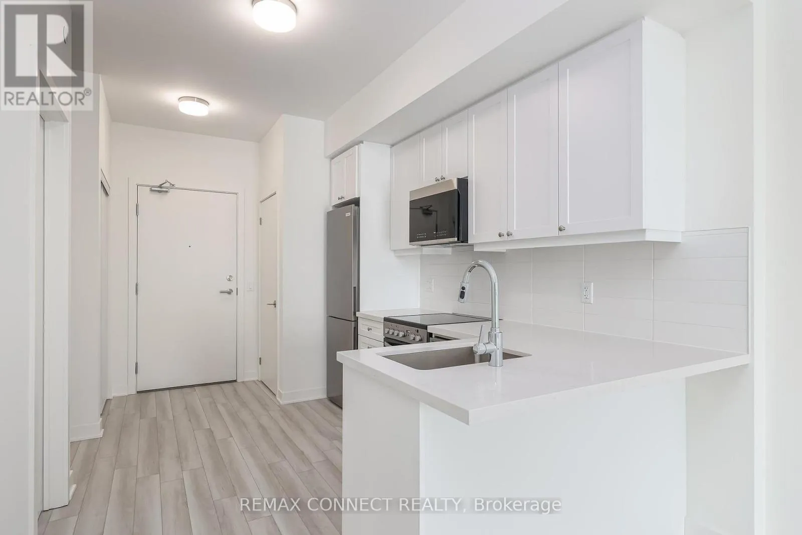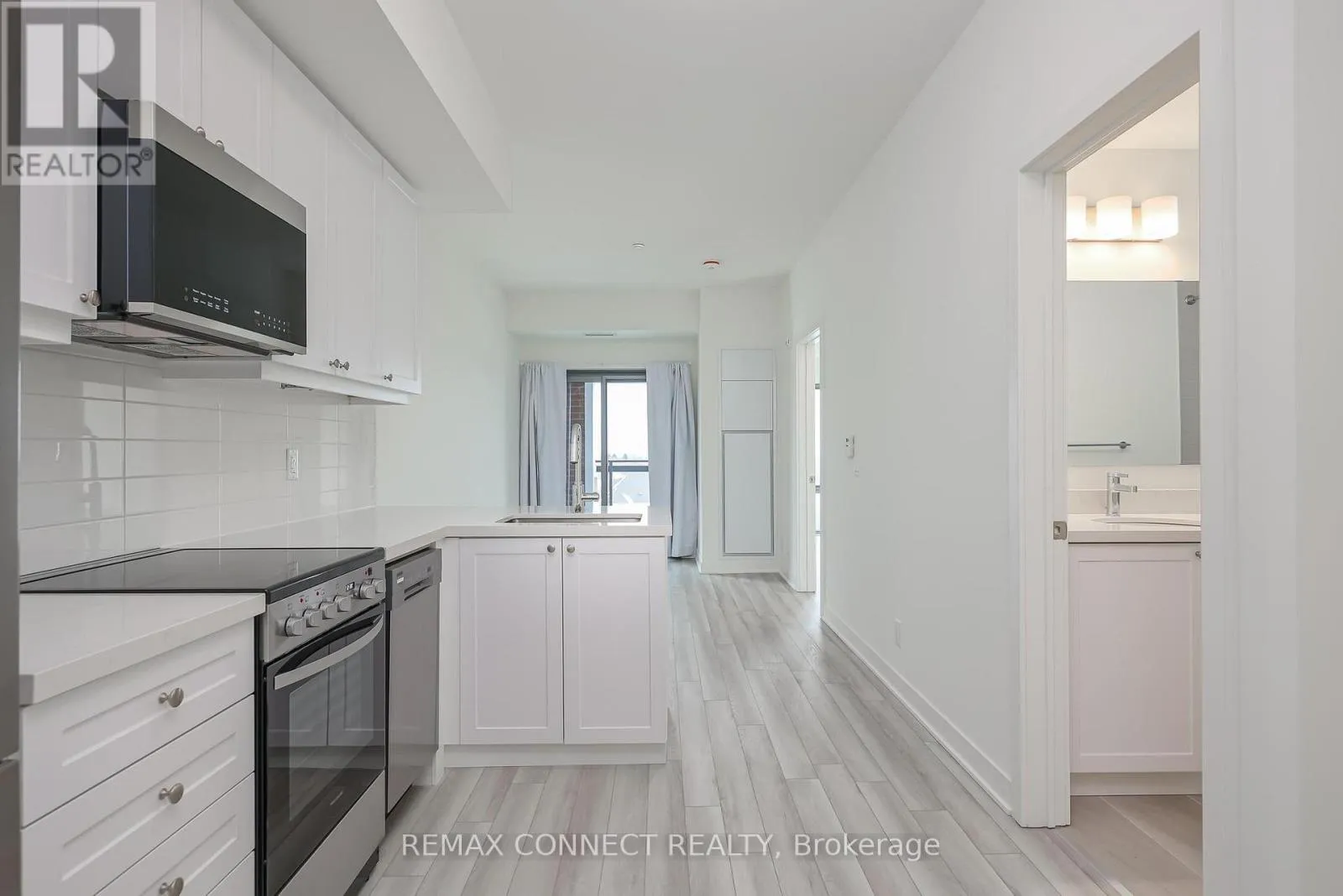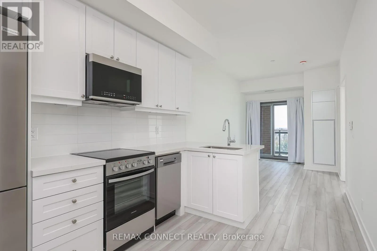 Green Rd / Clarington Blvd Welcome to MODO Condos in the heart of downtown Bowmanville! Be the first resident to live in this brand new 1-bedroom + den, 2-bathroom suite on the sixth floor offering a perfect blend of modern style, comfort, and convenience. Step inside to a bright open-concept layout featuring 9-foot ceilings and a contemporary kitchen complete with sleek cabinetry, quartz countertops, under cabinet lighting, an extended breakfast bar, and stainless steel appliances overlooking the living and dining area-perfect for both everyday living and entertaining. The spacious primary bedroom boasts generous closet space and a private 3-piece ensuite with a glass shower. A separate 4-piece main bathroom with a tub adds extra comfort and functionality for guests. The versatile den is ideal as a home office or additional living space. Enjoy your private south-facing balcony with lake views-an inviting space to relax and unwind. This unit also includes in-suite laundry, a premium ground-level parking spot (#65) conveniently located directly across from the main entrance, a storage locker, new window coverings, and complimentary high-speed internet. Ideal for young professionals, couples, or downsizers. Residents have access to a full suite of amenities, including a fitness centre, residents 'lounge, games/party room, boardroom-style workspaces, and an outdoor terrace. Located just 35 minutes east of Toronto, with easy access to Highways 401, 407, and 35/115, and two new GO Transit stations coming soon. Enjoy walking distance to shops, restaurants, and everyday amenities in downtown Bowmanville, along with nearby attractions such as Bowmanville Marina, Bowmanville Golf & Country Club, and Durham College. Experience modern living in one of Bowmanville's most exciting new developments. (id:27476)