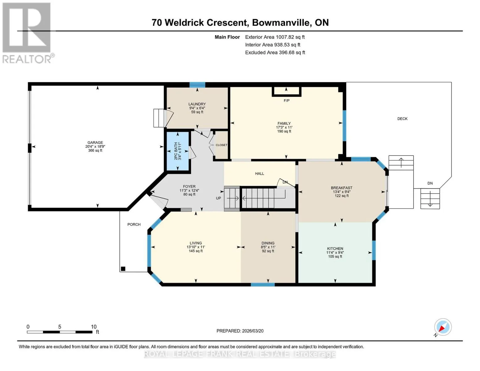 Cross Streets: Boswell and Hwy 2. ** Directions: Boswell to Rustwood to Weldrick. Welcome to 70 Weldrick Crescent in desirable Bowmanville - an impeccably maintained, lovingly cared-for family home offering close to 2,700 sq ft of finished living space! This home blends comfort, function, and thoughtful updates throughout. The beautifully renovated kitchen (2022) features a large island with seating, ample storage, and a walk-out to the deck and fully fenced yard with gas BBQ hook-up - perfect for entertaining. Enjoy a bright living/dining room combination with hardwood floors and a large front window, plus a spacious family room with gas fireplace and hardwood flooring. Upstairs, you'll find newer laminate flooring, a spacious primary bedroom with walk-in closet and 4-piece ensuite, and three additional well-sized bedrooms. The finished basement adds incredible versatility with a bedroom featuring a large above-grade window, a full 4-piece bath, and a rec room with laminate flooring and two above-grade windows-ideal for guests, teens, or extended family. The convenient main floor laundry offers direct access to the double car garage. Updates include kitchen (2022); most windows (2019), roof (2019); garage doors (2018); upstairs laminate floors (2026). Parking for up to 6 vehicles with a double garage (two separate doors) and a 4-car driveway. Located close to schools, shopping, restaurants, transit, and just 5 minutes to Hwy 401. Exciting bonus: the new South Bowmanville Recreation Centre is scheduled to open August 2026! Offers Anytime! (id:27476)