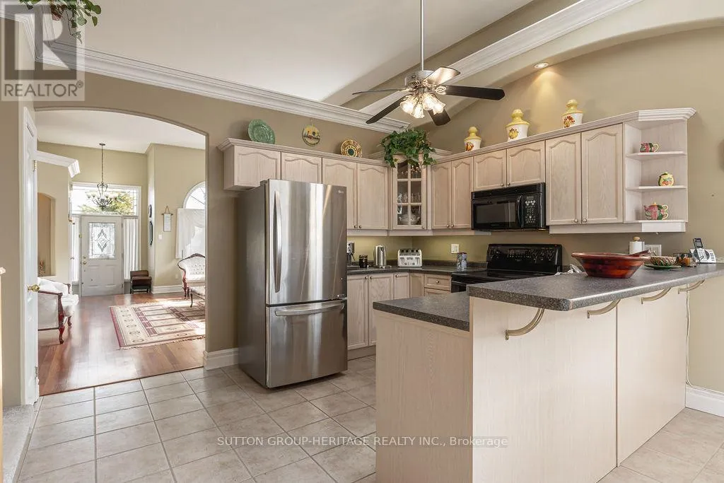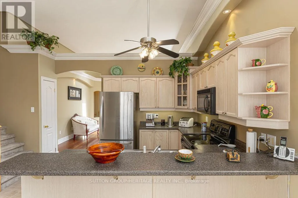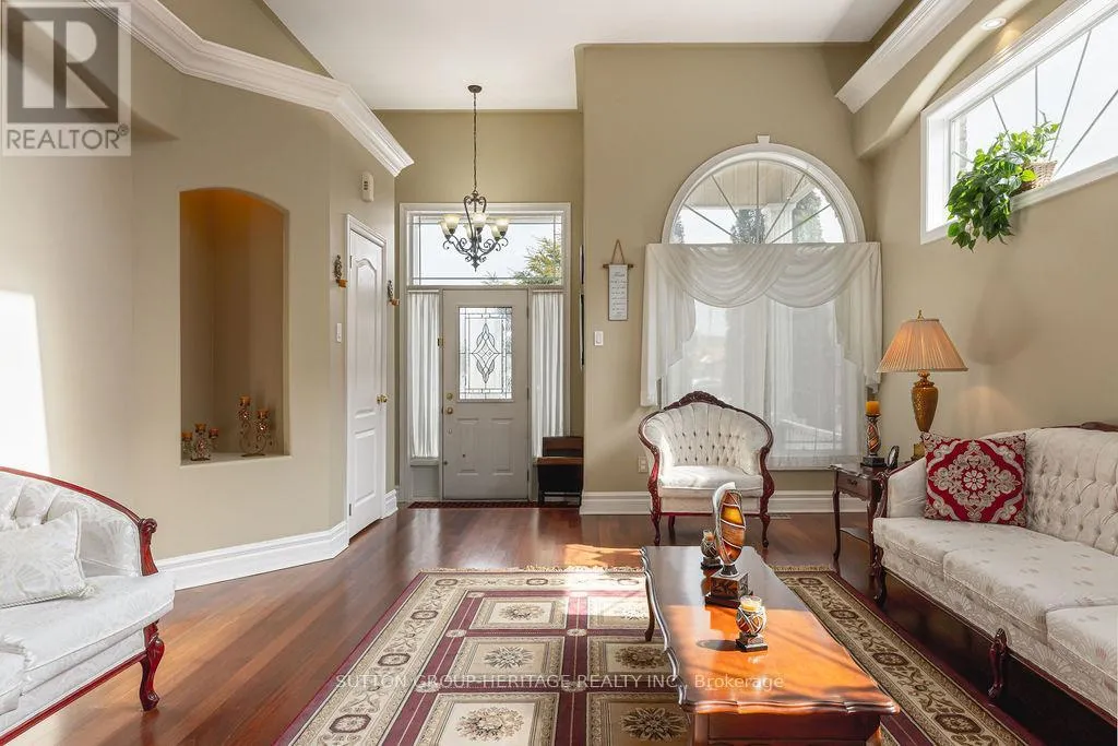 Townline & Bloor St Step into this impressive 3-bedroom, 2-bathroom home, where style and space come together beautifully. From the moment you enter, you're greeted by soaring 12-foot ceilings, elegant crown molding, skylights, and architectural wall niches that fill the main floor with natural light and character. The spacious kitchen continues the open, airy feel with high ceilings and plenty of room for family meals, plus a convenient walkout to a large deck-perfect for outdoor dining and entertaining. The bright and inviting family room offers generous space to gather, complete with its own walkout to the backyard. The lower level features a generously sized third bedroom with a large above-grade window, making it feel bright and welcoming-ideal for guests, a home office, or additional family space. A second bathroom and laundry room add to the home's functionality. Meticulously maintained and truly move-in ready, this spotless home is ideally located just minutes from Highway 401, close to parks, schools, and a growing hub of new employment opportunities across Ontario. (3rd Bedroom is in the basement level, but has full sized above grade window) (id:27476)