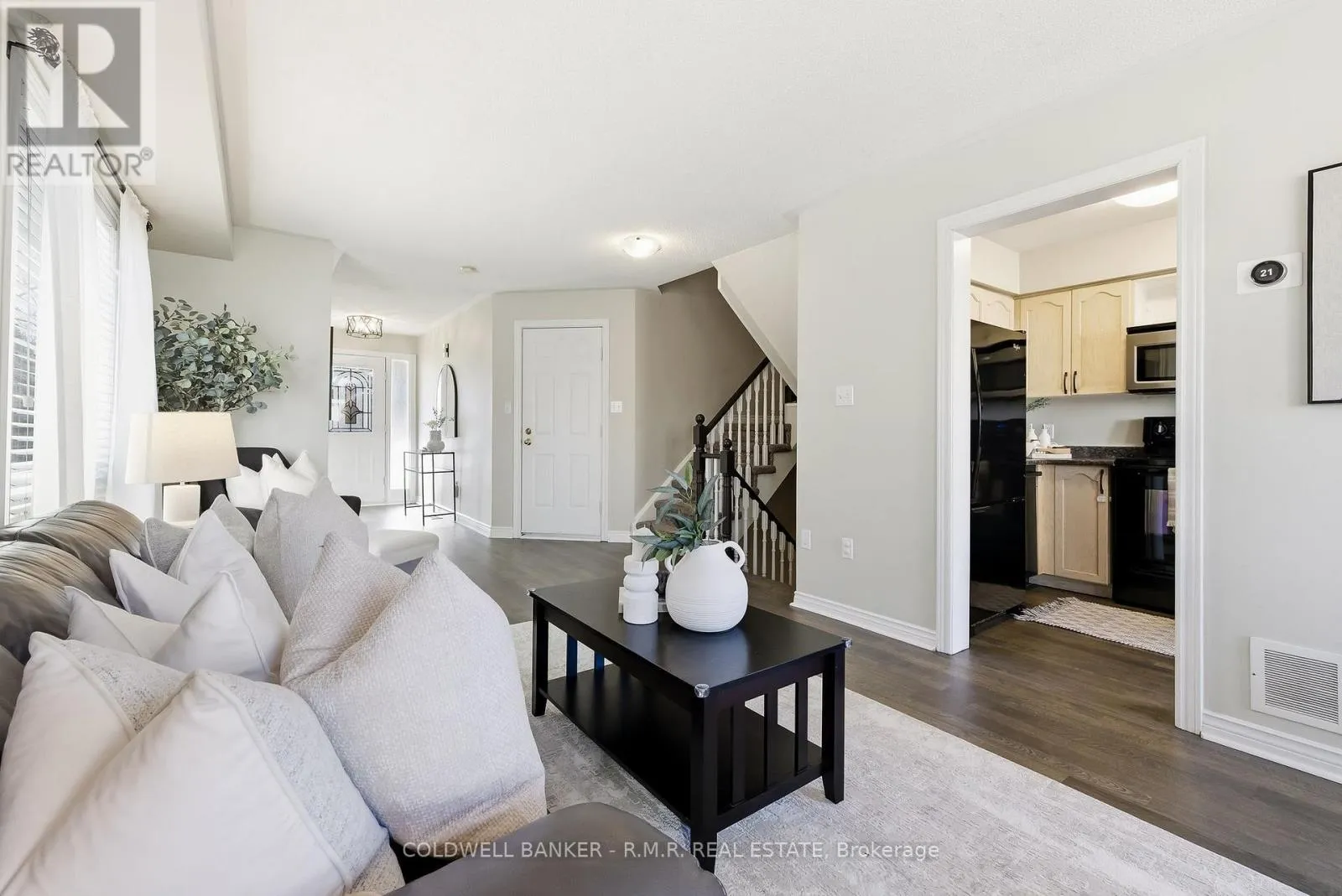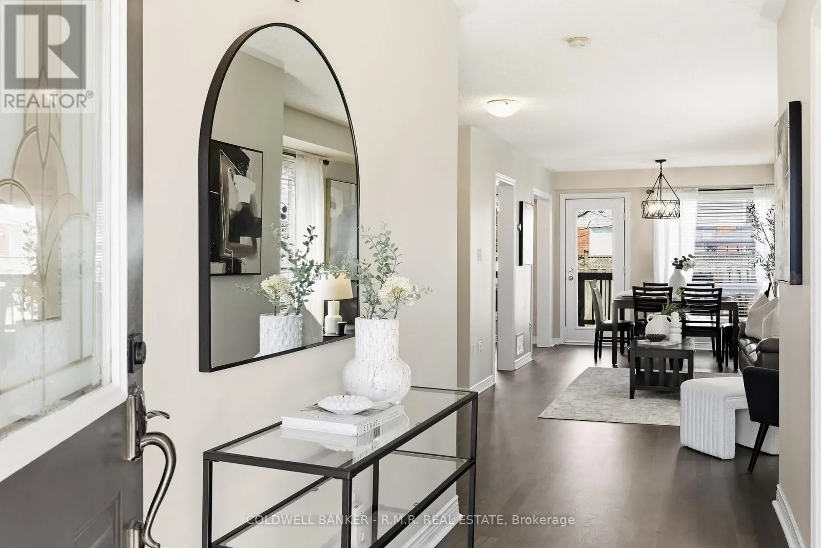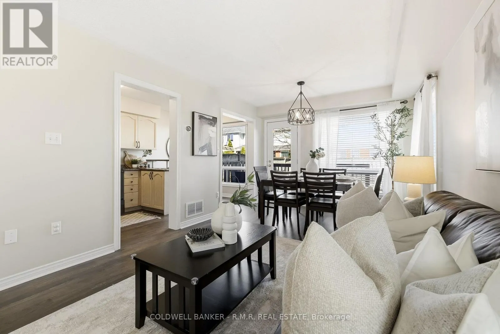 Cross Streets: Trulls & Avondale. ** Directions: Going N on Weaver St, turn left into Brownstone Crescent. Welcome to Brownstone Crescent - this beautifully maintained end-unit townhome boasts what others can't. With nearly 1,400 sq ft above grade, a 4th bathroom, home-access to the built-in garage, plus a fully finished basement. Conveniently located on a quiet, family-friendly neighbourhood in Courtice. The main floor showcases newly re-finished hardwood floors, plenty of windows, creating a bright and welcoming atmosphere and a rear walk-out to the private backyard. Upon entering the foyer you'll find a closet, a 2-pc bathroom, and the convenience of direct access to the 1-car garage. Enjoy open-concept main floor with large windows offers natural light in the family room and dining rooms, making it ideal for entertaining. The eat-in kitchen features Whirlpool and Bosch appliances, hardwood flooring, a breakfast bar, and a bay window shining even more natural light into the space. The second storey provides three generously sized bedrooms, along with two full 4-piece bathrooms. The primary bedroom includes a double-wide closet and private 4-pc ensuite, while the additional 2 bedrooms are perfect for children, guests, or a home office. The professionally finished basement adds valuable living space with a cozy den complete with gas fireplace, a second 2-piece bathroom, and a dedicated laundry/utility area- all ideal for convenience and relaxation, working from home or hosting guests. This home is perfectly positioned close to highly regarded schools, everyday shopping amenities, and excellent commuter access. Enjoy nearby green spaces including Glenabbey and Stuart Parks, with the Courtice Community Complex just minutes away. Commuters will appreciate the quick access to Highways 401 and 407, as well as proximity to the Oshawa GO Station. This move-in-ready end unit offers space, comfort, and an unbeatable location for families and professionals alike. (id:27476)