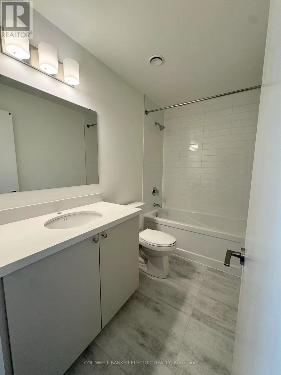Cross Streets: Clarington Blvd & Green Rd. ** Directions: Kingston rd to Clarington Blvd. Welcome to suite 805 at 51 Clarington Blvd, a bright and modern 1-bedroom plus large flex-space condo in the heart of Bowmanville. This 8th-floor suite offers a rare unobstructed southern view stretching all the way to Lake Ontario. Enjoy a premium layout featuring a larger private balcony (7'4" x 4'10") than the lower-floor units, perfect for taking in the scenery and lake breeze. The open-concept kitchen is designed with quartz countertops, stainless steel appliances, chic subway tile backsplash, and a functional flush breakfast bar. The spacious primary bedroom includes a well appointed ensuite and an oversized walk-in closet in addition to the large den that would make a fantastic home office or nursery. Location is everything: just steps from grocery stores, Home Depot, and local dining. Quick access to Hwy 401 and the future GO Transit expansion makes this a commuter's dream. Building amenities include a fully equipped gym, stylish party room, and convenient visitor parking. In-suite laundry included. Move in and enjoy the lakeside views! (id:27476)