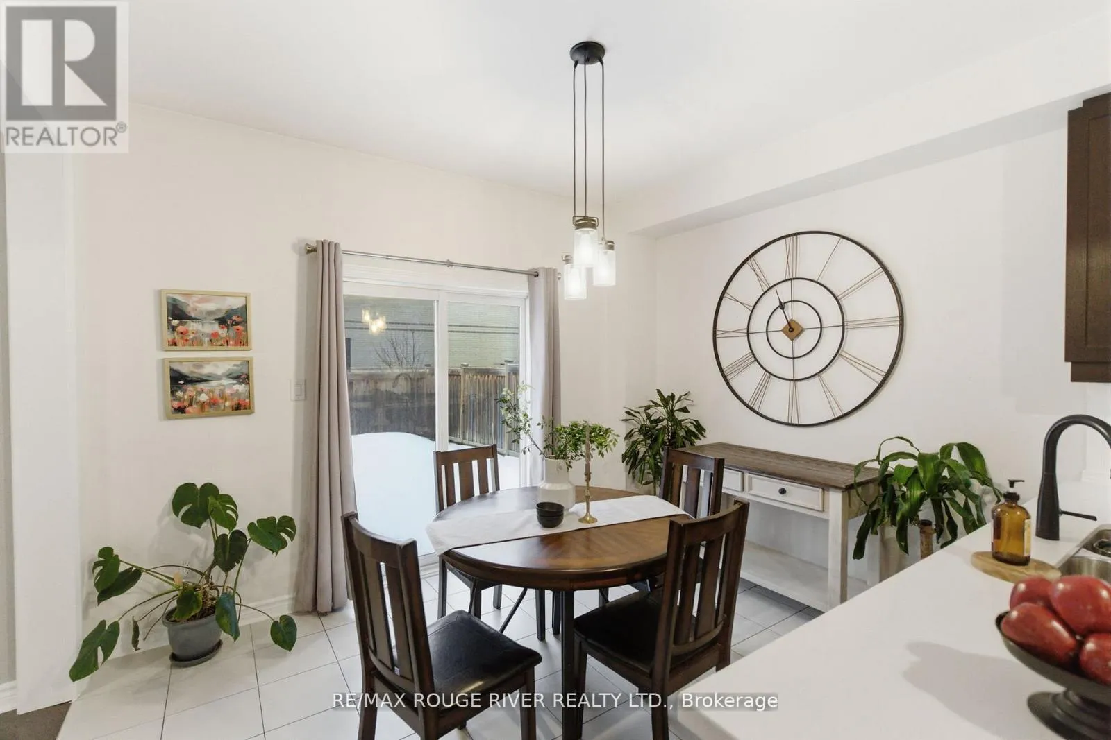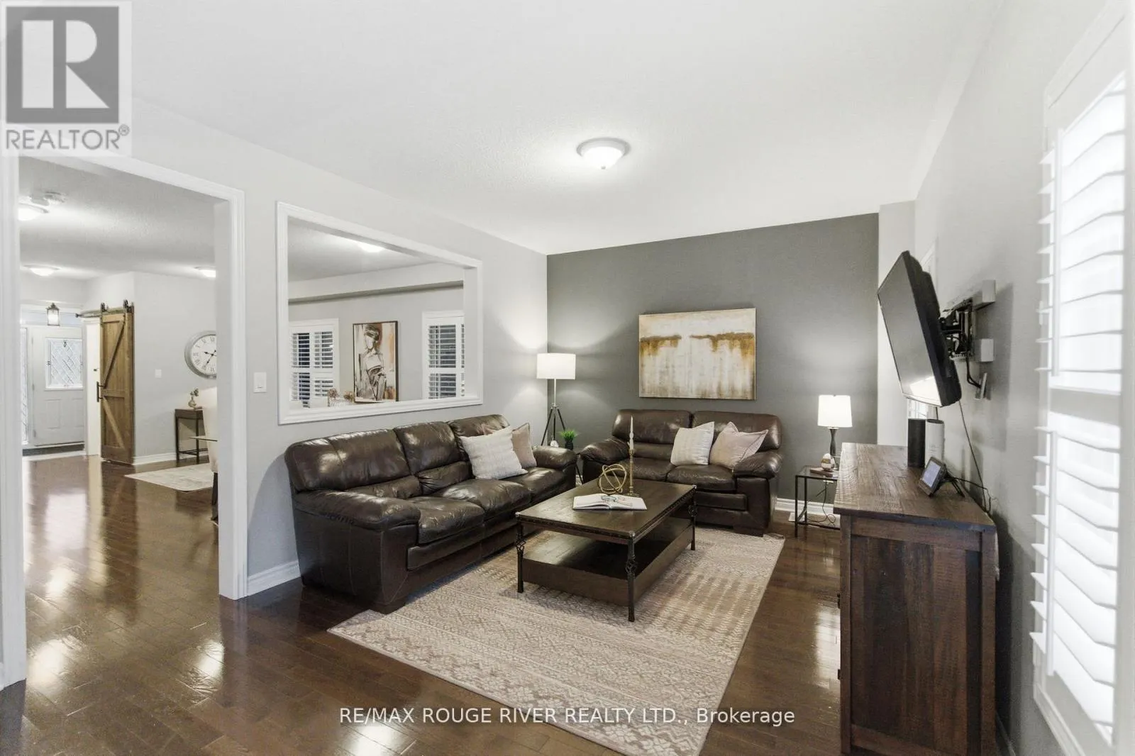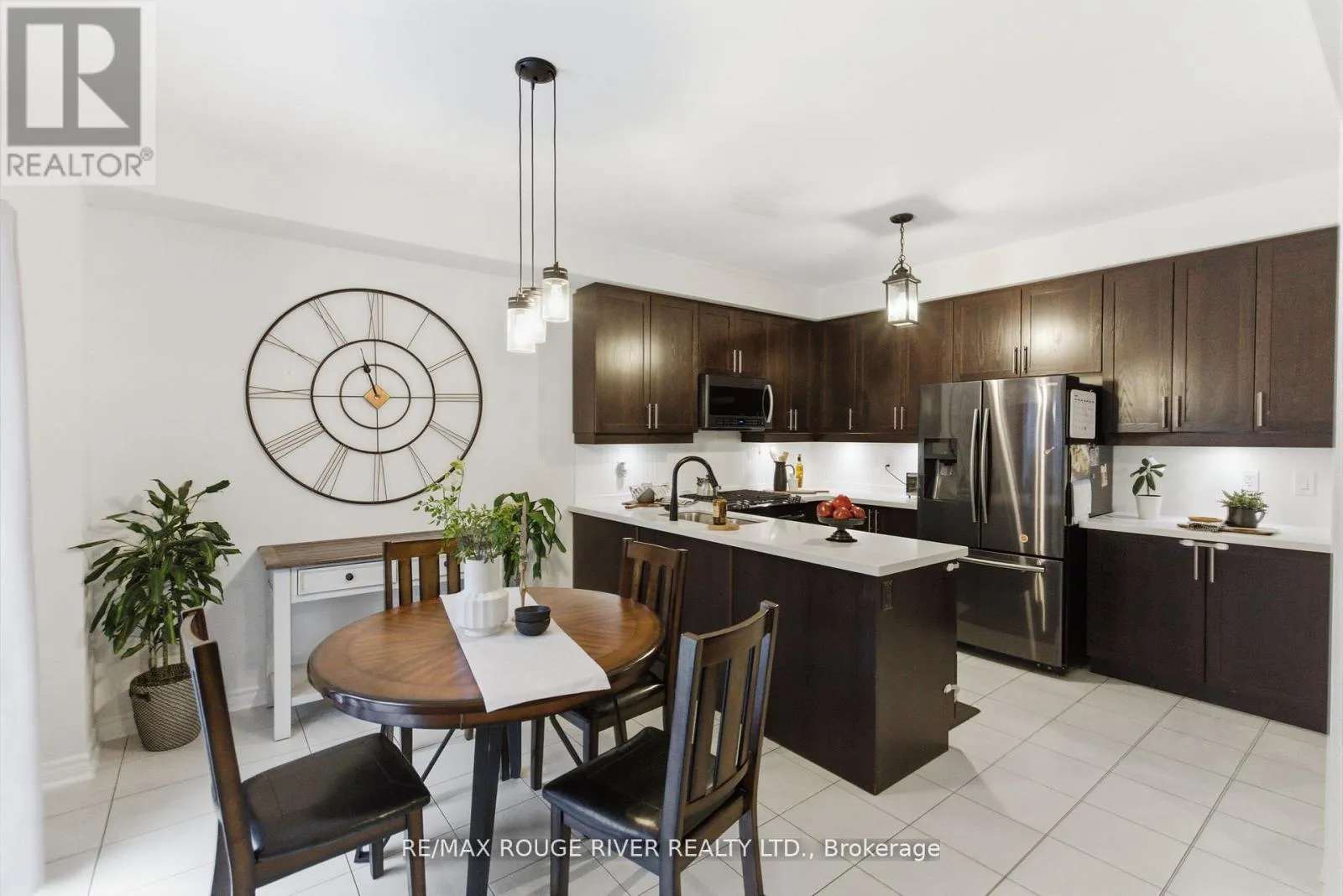 Cross Streets: Bloor/Prestonvale. ** Directions: From Prestonvale Rd go West on Cale Ave. Step into this beautifully designed open-concept family home, built in 2016 by Preston Homes. The main floor boasts 9-foot ceilings, hardwood and ceramic flooring, and a bright, inviting living room overlooking the backyard, complete with California shutters. Adjacent is the formal dining room with elegant hardwood floors and ample natural light, flowing seamlessly into the kitchen and breakfast area. The kitchen features quartz countertops, black Samsung stainless steel appliances, and a breakfast space with walkout access to the private backyard. A convenient main floor laundry adds to the practicality of this level. Upstairs, the primary bedroom offers a luxurious 5-piece ensuite and his-and-hers walk-in closets. Three additional bedrooms provide plenty of space for family and guests, each with broadloom flooring and ample closet space. The partially finished basement offers a versatile recreation area, pot lighting, windows for natural light, and rough-ins for a kitchenette and 3-piece bathroom, along with a cold room for added storage. Outside, the backyard is private and family-friendly, backing onto Dr. G.J. MacGillivray Public School, offering peace of mind and convenience. The property features professionally landscaped front, back, and side yards, creating an inviting outdoor space for play, relaxation, and entertaining. Ideally located, this home offers easy access to Durham Oshawa GO Station and Courtice GO Bus Stop for effortless commuting. Recreation is just steps away, with South Courtice Arena within walking distance and Clarington Public Library only a short drive. With every detail carefully considered, this home perfectly balances style, comfort, and practicality for modern family living. (id:27476)