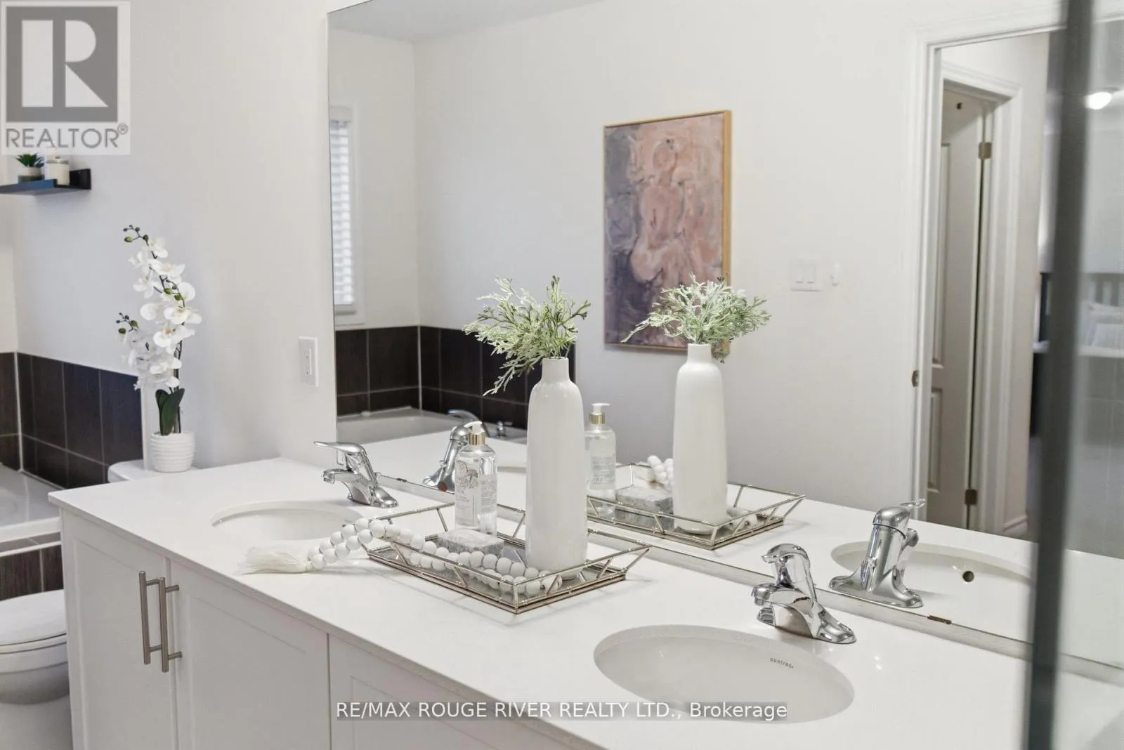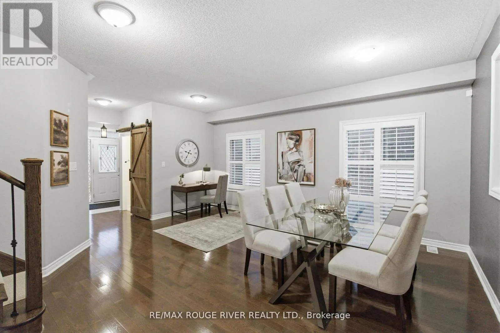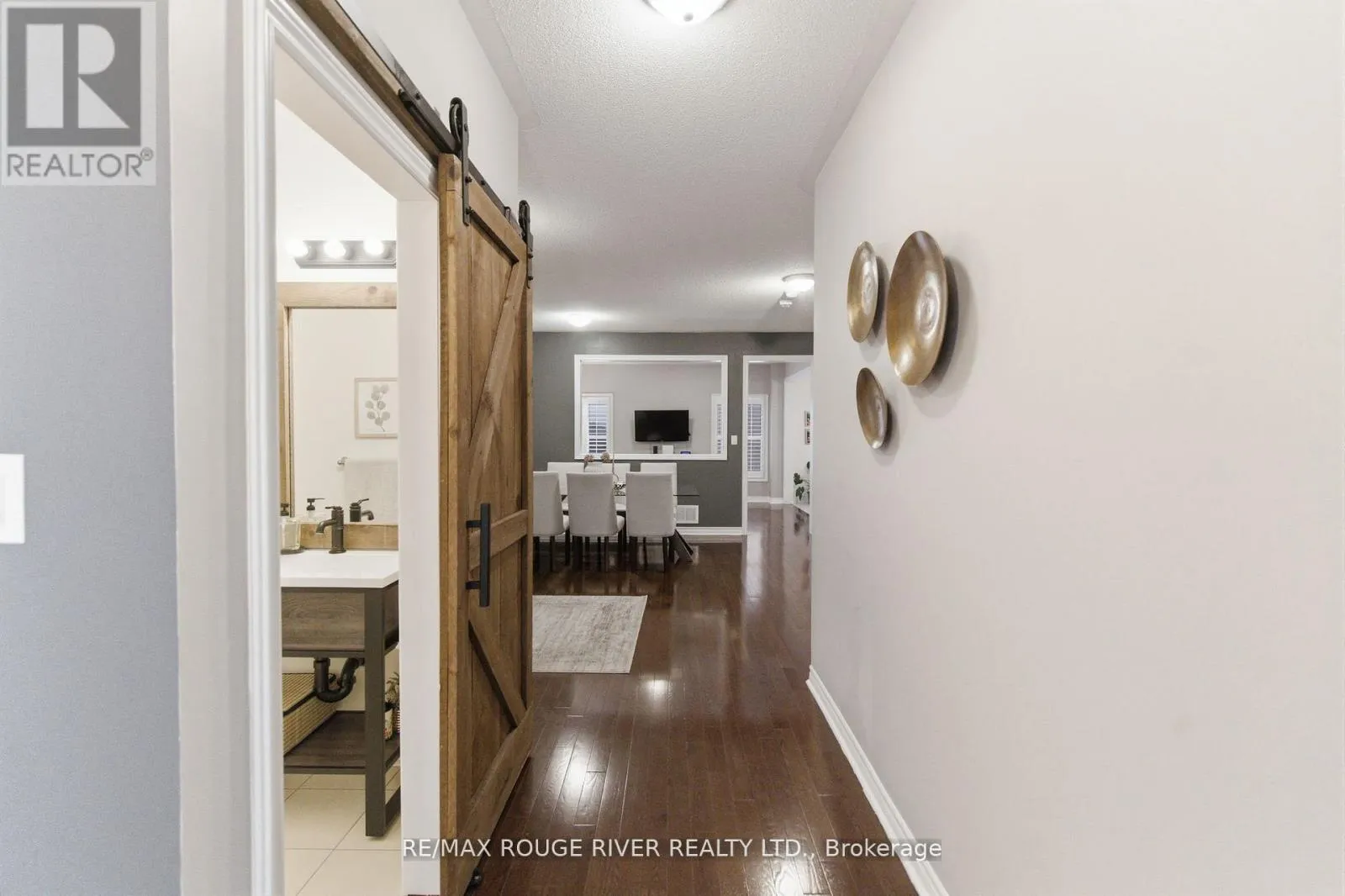 Cross Streets: Bloor/Prestonvale. ** Directions: From Prestonvale Rd go West on Cale Ave. Step into this beautifully designed open-concept family home, built in 2016 by Preston Homes. The main floor boasts 9-foot ceilings, hardwood and ceramic flooring, and a bright, inviting living room overlooking the backyard, complete with California shutters. Adjacent is the formal dining room with elegant hardwood floors and ample natural light, flowing seamlessly into the kitchen and breakfast area. The kitchen features quartz countertops, black Samsung stainless steel appliances, and a breakfast space with walkout access to the private backyard. A convenient main floor laundry adds to the practicality of this level. Upstairs, the primary bedroom offers a luxurious 5-piece ensuite and his-and-hers walk-in closets. Three additional bedrooms provide plenty of space for family and guests, each with broadloom flooring and ample closet space. The partially finished basement offers a versatile recreation area, pot lighting, windows for natural light, and rough-ins for a kitchenette and 3-piece bathroom, along with a cold room for added storage. Outside, the backyard is private and family-friendly, backing onto Dr. G.J. MacGillivray Public School, offering peace of mind and convenience. The property features professionally landscaped front, back, and side yards, creating an inviting outdoor space for play, relaxation, and entertaining. Ideally located, this home offers easy access to Durham Oshawa GO Station and Courtice GO Bus Stop for effortless commuting. Recreation is just steps away, with South Courtice Arena within walking distance and Clarington Public Library only a short drive. With every detail carefully considered, this home perfectly balances style, comfort, and practicality for modern family living. (id:27476)