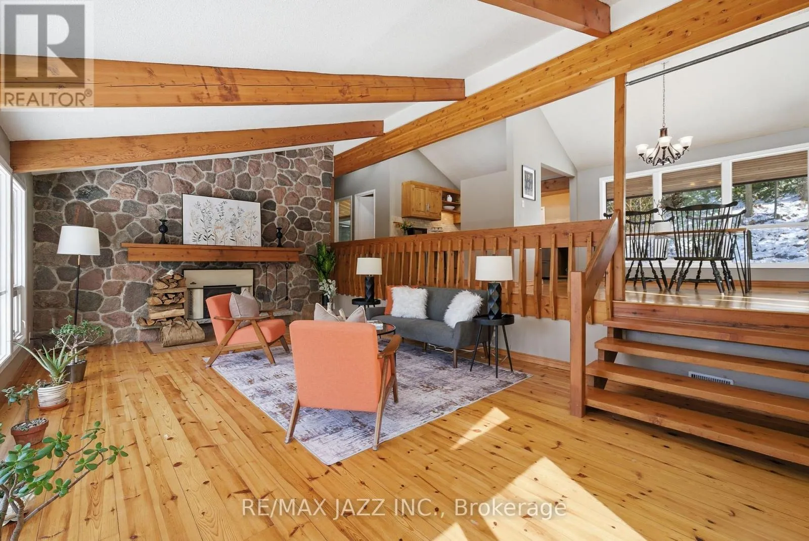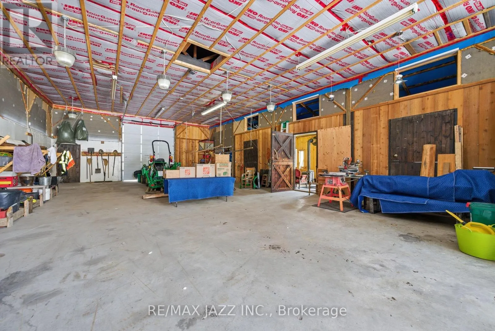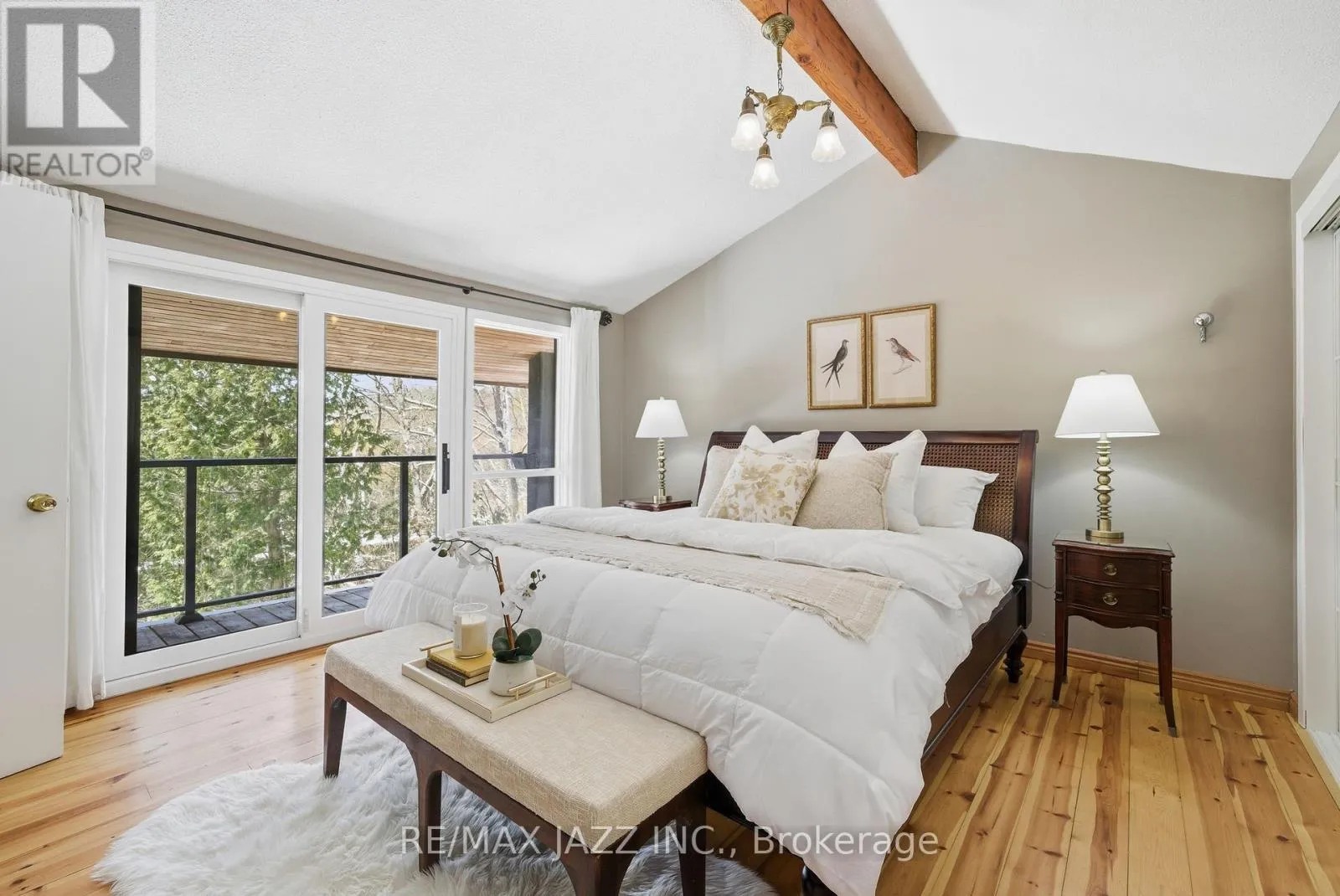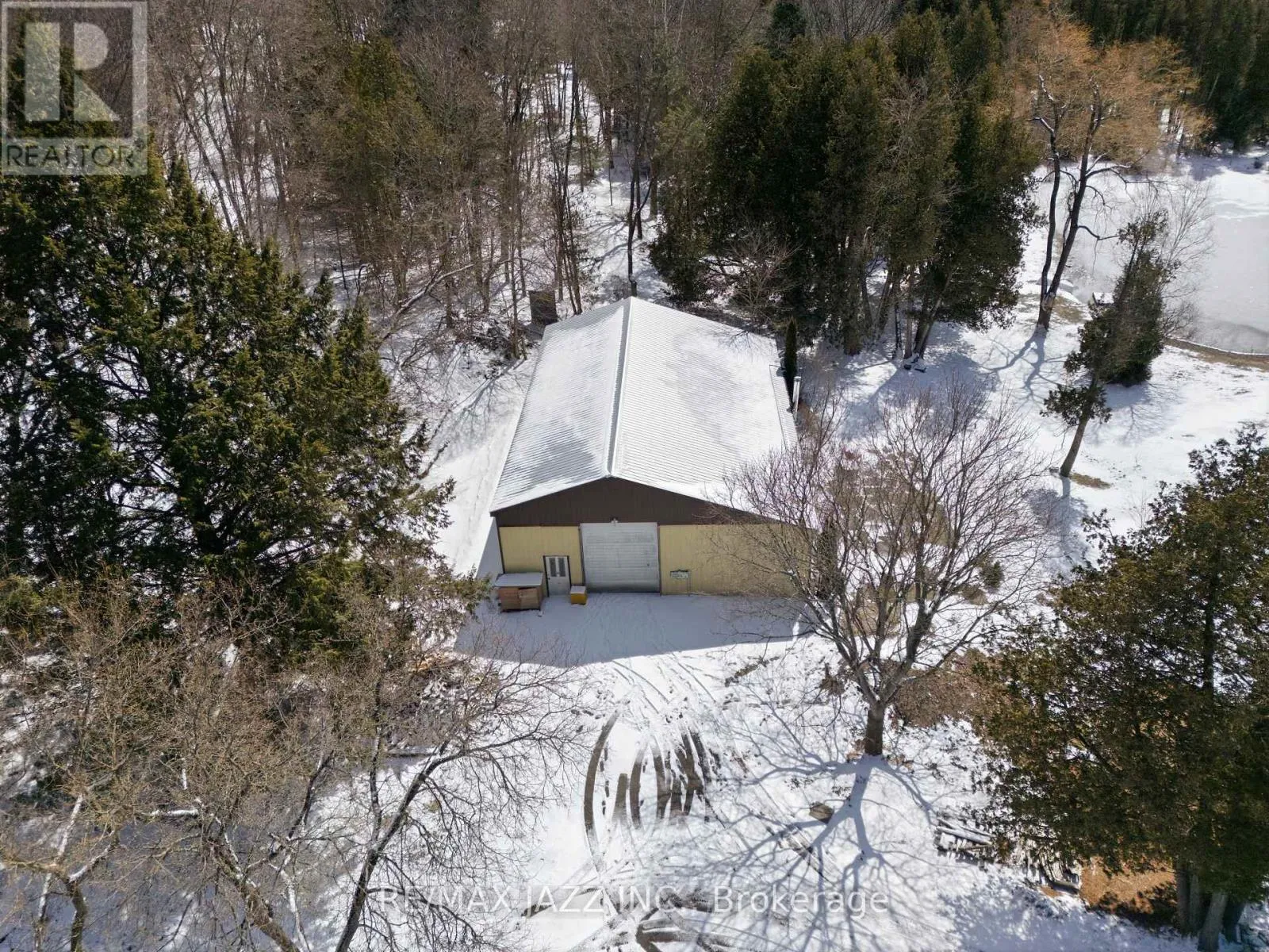 Cross Streets: Concession Rd 8 & Carscadden Rd. ** Directions: exit 115 on Concession Rd 8, Travel East on concession 8. Situated on 40 private acres, this sun-filled home overlooks two beautiful spring-fed ponds and offers the perfect blend of privacy, nature, and functionality. Vaulted ceilings and red pine floors run throughout the main living space, while the updated kitchen overlooks a stunning sunken living room anchored by a wood beams, a stone wall and a wood-burning fireplace. A walk in pantry offers additional storage. The home features three spacious bedrooms, including a primary retreat with vaulted ceilings and a walkout to a private balcony - the perfect place to enjoy peaceful views of the property. The lower level adds incredible versatility and a resort setting with exposed brick, timber beams, an electric fireplace, and a dry sauna with soaker tub. Two separate driveways provide convenient access - one to the main level and another to the lower living area. A standout feature of the property is the separate 40 x 60 ft shop with 200amp service, a drilled well, kitchenette and its own private driveway and separate address - perfect for hobbyists, contractors, or anyone looking for dedicated workspace. Surrounded by mature trees and natural beauty, this stunning property is a true private oasis - ideal for those seeking space, tranquility, and a shop-ready lifestyle. This home is also on the managed forestry program offering reduced property taxes! (id:27476)