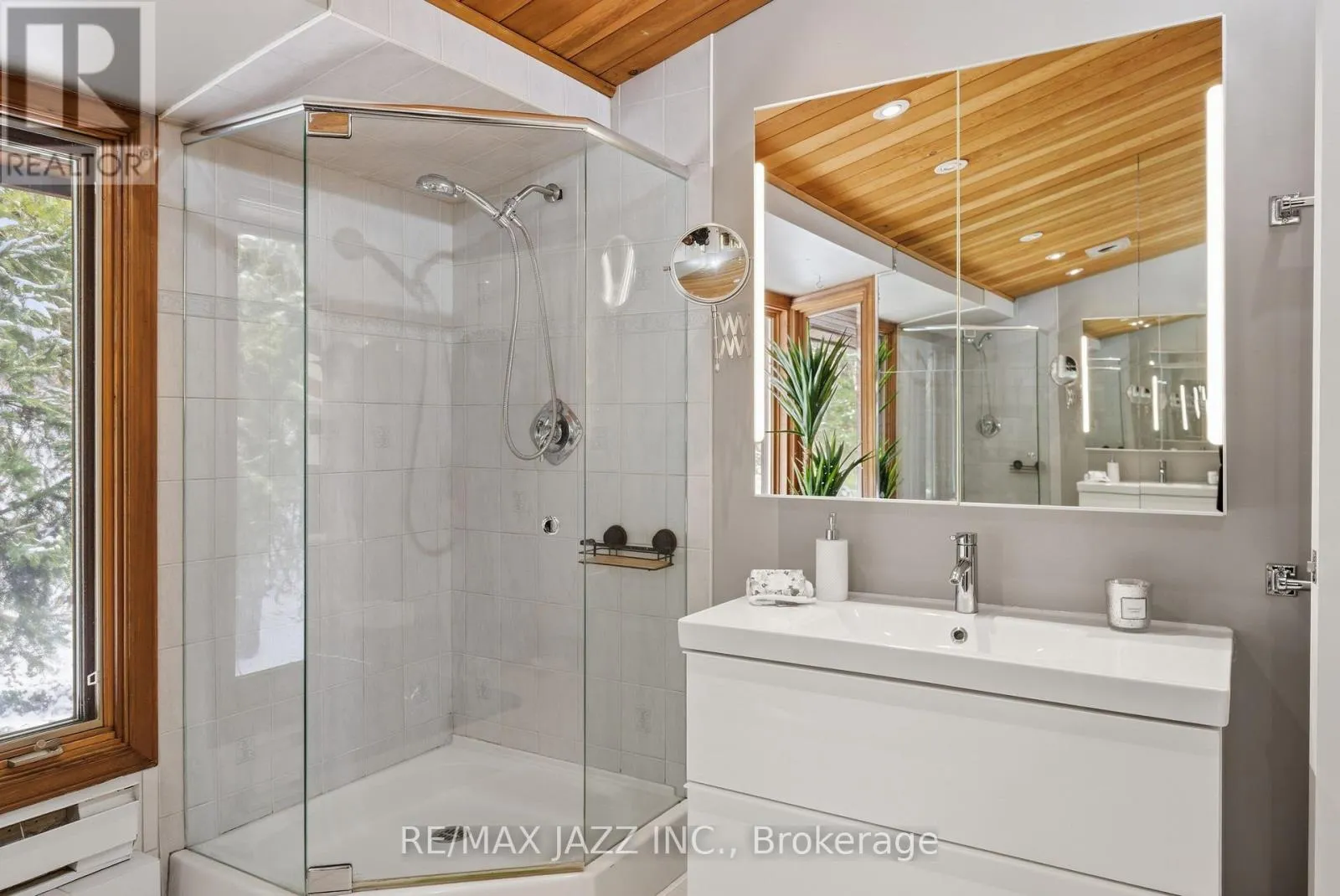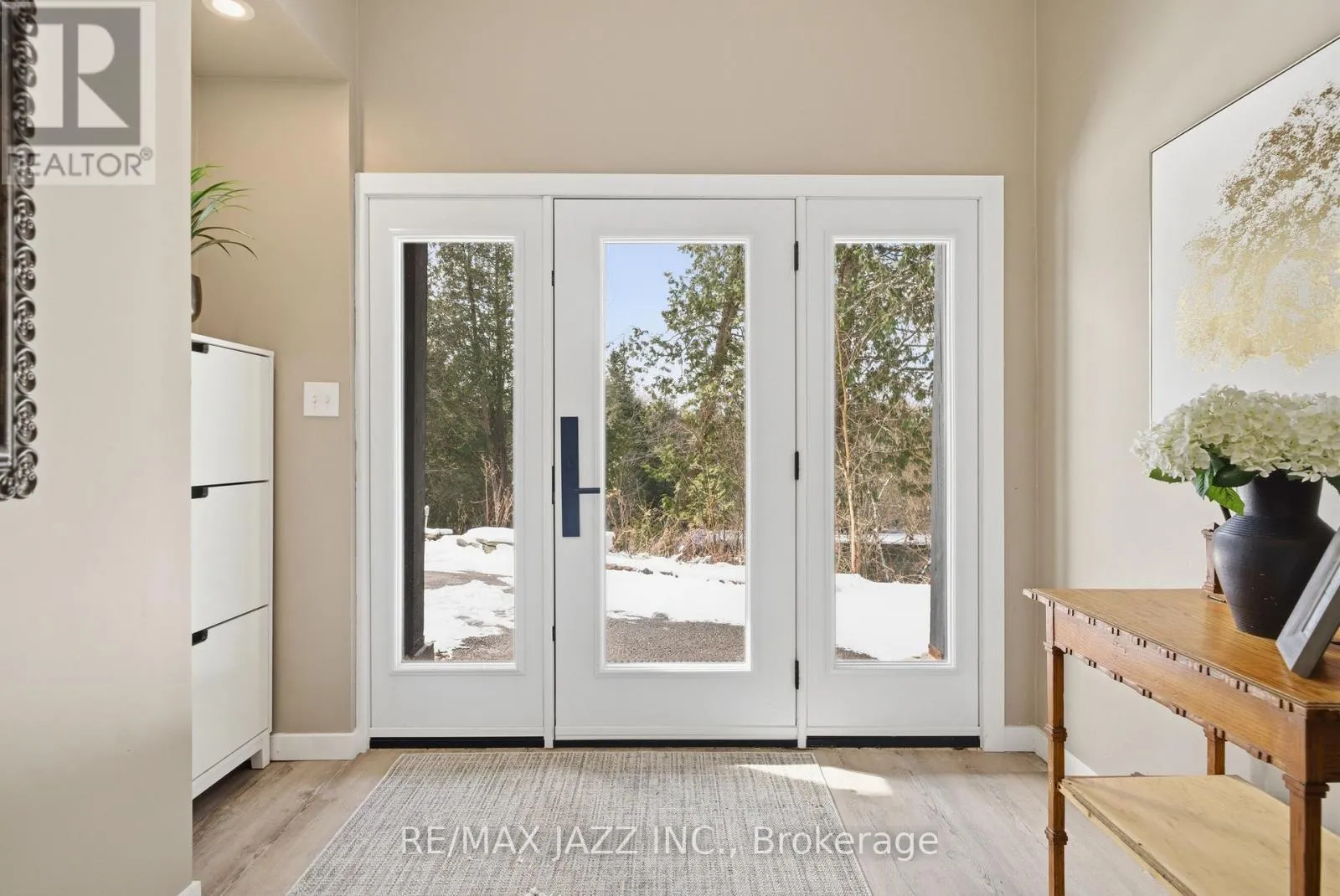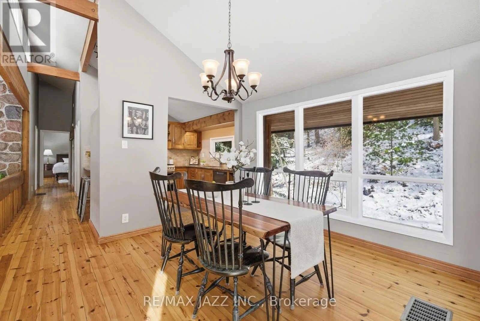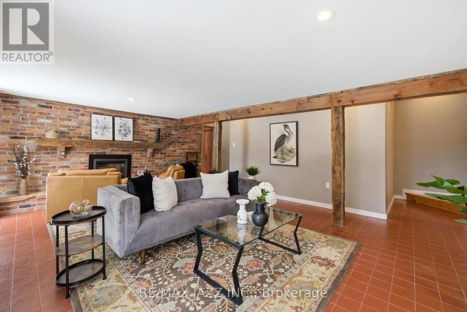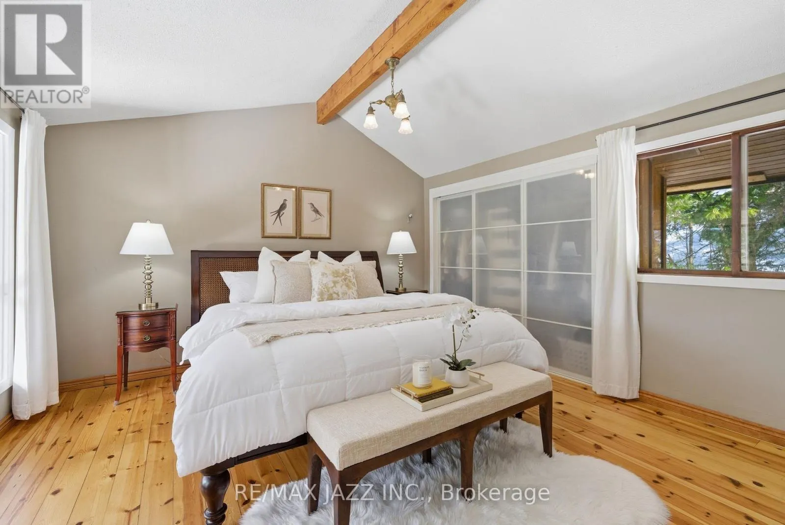 Cross Streets: Concession Rd 8 & Carscadden Rd. ** Directions: exit 115 on Concession Rd 8, Travel East on concession 8. Situated on 40 private acres, this sun-filled home overlooks two beautiful spring-fed ponds and offers the perfect blend of privacy, nature, and functionality. Vaulted ceilings and red pine floors run throughout the main living space, while the updated kitchen overlooks a stunning sunken living room anchored by a wood beams, a stone wall and a wood-burning fireplace. A walk in pantry offers additional storage. The home features three spacious bedrooms, including a primary retreat with vaulted ceilings and a walkout to a private balcony - the perfect place to enjoy peaceful views of the property. The lower level adds incredible versatility and a resort setting with exposed brick, timber beams, an electric fireplace, and a dry sauna with soaker tub. Two separate driveways provide convenient access - one to the main level and another to the lower living area. A standout feature of the property is the separate 40 x 60 ft shop with 200amp service, a drilled well, kitchenette and its own private driveway and separate address - perfect for hobbyists, contractors, or anyone looking for dedicated workspace. Surrounded by mature trees and natural beauty, this stunning property is a true private oasis - ideal for those seeking space, tranquility, and a shop-ready lifestyle. This home is also on the managed forestry program offering reduced property taxes! (id:27476)