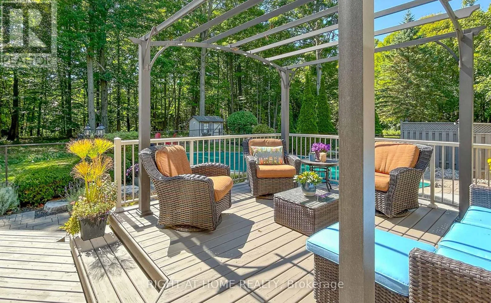 Cross Streets: Pebblestone Rd/Townline Rd N. ** Directions: Townline Rd N to Pebblestone Rd to Timberlane Crt. Escape the ordinary with this breathtaking 1.1 acre parcel located in the heart of Courtice. Prime cul-de-sac address, tucked away the end of the court. Without comparison, this is the most exclusive, executive enclave in Clarington. Cottage living without the drive! --- A perfectly balanced nature retreat with 80 year-old growth trees and direct access to Farwell Creek at the rear creates an immediate sense of privacy and timeless beauty. Experience the serenity of country living , without the rural property travel: *4-km to Hwy-407 *7-km to Hwy-401 *6-km to the planned Courtice GO Station East extension *3-km to amenities including schools, grocery, drug store and major retail chains. Custom, executive-grade quality construction, with varying architectural features including skylights, cathedral and vaulted ceilings throughout many of the rooms. Wake up to calming views of trees and nature from every room. This well maintained property has $240K of recent upgrades. It offers 4 upper, large-size bedrooms from the main area, along with an additional bedroom, bonus room and flexible charming loft space in the adjoining "East-Wing" of the home. This Secondary Flex space presents a versatile games/entertainment room and wet bar with a separate exterior entrance and a private back deck-ideal for entertaining, hosting guests, or for older teenagers and adult kids. Distinguished by its one-of-a-kind parcel and coveted location, Timberlane Court is a true hidden secret. **Remember to bring your hiking shoes to experience the on-site walking trail; ideal for daily exercise and dog walking. (id:27476)