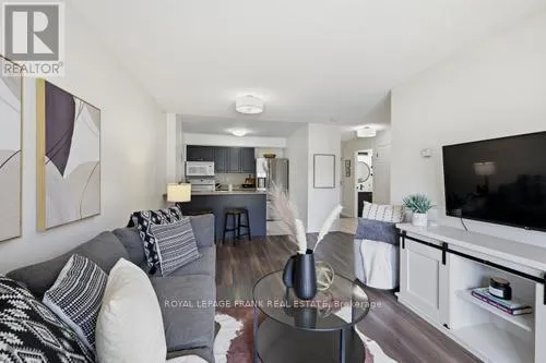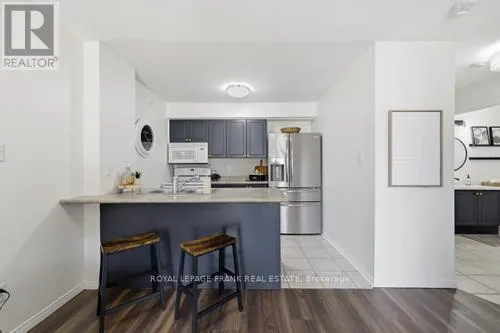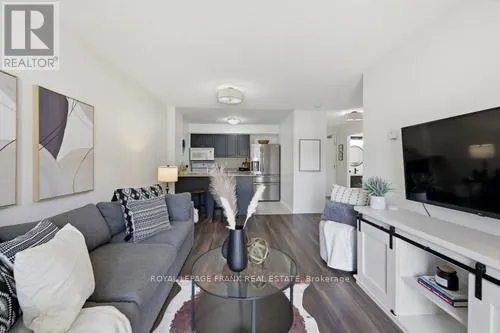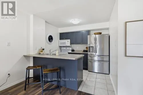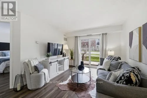 Cross Streets: Bowmanville Ave./Aspen Springs. ** Directions: Bowmanville Ave. to Aspen Springs. Welcome to this sun-drenched, 626-square-foot sanctuary where modern convenience meets effortless urban living. Situated on the main floor with a coveted southern exposure, this unit is bathed in natural light throughout the day, creating a warm and inviting atmosphere. The standout feature of this home is the private walk-out to a large patio with direct street access, providing a seamless transition for your daily routine. Whether you are unloading groceries or heading out for a stroll, you can skip the lobby entirely, enjoying a level of accessibility that is truly rare in condo living. The interior layout is both spacious and functional, headlined by a primary bedroom that offers a peaceful retreat and a walk-in closet. Storage is never an issue here, as the unit is thoughtfully equipped with a large pantry cupboard, a dedicated front hall closet, and the essential convenience of in-suite laundry. Every inch of the floor plan has been optimized to ensure you have plenty of room to breathe while keeping your life organized and clutter-free. Beyond the unit, the building offers amenities including a gym, a quiet library, a party room for entertaining, and an outdoor playground. Located in a prime neighborhood, you are just steps away from local schools, shopping, and transit, and only minutes from the 401 for an easy commute. (id:27476)