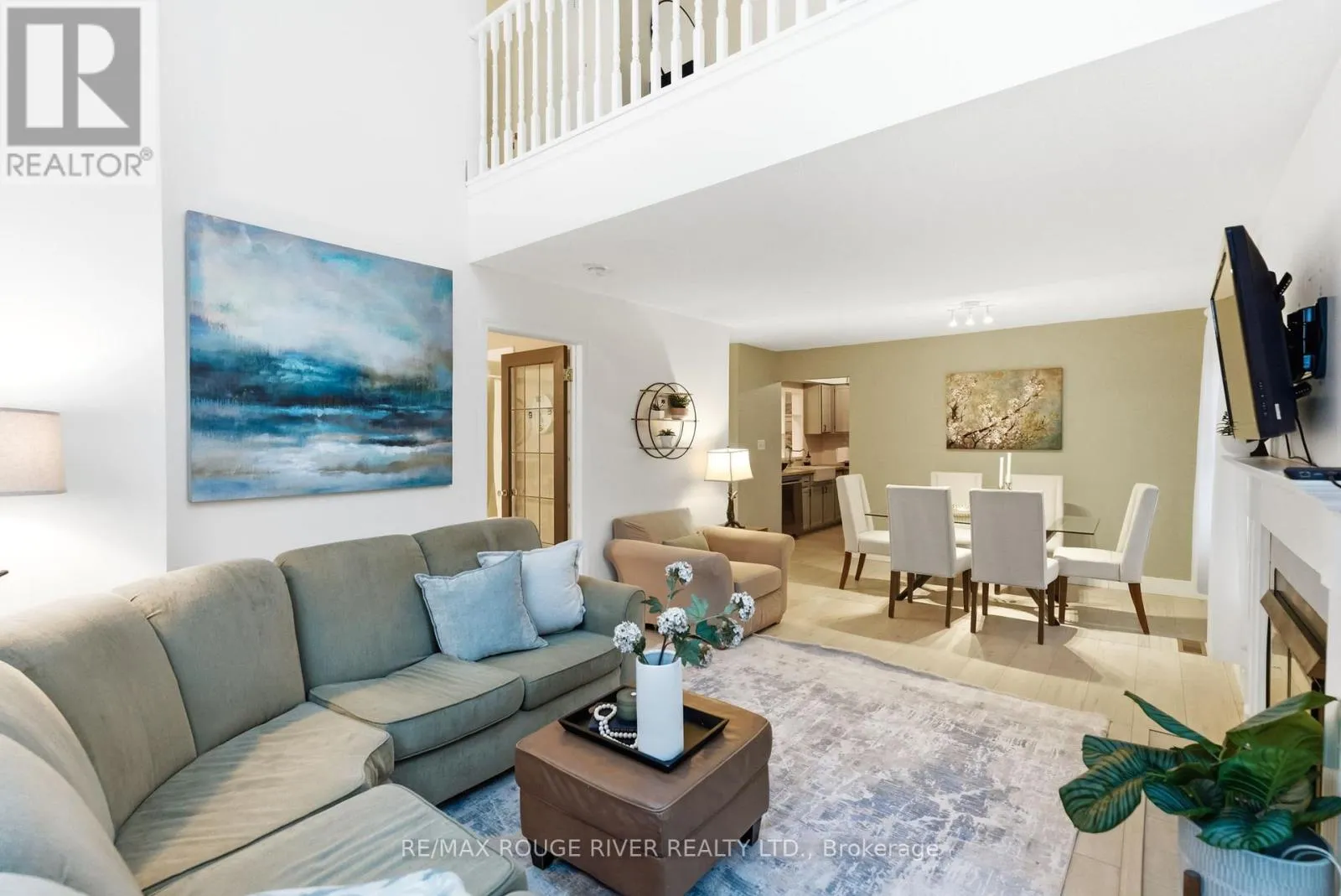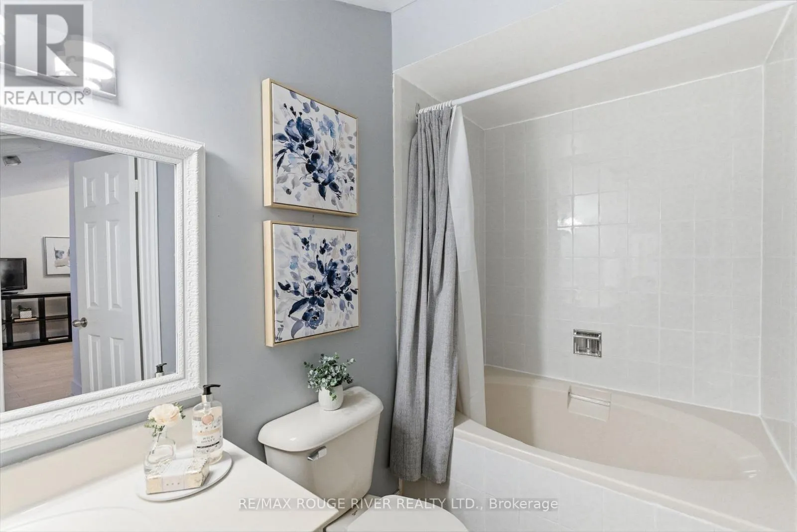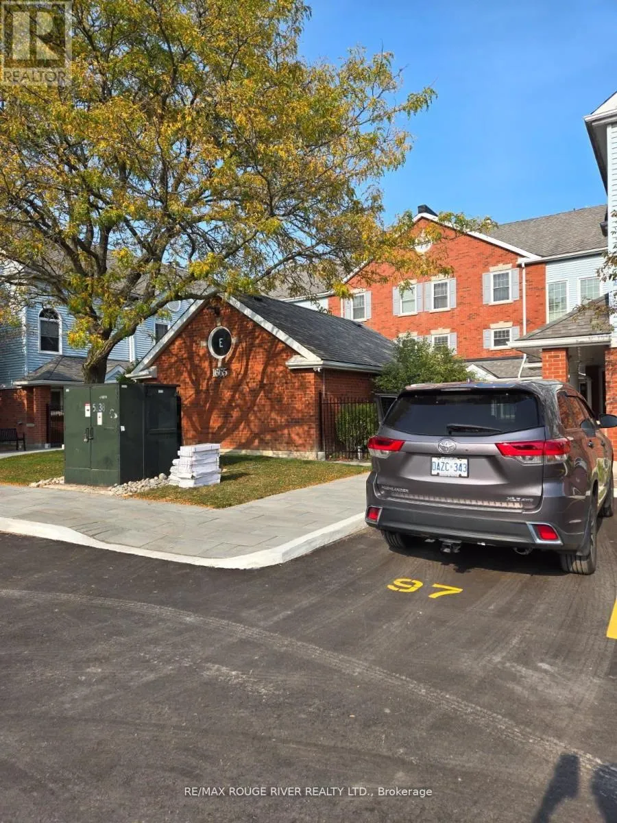 Cross Streets: Nash Rd & Trulls Rd. ** Directions: South East side of Nash & Trulls. Welcome to this bright, updated end-unit stacked condo townhome in sought-after Parkwood Village - flooded with natural light thanks to its premium end-unit position and extra windows throughout. Featuring seamless laminate flooring and new blinds, the main level offers a stylish eat-in kitchen with stainless steel appliances, butcher block counters, farmhouse sink and ample cabinetry. The open dining area flows into a sun-filled living room with vaulted ceilings, skylights, a wood-burning fireplace and Juliette balcony.A spacious bedroom with semi-ensuite completes the main level. Upstairs, the loft-style primary retreat includes a double closet, 4-piece ensuite and convenient in-suite laundry.Enjoy rare privacy with no neighbours above and none on one side, along with abundant natural light that only an end unit can offer. Set in a quiet, pet-friendly community with beautifully landscaped grounds, residents enjoy amenities including a BBQ area, party room, dog run, tennis and pickleball courts, heated car wash, EV charging and ample visitor parking. Includes one premium parking space, with additional spots available for rent. Ideally located steps to schools. Bright, private and perfectly positioned-this one checks all the boxes! (id:27476)