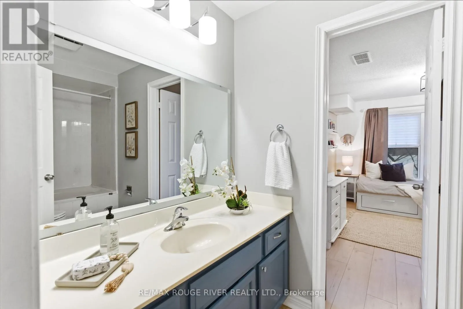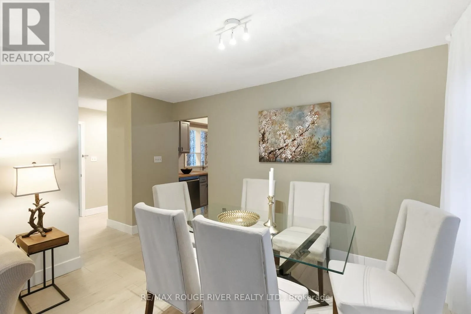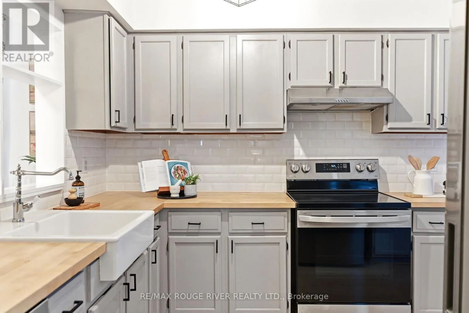 Cross Streets: Nash Rd & Trulls Rd. ** Directions: South East side of Nash & Trulls. Welcome to this bright, updated end-unit stacked condo townhome in sought-after Parkwood Village - flooded with natural light thanks to its premium end-unit position and extra windows throughout. Featuring seamless laminate flooring and new blinds, the main level offers a stylish eat-in kitchen with stainless steel appliances, butcher block counters, farmhouse sink and ample cabinetry. The open dining area flows into a sun-filled living room with vaulted ceilings, skylights, a wood-burning fireplace and Juliette balcony.A spacious bedroom with semi-ensuite completes the main level. Upstairs, the loft-style primary retreat includes a double closet, 4-piece ensuite and convenient in-suite laundry.Enjoy rare privacy with no neighbours above and none on one side, along with abundant natural light that only an end unit can offer. Set in a quiet, pet-friendly community with beautifully landscaped grounds, residents enjoy amenities including a BBQ area, party room, dog run, tennis and pickleball courts, heated car wash, EV charging and ample visitor parking. Includes one premium parking space, with additional spots available for rent. Ideally located steps to schools. Bright, private and perfectly positioned-this one checks all the boxes! (id:27476)