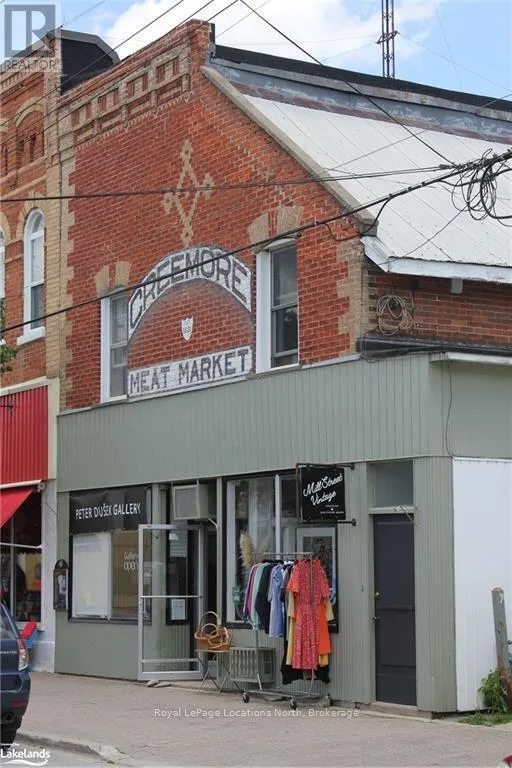 Mill Street South to property on East side, signs on Downtown Creemore investment opportunity! Two buildings on large lot on the main street of the village. The "Creemore Meat Market" building offers 2 retail spaces and an apartment on the second floor with separate entrance and balcony overlooking the backyard with assigned parking space. The second building is an apartment building to the south of the Meat Market which offers 5 apartments. All apartments have parking spaces. There are two lane entrances to the back of both buildings from Mill Street. All units in both buildings are fully occupied. Call L/B for further details. (id:27476)