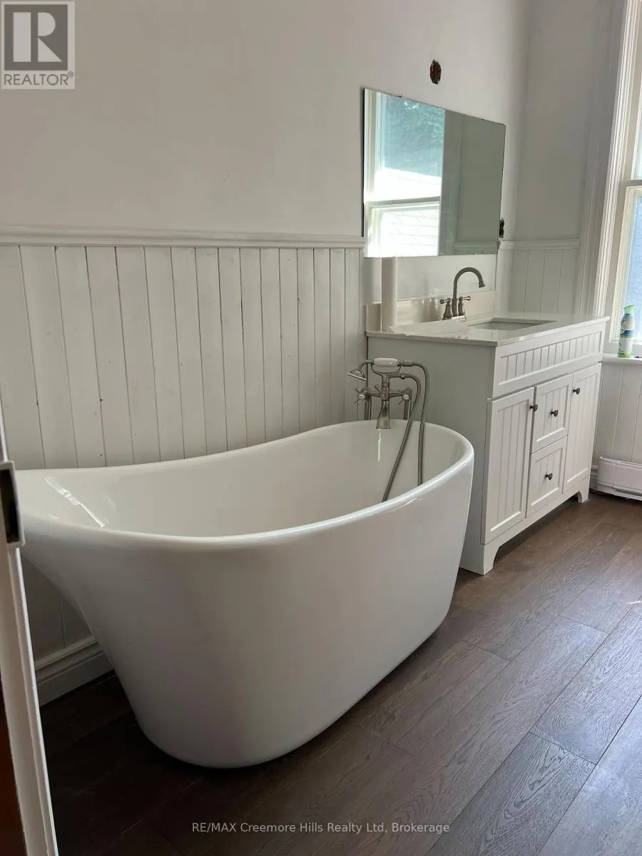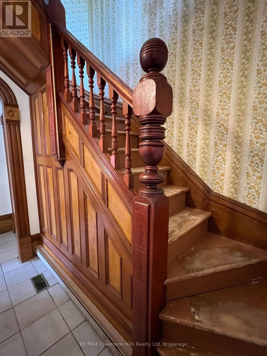 Cross Streets: Mill Street and Wellington St. East. ** Directions: Airport road, west on County rd 9, south on Mill street to Wellington street east. Welcome to 3 Wellington Street East, nestled in the heart of Creemore's storybook village in Ontario! This grand Edwardian red brick beauty sits proudly on a charming, tree-lined street, on a private 66 ft x 160 ft lot, just a short walk from downtown Creemore. Homes like this are enchanting especially with its vintage 20 ft x 24 ft, barn with 3 floors and the original horse stalls on the lower level, gracing the backyard. Step inside and you'll find three bedrooms upstairs, plus a couple more tucked away on the third floor. Two bathrooms, along with a kitchen that connects to a mudroom/laundry room, leading right out to the deck. The homes splendor doesn't stop there a grand staircase, stained glass windows, pocket doors, bay windows, and stunning oak and pine hardwood floors. With 14-inch baseboards, original doors, transom lights, roomy bedroom closets, and lofty ceilings over 9 feet on the main floor, this red brick classic is a real showstopper. Enjoy the wrap-around front porch for some breezy relaxation. It's a rare chance to revel in untouched architectural artistry in a lovingly preserved home built circa 1900. Located in the heart of year round recreation, close to Georgian bay, The blue Mountains, Wasaga Beach and easy commute to Barrie and the GTA. (id:27476)