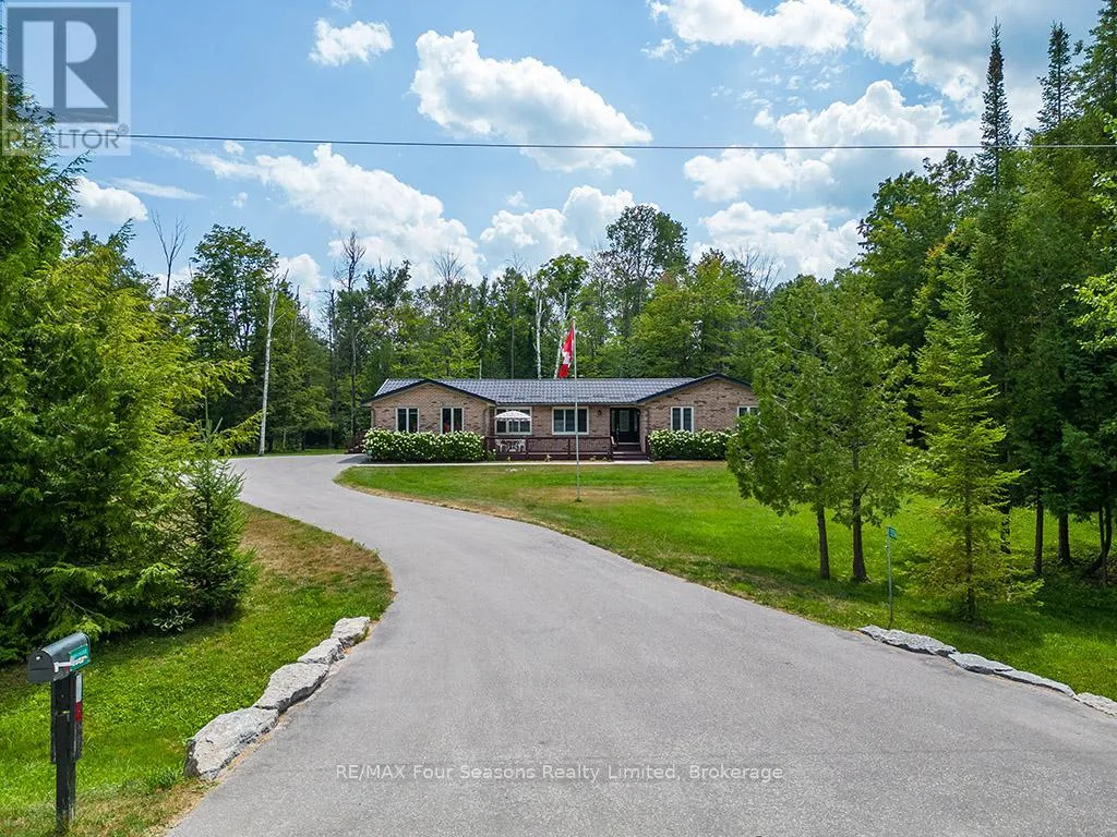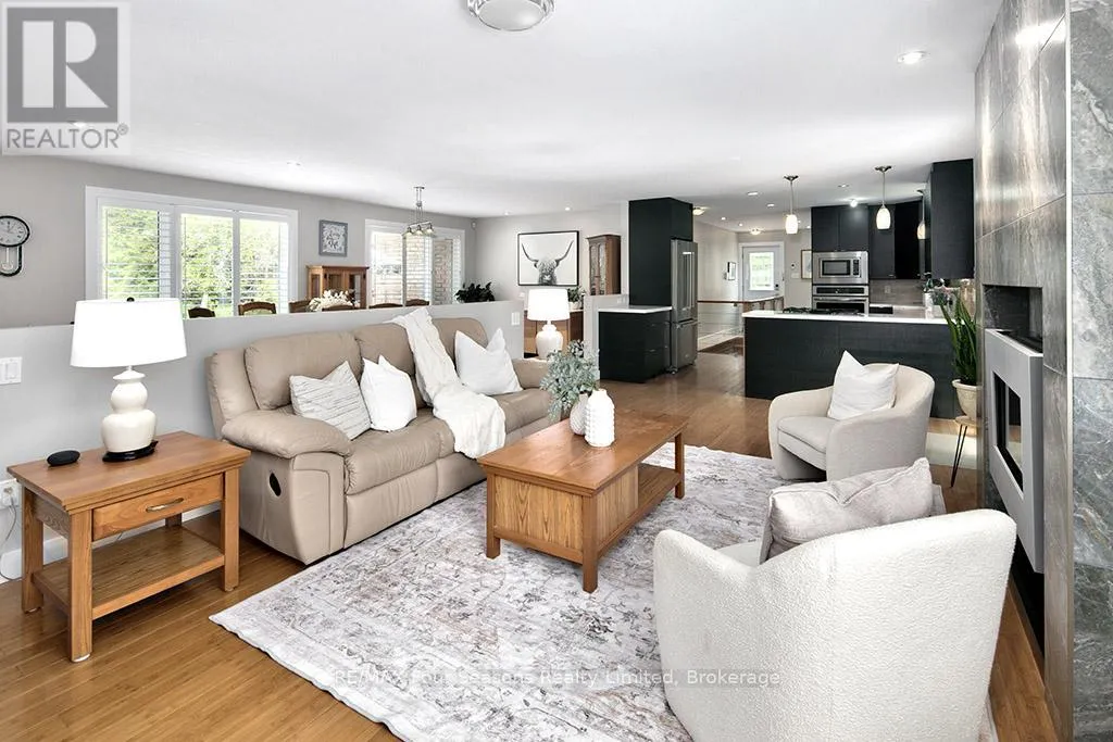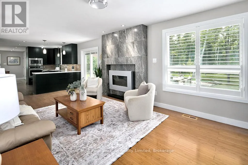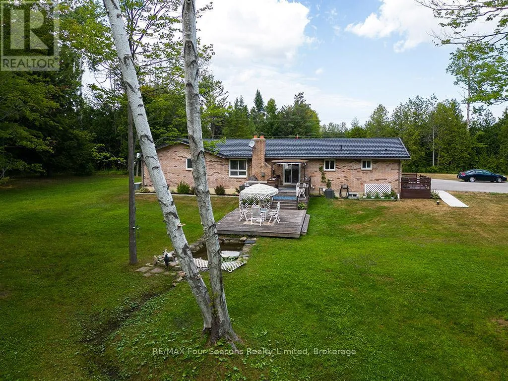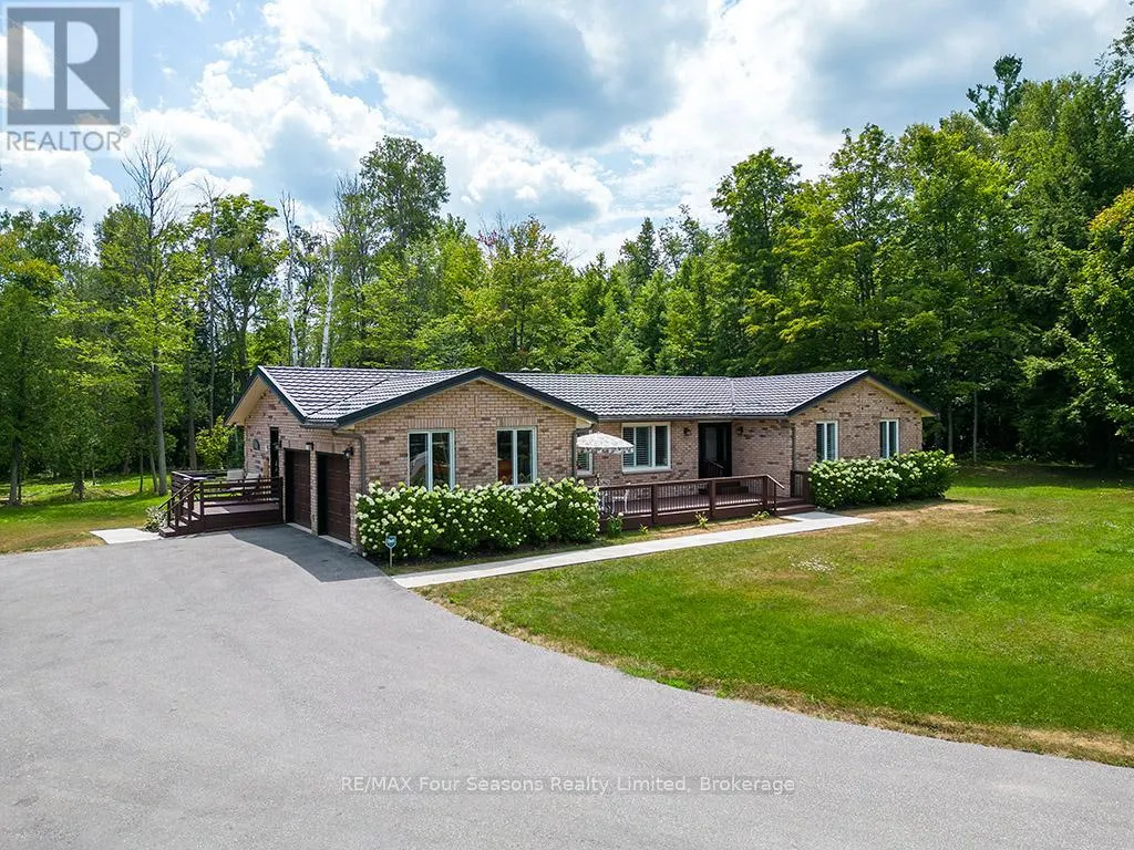 Cross Streets: Switzer St. & Conc. Rd 5. ** Directions: Cty Rd 9 to Switzer St. to Conc. Rd 5. Welcome to this beautifully updated, open-concept ranch bungalow offering over 2,800 sq. ft. of finished living space. Located on a peaceful and private 1.72-acre country lot surrounded by mature trees, this home balances space, comfort, and privacy with modern convenience. Move right in and enjoy the many upgrades: newer kitchen & baths, cement walkways (2022), metal roof (2021), paved driveway (2021), furnace & AC (2019), generator (2019), 200 amp electrical panel, several newer windows and doors (2020), and added attic insulation (2020). Inside, sunlight pours into the open-concept living, dining, and kitchen area, creating a bright, welcoming atmosphere. A gas fireplace anchors the space with modern style and cozy warmth. The sizeable primary bedroom offers a relaxing retreat, complete with a beautifully updated 4-piece ensuite and contemporary free-standing tub. Two additional bedrooms plus both a 4-piece and 2-piece bath make for a functional main floor layout, perfect for those looking for a condo alternative with the ease of one-level living. The fully finished basement expands your options, featuring a wet bar, new electric fireplace, and ample space for a games room, theatre, or man cave, with the flexibility to add a fourth bedroom and an extra bathroom, if desired. Step outside to your private, treed backyard and two-tier deck, ideal for entertaining or quiet evenings under the stars. All this, just 15 to 20 minutes to Stayner, Wasaga Beach, or Angus, and under 30 minutes to Barrie. Come and enjoy country living at its best. (id:27476)
