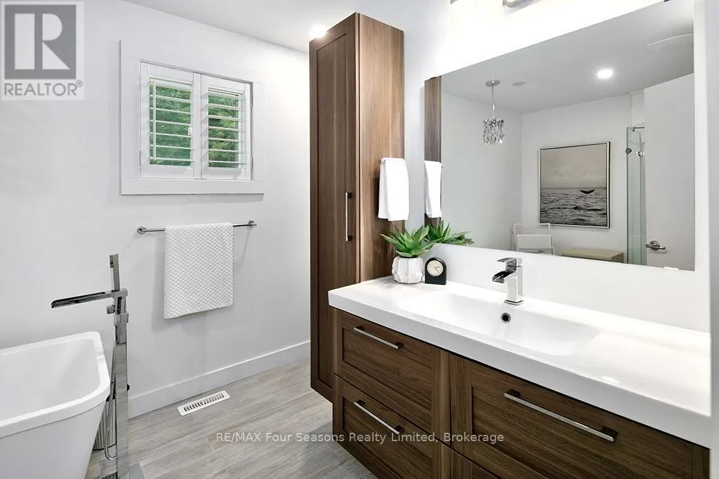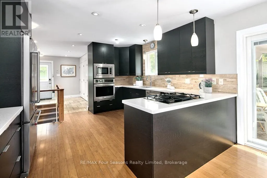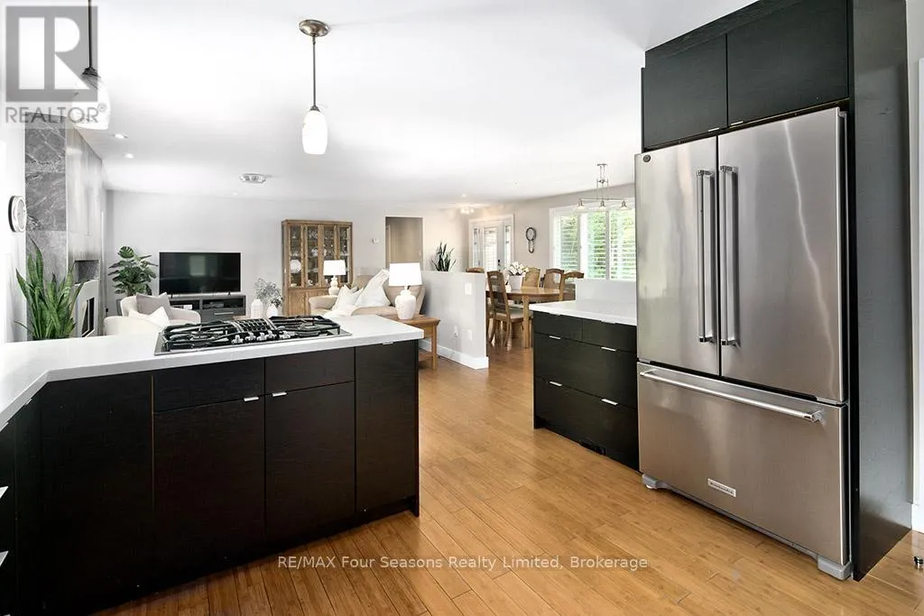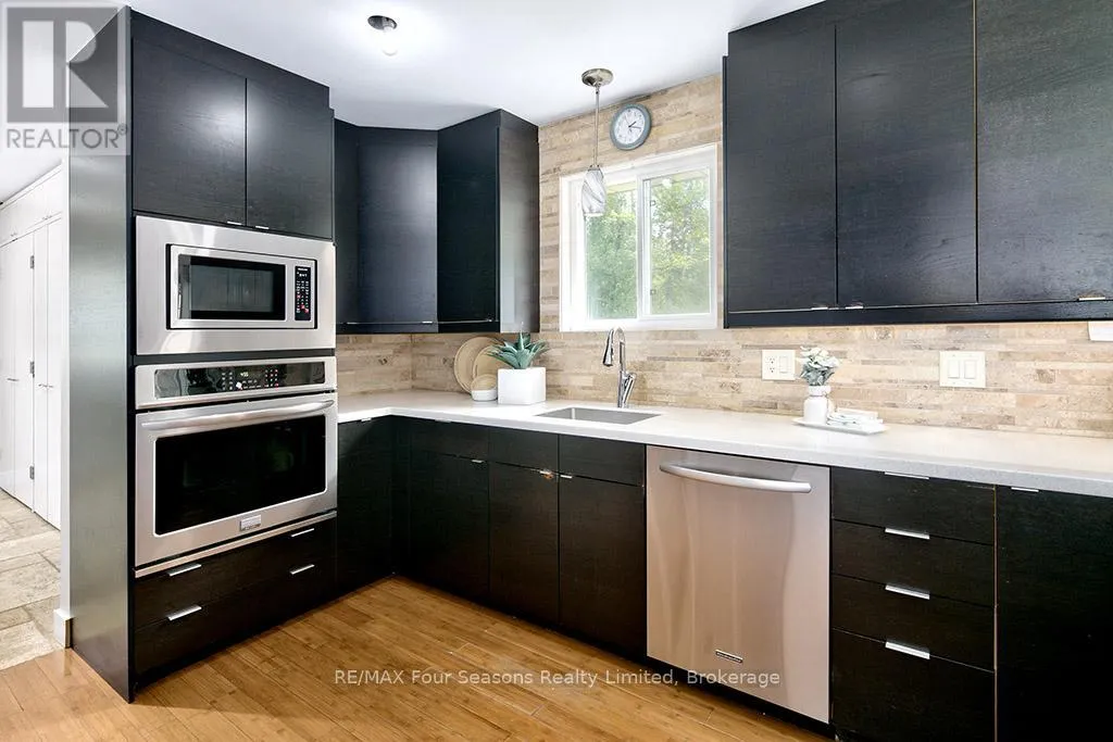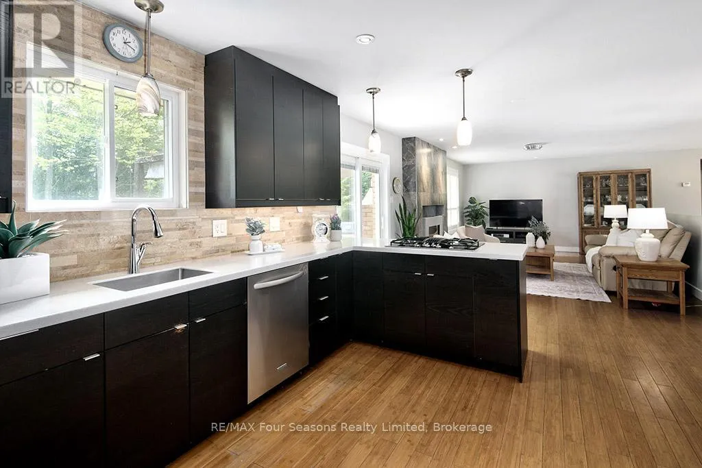 Cross Streets: Switzer St. & Conc. Rd 5. ** Directions: Cty Rd 9 to Switzer St. to Conc. Rd 5. Welcome to this beautifully updated, open-concept ranch bungalow offering over 2,800 sq. ft. of finished living space. Located on a peaceful and private 1.72-acre country lot surrounded by mature trees, this home balances space, comfort, and privacy with modern convenience. Move right in and enjoy the many upgrades: newer kitchen & baths, cement walkways (2022), metal roof (2021), paved driveway (2021), furnace & AC (2019), generator (2019), 200 amp electrical panel, several newer windows and doors (2020), and added attic insulation (2020). Inside, sunlight pours into the open-concept living, dining, and kitchen area, creating a bright, welcoming atmosphere. A gas fireplace anchors the space with modern style and cozy warmth. The sizeable primary bedroom offers a relaxing retreat, complete with a beautifully updated 4-piece ensuite and contemporary free-standing tub. Two additional bedrooms plus both a 4-piece and 2-piece bath make for a functional main floor layout, perfect for those looking for a condo alternative with the ease of one-level living. The fully finished basement expands your options, featuring a wet bar, new electric fireplace, and ample space for a games room, theatre, or man cave, with the flexibility to add a fourth bedroom and an extra bathroom, if desired. Step outside to your private, treed backyard and two-tier deck, ideal for entertaining or quiet evenings under the stars. All this, just 15 to 20 minutes to Stayner, Wasaga Beach, or Angus, and under 30 minutes to Barrie. Come and enjoy country living at its best. (id:27476)