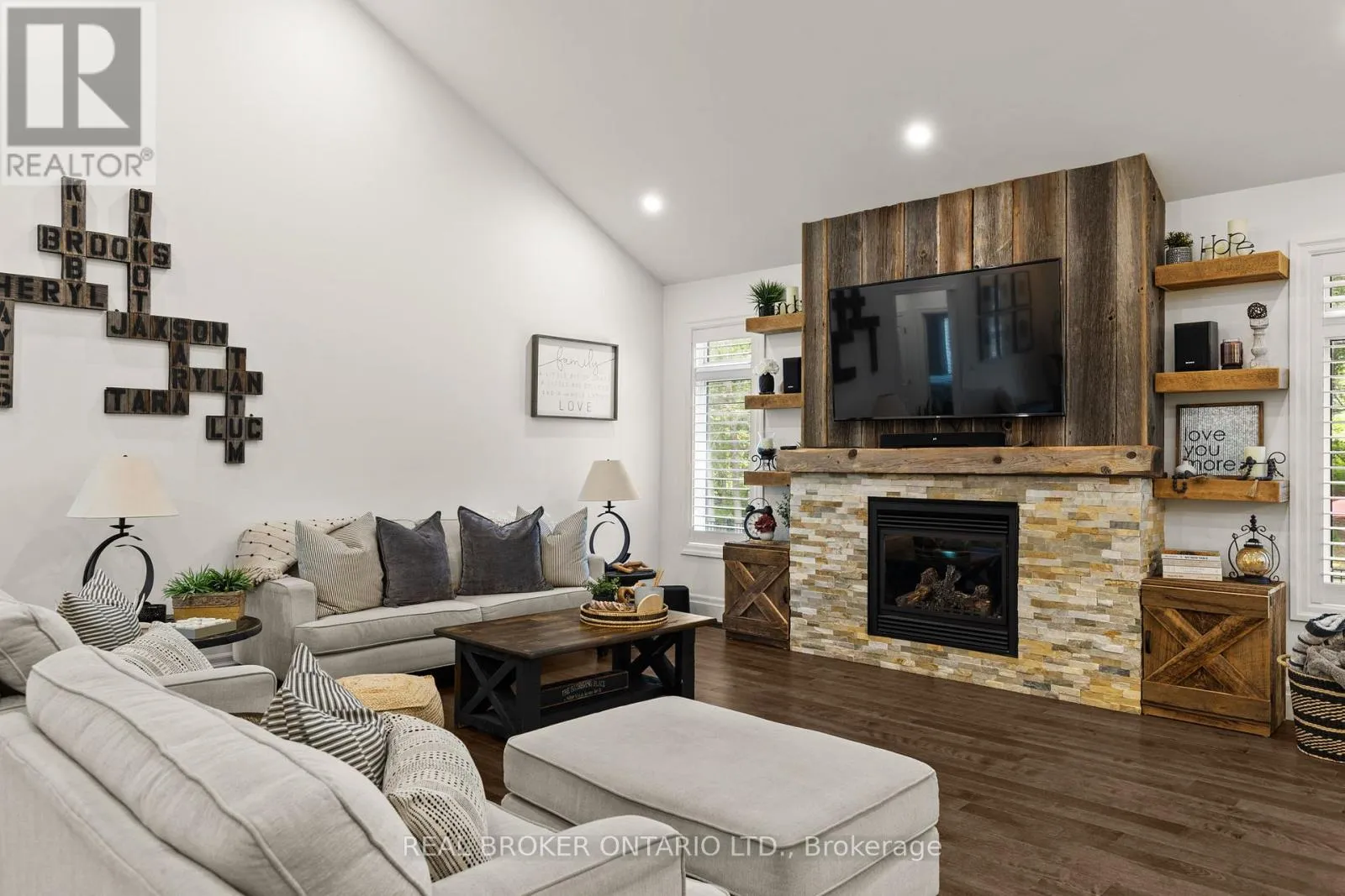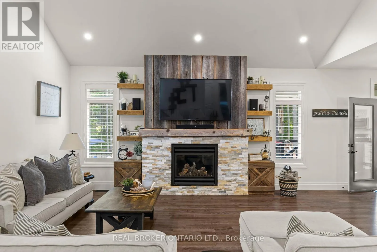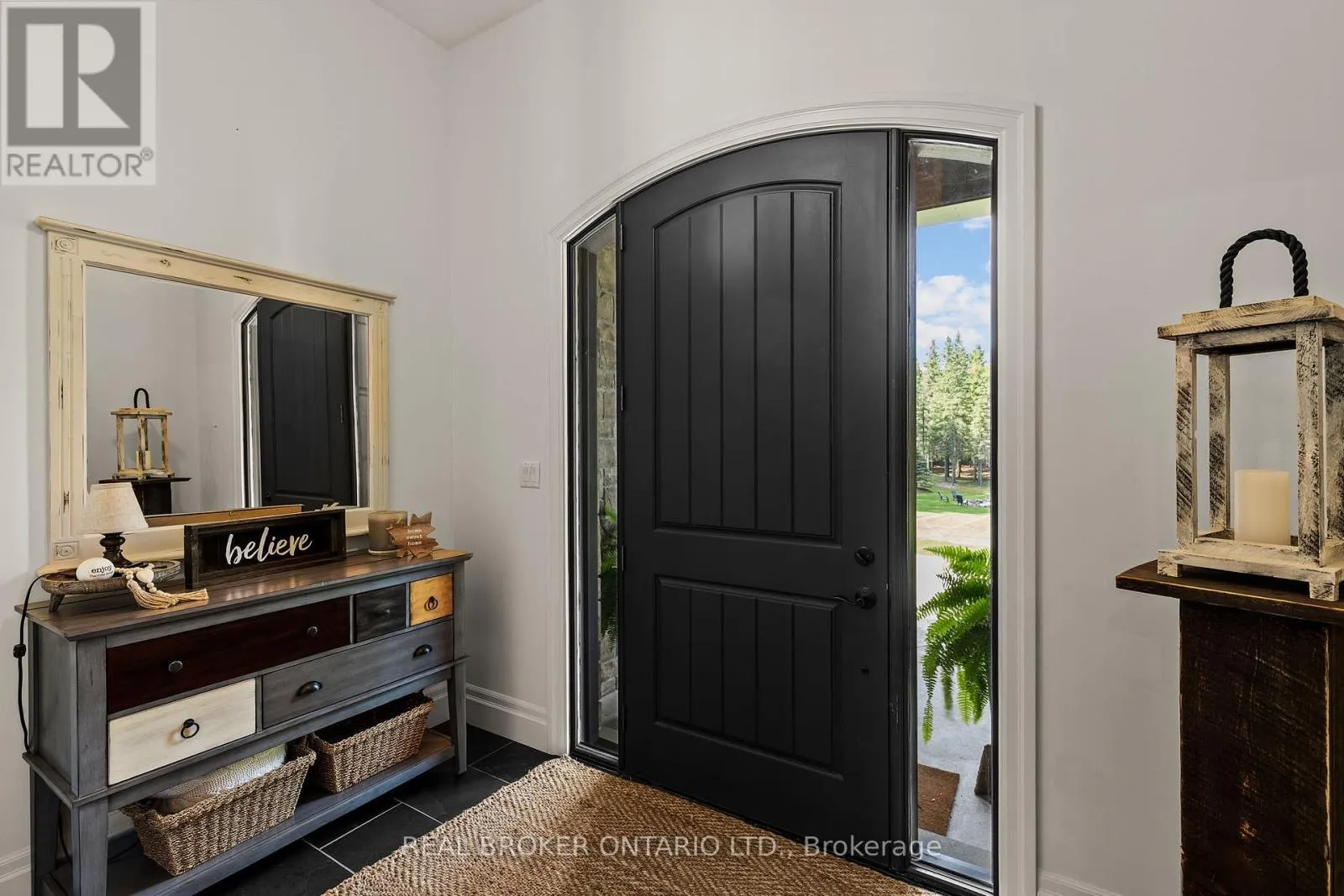Cross Streets: HWY 124 x Sydenham Trail. ** Directions: HWY 124 to Sydenham Trail. Your Private Resort, Every Day of the Year. Tucked away on 2.5 acres of mature trees and rolling landscape, this custom-built home isn't just a place to live - its a lifestyle. From the moment you arrive, youll feel the peace and privacy of country living, all while being steps from walking trails and minutes from town conveniences. Inside, soaring vaulted ceilings and a floor-to-ceiling propane fireplace set the tone for gatherings with family and friends. The open-concept design flows seamlessly from the living and dining area into a chefs kitchen with quartz countertops, extended cabinetry, stainless steel appliances, and a striking glass backsplash. Every detail has been crafted for both function and style. The main floor offers four bedrooms, including a primary suite designed as a true retreat, complete with a spa-like 5-piece ensuite and walk-in closet. The finished lower level with private garage entrance extends the lifestylewhether you need a guest suite, home gym, or office. A 5th bedroom, 3-pc bath, and expansive mudroom with storage make the space versatile and practical. Step outside and discover why this property is truly exceptional. A saltwater pool glistens in the sun, paired with a hot tub and covered deck that invite you to host summer parties, quiet evening dinners, or simply unwind after a long day. With walking trails at your doorstep and a backyard that feels like a private resort, this home delivers a lifestyle most only dream of. Luxury, privacy, and connection to nature this home is more than a residence. Its where family memories are made, friends gather, and every day feels like a getaway. (id:27476)