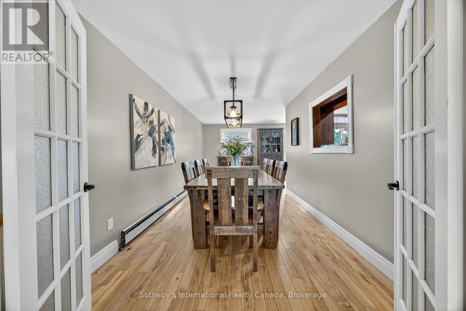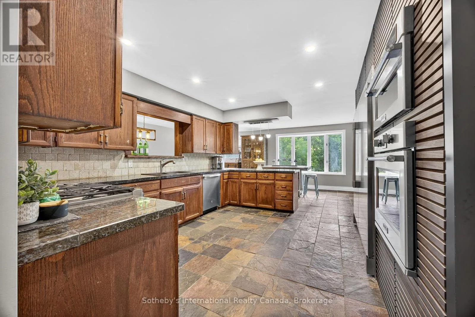 Cross Streets: Mill St and Caroline St W. ** Directions: Directions. Freshly priced to highlight its value, this Creemore property offers more space, flexibility, and potential than first meets the eye. This much larger-than-it-looks 5-level home sits on a private 1-acre lot, offering space, versatility, and small-town charm. With 4 bedrooms, 3 bathrooms, and multiple living areas, its ideal for multi-generational living and even has potential for an in-law suite. The main floor is warm and inviting, featuring a cozy gas fireplace and an updated eat-in kitchen with built-in fridge/freezer, wall oven, and a spacious dining area. Large windows throughout the home fill each level with natural light, creating bright and welcoming spaces. Upstairs, the primary suite feels more like a private apartment an impressive 800 sq. ft. retreat with built-ins, ensuite, laundry, a private deck, and plumbing ready for a coffee bar. Three additional bedrooms share a full bath, making it perfect for family living. The lower-level family room is bright and airy, with a walkout to the backyard and a double-sided stone fireplace (currently non-operational, but ready to be restored). Another level offers a rec room/office, 2-piece bath, and additional laundry flexible space for work, hobbies, or guests. Outdoors, mature trees frame a serene backyard oasis, perfect for entertaining, stargazing, or giving kids and pets room to roam. A heated oversized double garage with workshop space and 220-volt service provides room for projects, toys, and tools. With its generous layout, prime location, and endless potential, this property is ready for the handyman, hobbyist, or growing family to make it their own. All this, just a short stroll from Creemores shops, cafés, and restaurants. (id:27476)