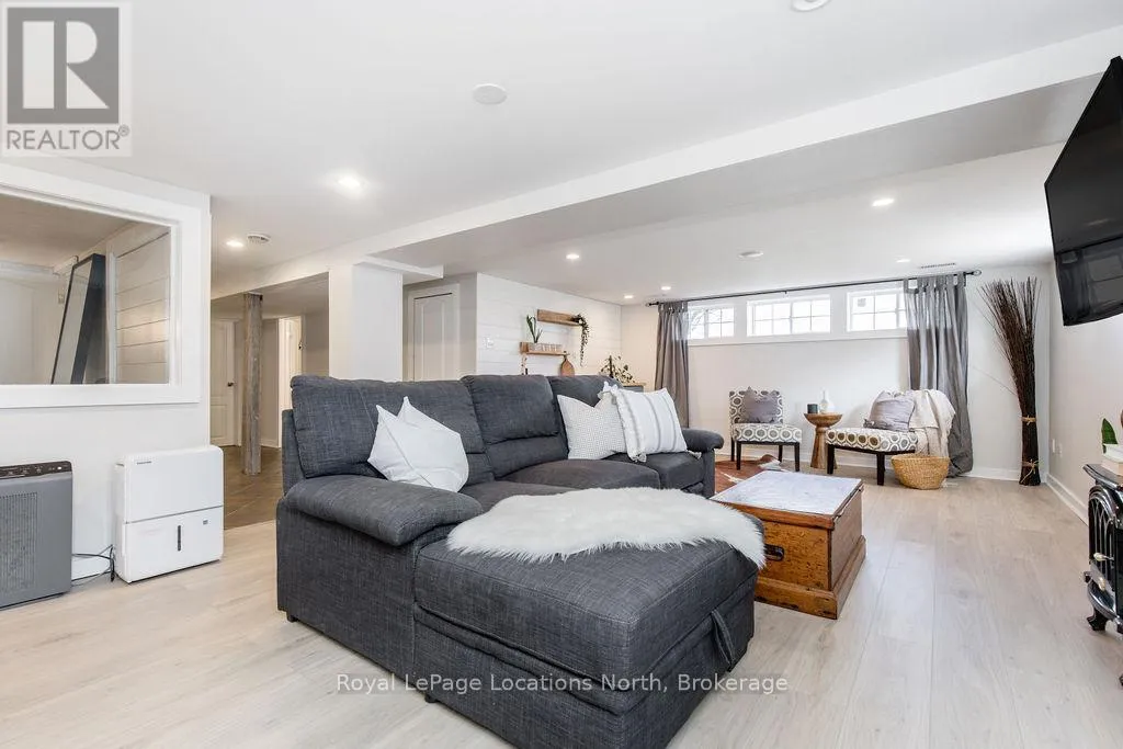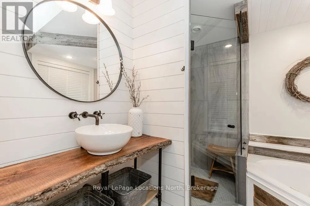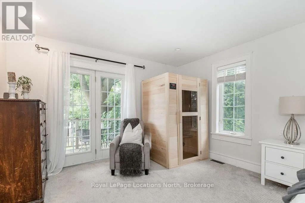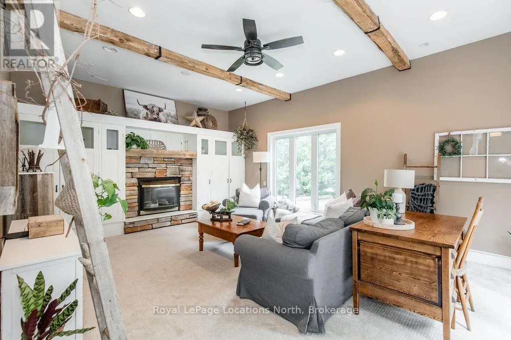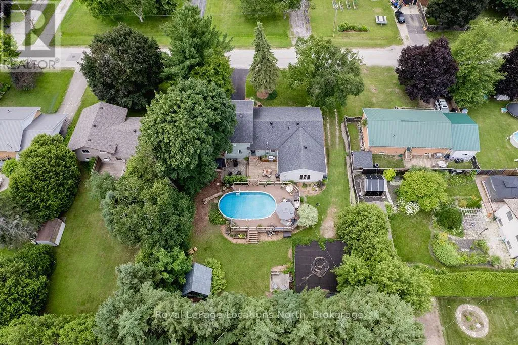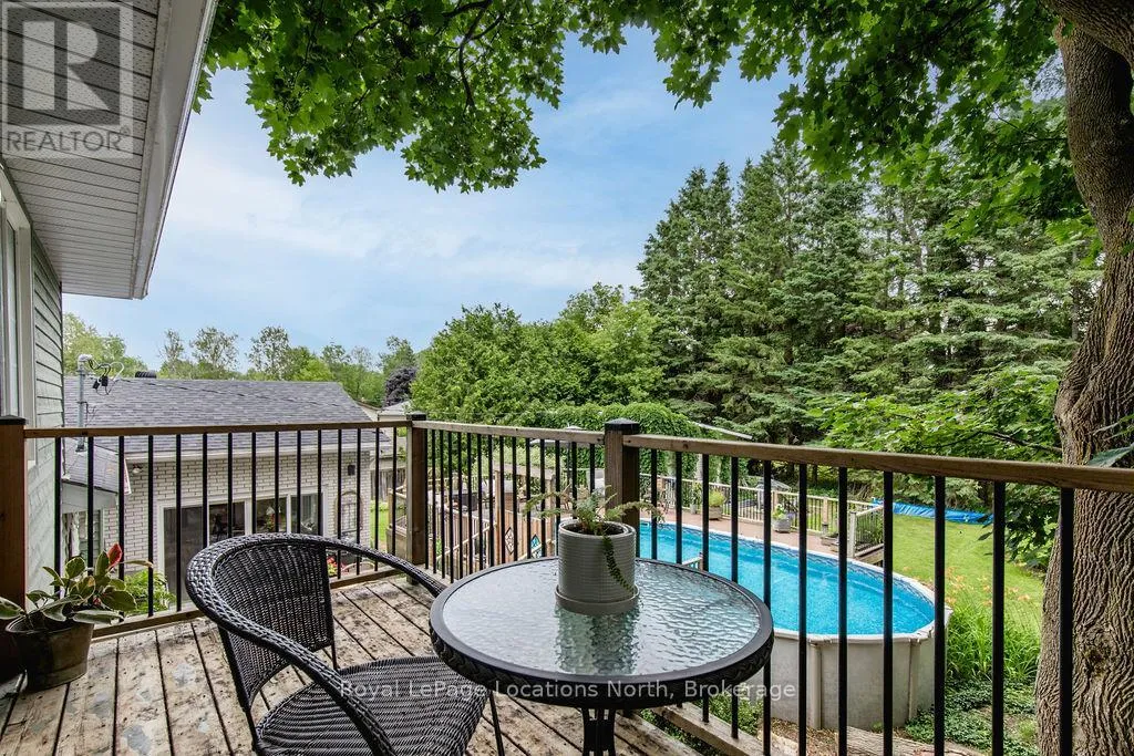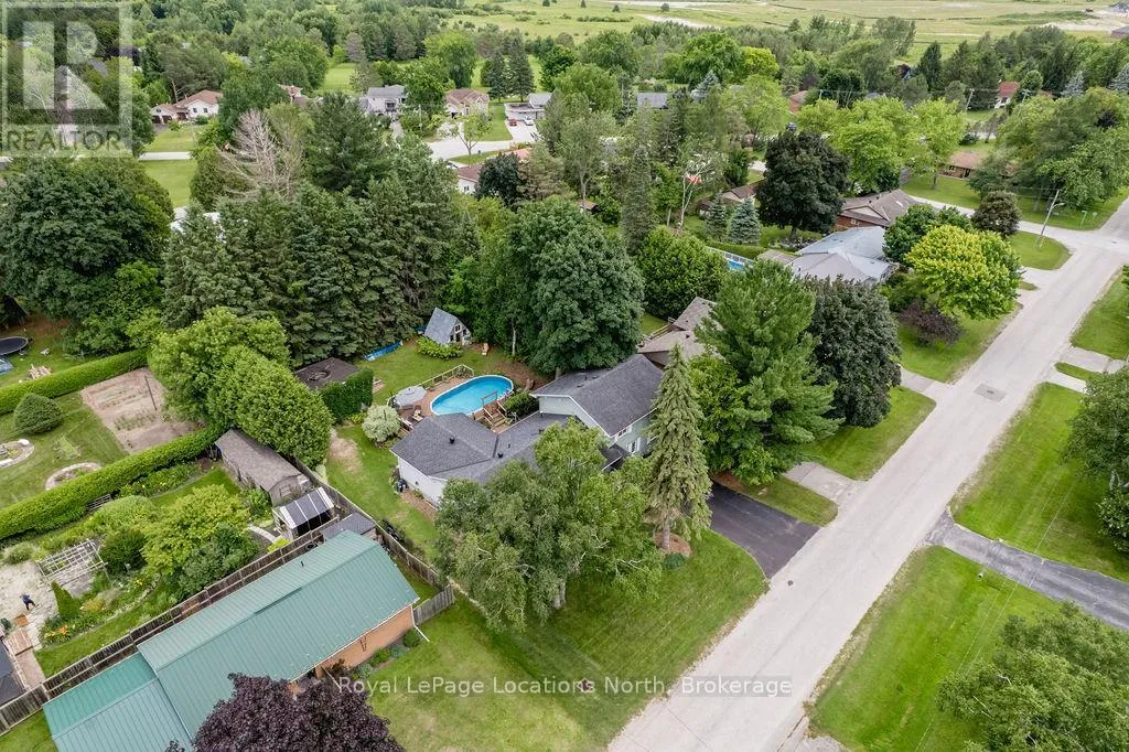 HWY 26 TO STAYNER (S) ON HURON SOUTH HURON MEADOWS TO JANE DETACHED SHOP + SECOND DRIVEWAY. In Law capability. Welcome to this charming piece of paradise in the heart of Stayner. Nestled on a PRIVATE 93' x 158' lot surrounded by mature trees, this beautifully updated 4-bedroom, 4-bathroom home offers exceptional space, comfort, and privacy. The backyard is an entertainers dream featuring an above-ground pool with a large composite deck, hot tub, outdoor kitchen, dining area, lounging zones, and a cedar sauna. A cozy she shed adds the perfect escape for quiet moments. One of the standout features is the detached oversized garage/shop with soaring ceilings, hydro, and its own driveway is deal for a workshop, home business, or extra storage. There's also ample room to park boats, trailers, or multiple vehicles. Inside, the home impresses with a stylish front mudroom/laundry with barn door, two bedrooms, and a full bathroom on the entry level. The main floor offers a spacious dining area with room for a harvest table, a classic kitchen with quartz counters, farmhouse sink, breakfast bar, and stainless steel appliances, along with a large living room and sunken family room with vaulted ceilings, gas fireplace, built-ins, and walkout to the backyard. The primary suite includes a Juliet balcony, 4-piece ensuite, and a 2024 custom closet system. The lower level adds even more living space with a rec room, new wet bar with wine fridge and butcher block counters, a 3-piece bath, and an exercise room across from the sauna. Additional highlights include an RO water system, 2015 AC and furnace, extra attic insulation, built-in sound system, and a full renovation completed in 2002. Looking for a unique home that is meticulous- this is the one! (id:27476)