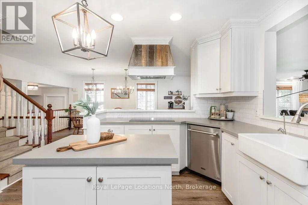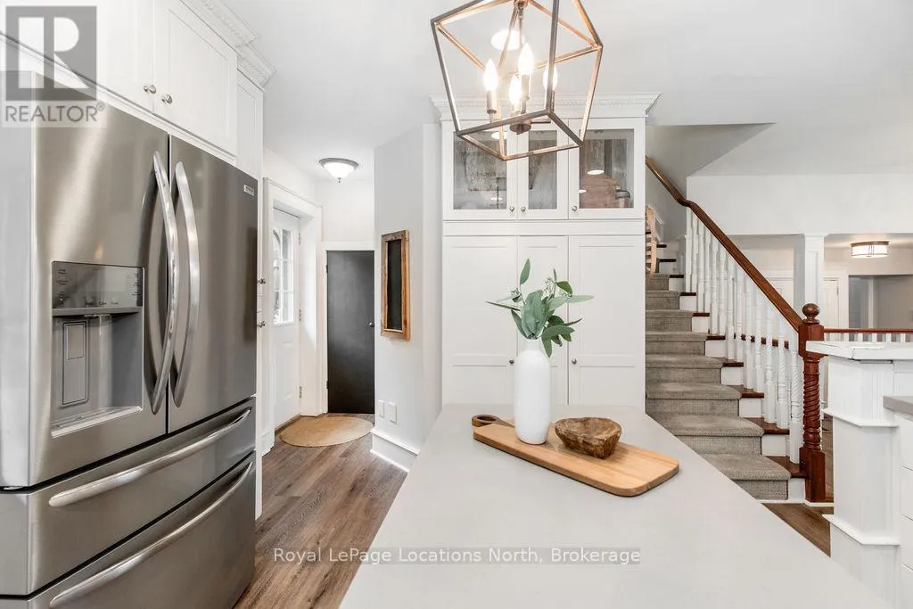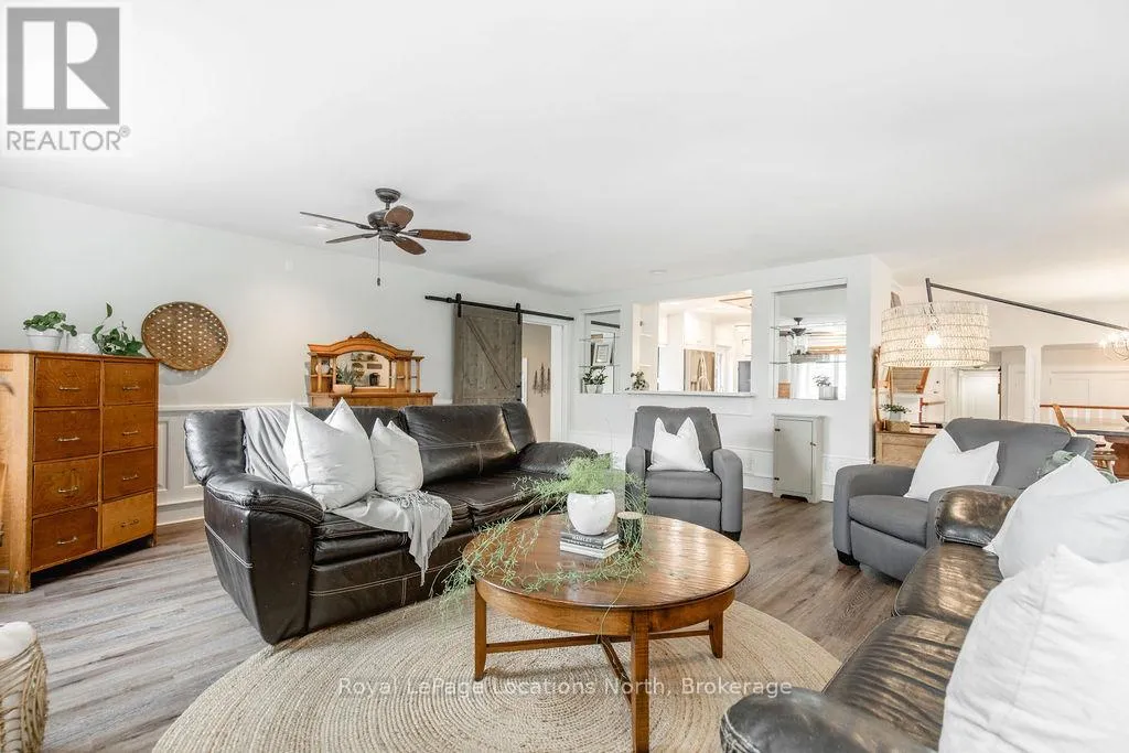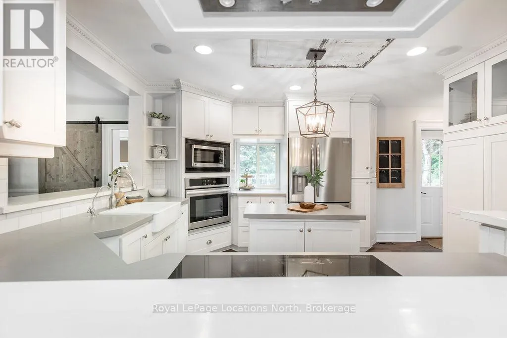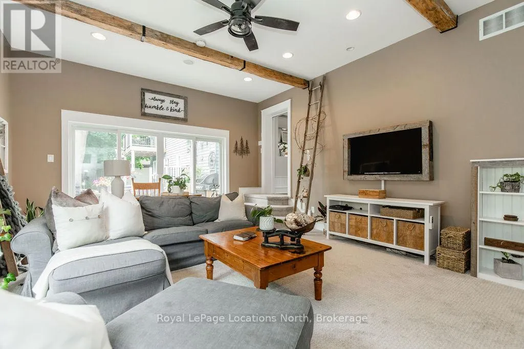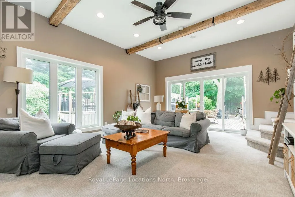 HWY 26 TO STAYNER (S) ON HURON SOUTH HURON MEADOWS TO JANE DETACHED SHOP + SECOND DRIVEWAY. In Law capability. Welcome to this charming piece of paradise in the heart of Stayner. Nestled on a PRIVATE 93' x 158' lot surrounded by mature trees, this beautifully updated 4-bedroom, 4-bathroom home offers exceptional space, comfort, and privacy. The backyard is an entertainers dream featuring an above-ground pool with a large composite deck, hot tub, outdoor kitchen, dining area, lounging zones, and a cedar sauna. A cozy she shed adds the perfect escape for quiet moments. One of the standout features is the detached oversized garage/shop with soaring ceilings, hydro, and its own driveway is deal for a workshop, home business, or extra storage. There's also ample room to park boats, trailers, or multiple vehicles. Inside, the home impresses with a stylish front mudroom/laundry with barn door, two bedrooms, and a full bathroom on the entry level. The main floor offers a spacious dining area with room for a harvest table, a classic kitchen with quartz counters, farmhouse sink, breakfast bar, and stainless steel appliances, along with a large living room and sunken family room with vaulted ceilings, gas fireplace, built-ins, and walkout to the backyard. The primary suite includes a Juliet balcony, 4-piece ensuite, and a 2024 custom closet system. The lower level adds even more living space with a rec room, new wet bar with wine fridge and butcher block counters, a 3-piece bath, and an exercise room across from the sauna. Additional highlights include an RO water system, 2015 AC and furnace, extra attic insulation, built-in sound system, and a full renovation completed in 2002. Looking for a unique home that is meticulous- this is the one! (id:27476)
