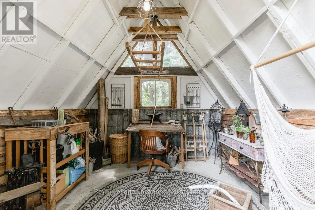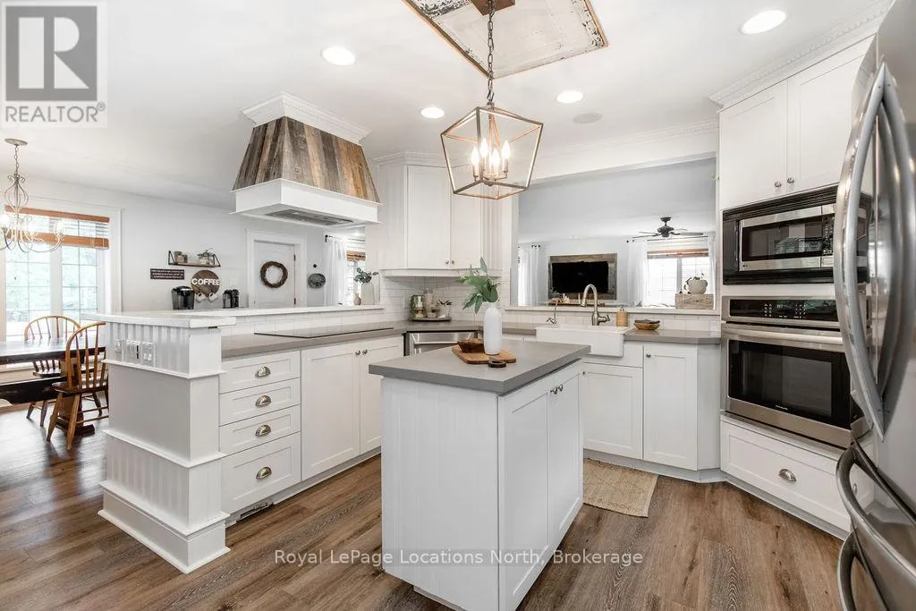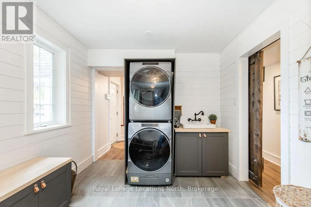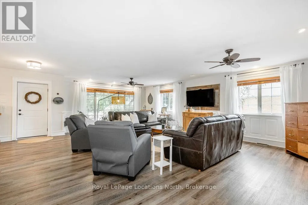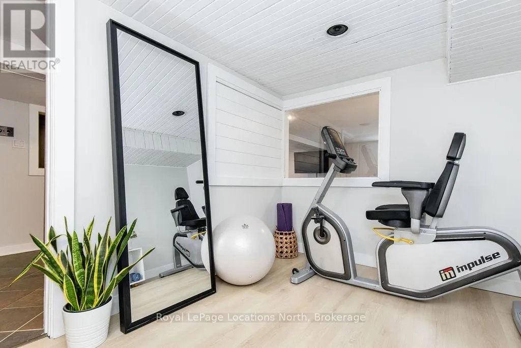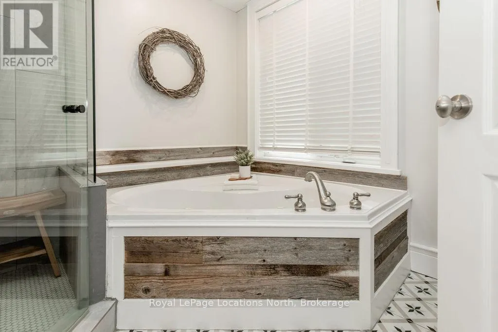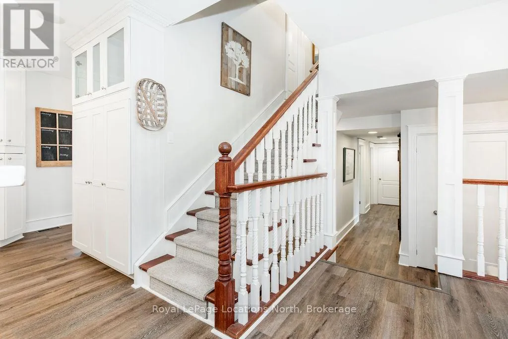 HWY 26 TO STAYNER (S) ON HURON SOUTH HURON MEADOWS TO JANE DETACHED SHOP + SECOND DRIVEWAY. In Law capability. Welcome to this charming piece of paradise in the heart of Stayner. Nestled on a PRIVATE 93' x 158' lot surrounded by mature trees, this beautifully updated 4-bedroom, 4-bathroom home offers exceptional space, comfort, and privacy. The backyard is an entertainers dream featuring an above-ground pool with a large composite deck, hot tub, outdoor kitchen, dining area, lounging zones, and a cedar sauna. A cozy she shed adds the perfect escape for quiet moments. One of the standout features is the detached oversized garage/shop with soaring ceilings, hydro, and its own driveway is deal for a workshop, home business, or extra storage. There's also ample room to park boats, trailers, or multiple vehicles. Inside, the home impresses with a stylish front mudroom/laundry with barn door, two bedrooms, and a full bathroom on the entry level. The main floor offers a spacious dining area with room for a harvest table, a classic kitchen with quartz counters, farmhouse sink, breakfast bar, and stainless steel appliances, along with a large living room and sunken family room with vaulted ceilings, gas fireplace, built-ins, and walkout to the backyard. The primary suite includes a Juliet balcony, 4-piece ensuite, and a 2024 custom closet system. The lower level adds even more living space with a rec room, new wet bar with wine fridge and butcher block counters, a 3-piece bath, and an exercise room across from the sauna. Additional highlights include an RO water system, 2015 AC and furnace, extra attic insulation, built-in sound system, and a full renovation completed in 2002. Looking for a unique home that is meticulous- this is the one! (id:27476)