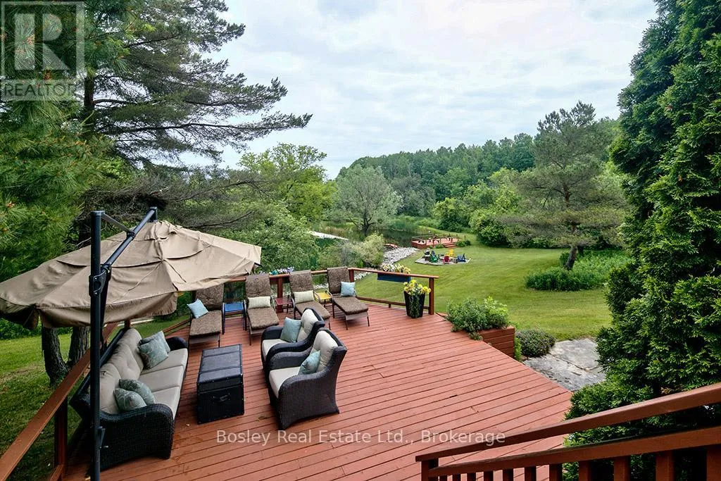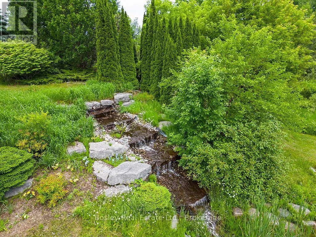 Hwy 124 and 36/37 Sideroad Welcome to 7496 Nottawasaga Sideroad 36/37 a truly one-of-a-kind luxury estate nestled on 4.5 private acres in one of the area's most sought-after neighbourhoods. This custom-built walk-out bungalow offers the perfect blend of elegance, recreation, and tranquility, surrounded by meticulously landscaped grounds and breathtaking natural beauty. Step inside to over 3700 square feet of finished living space, featuring 6 spacious bedrooms and 4 bathrooms, ideal for entertaining guests. The open-concept main floor is flooded with natural light and showcases the view of the property, hardwood floors, and seamless flow between the kitchen, formal dining area, and great room with fireplace. Outdoors, the lifestyle features are second to none unwind in your private hot tub overlooking a tranquil spring-fed pond with a hardscaped waterfall, or perfect your short game on the professionally designed golf green with 5 elevated tee boxes perched above a stream at the top of the home. A winding driveway leads you through what looks like a private resort, offering exceptional privacy Additional highlights include a greenhouse for year-round gardening, abundant storage throughout, and a walk-out lower level. This rare offering is surrounded by estate homes and country estates, just minutes to Collingwood, Blue Mountain, and all the lifestyle amenities of Southern Georgian Bay. Don't miss this opportunity to own a private resort-like property where every detail has been thoughtfully curated. ** This is a linked property.** (id:27476)