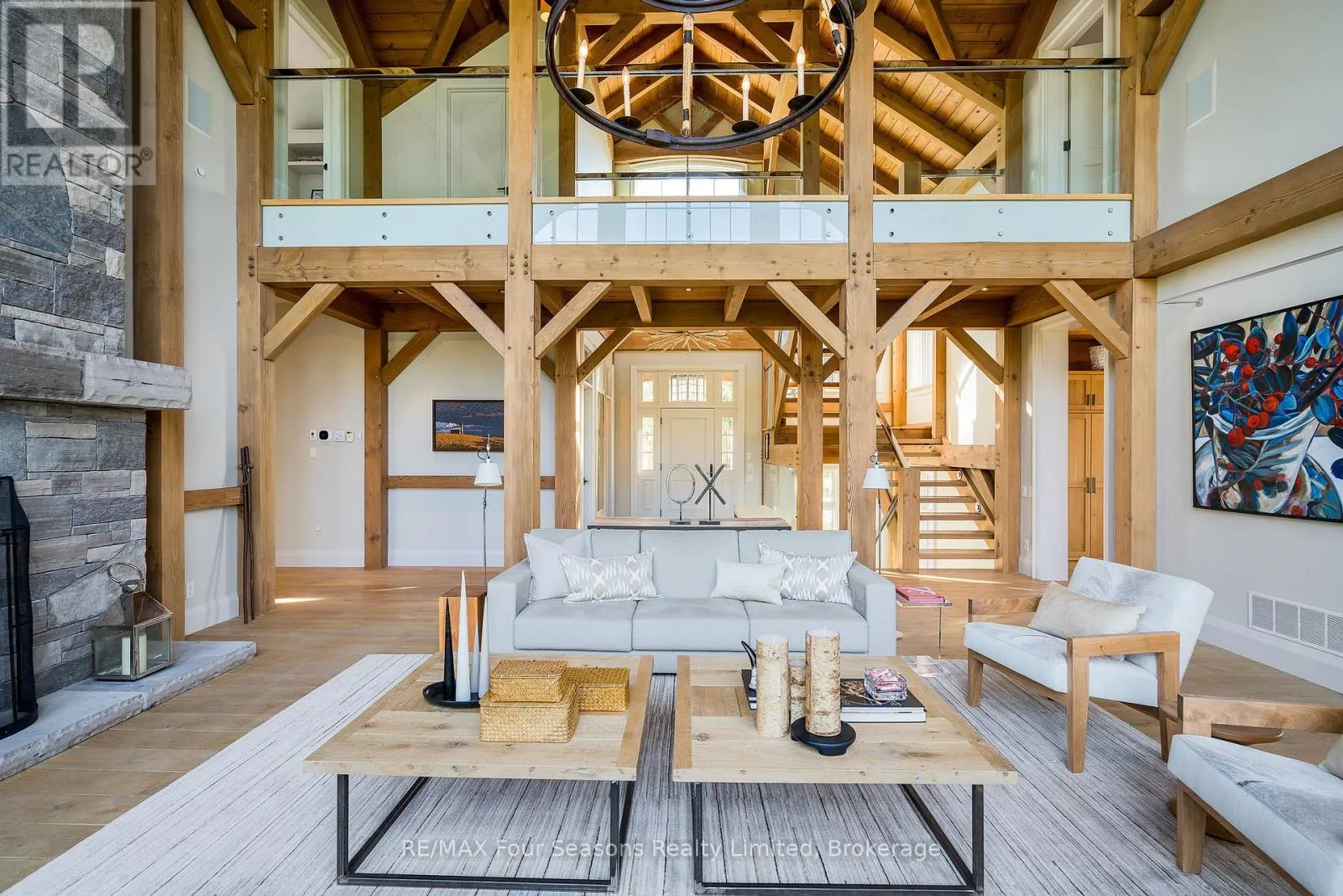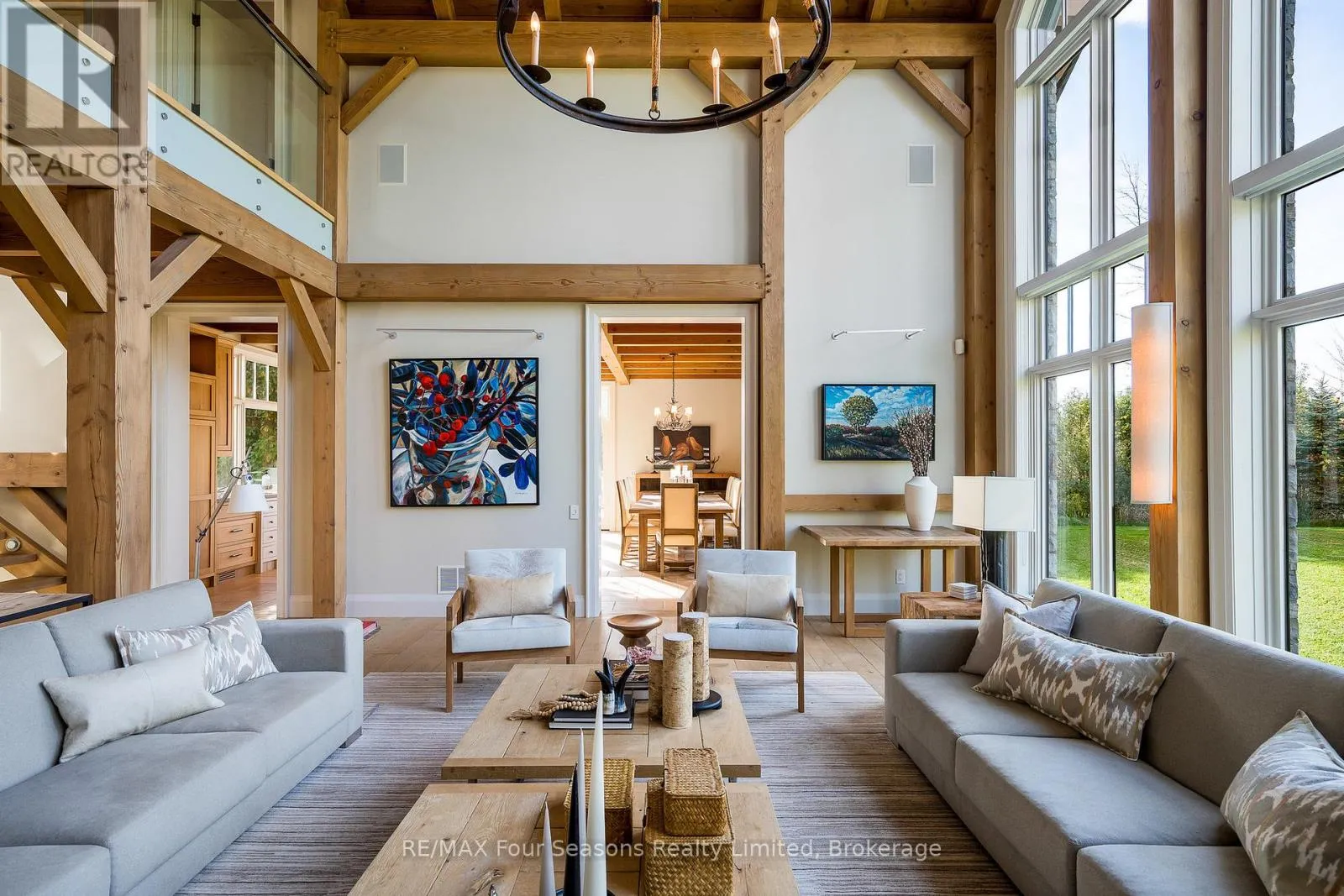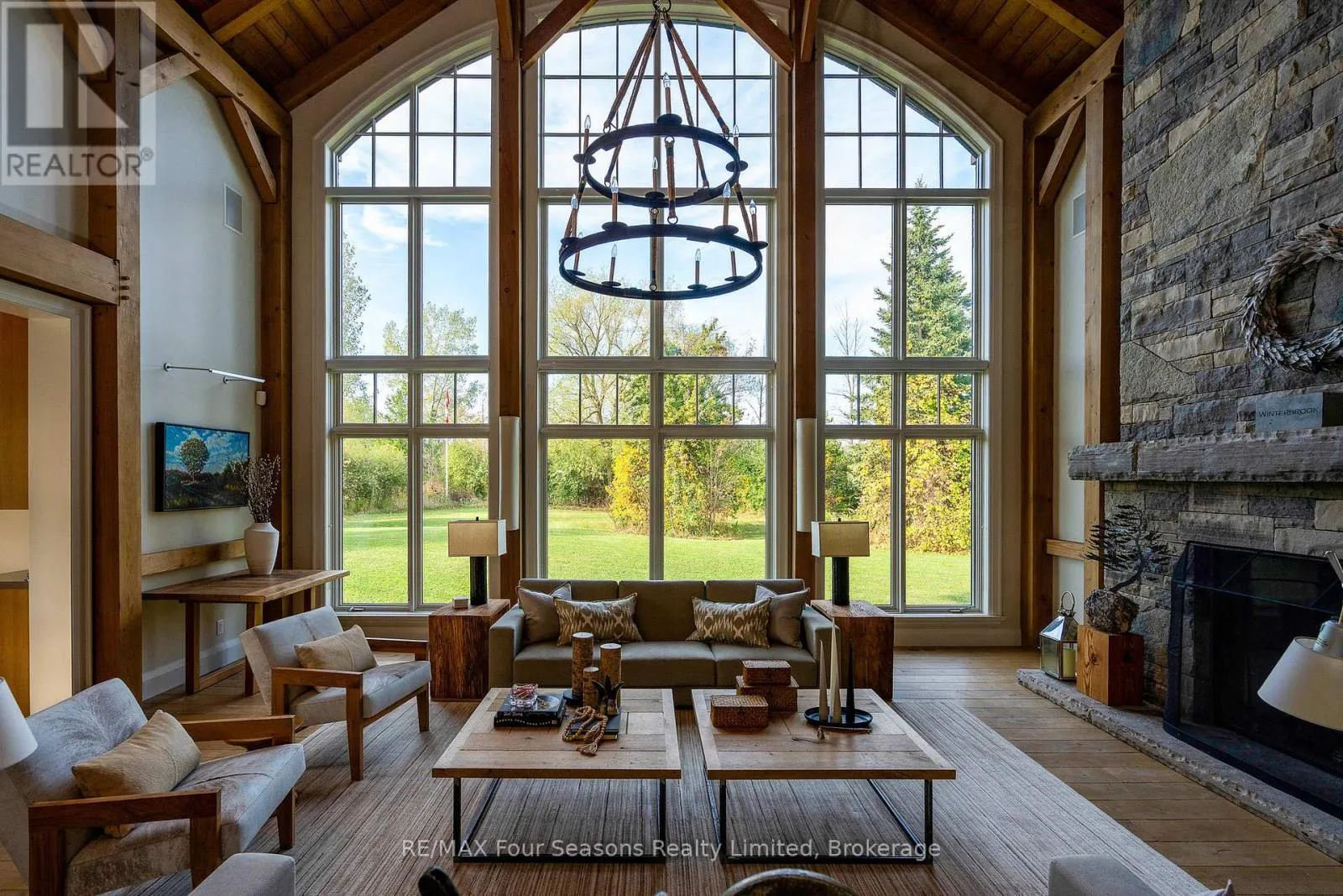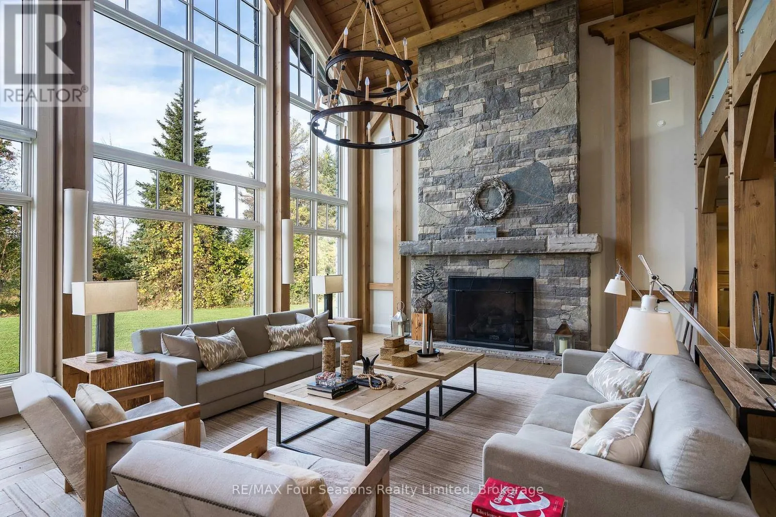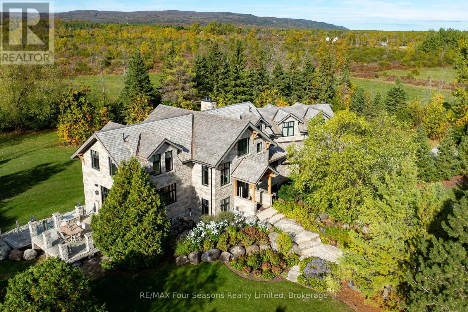 Cross Streets: Poplar & Nottawasaga Concession 10. ** Directions: Take Polar Side Rd west to Nottawasaga Concession 10. South on Nottawasaga Concession 10 to #2710. Introducing Winterbrook, a luxurious custom estate home masterfully crafted by Dalton Beachli. Nestled on just under two acres of beautifully landscaped grounds, this extraordinary residence is surrounded by panoramic views of the escarpment, Osler Brook Golf Course, and Osler Bluff Ski Club, and backs onto 98 acres of peaceful forest/farmland. Being offered fully furnished, this home is both a refined gathering place and a serene private retreat, perfectly balancing sophistication, comfort, and connection to nature. Encompassing 5,321 square feet of exquisitely finished living space, Winterbrook features six bedrooms, five bathrooms, and a curated selection of high-end finishes and upgrades. The main level showcases imported Belgian quarter-sawn white oak floors, while the kitchen is enhanced with reclaimed Belgian limestone and high end appliances. At the heart of the home, an Eramosa stone fireplace from Owen Sound creates a striking focal point anchoring the open-concept living space with timeless natural beauty, along with the 26-foot ceilings and floor-to-ceiling windows that capture sweeping views from every angle. Designed equally for entertaining and unwinding, the home offers a commercial-grade gym, three fireplaces, and a custom mudroom to complement an active, four-season lifestyle. Outside, a spectacular outdoor oasis extends the living space across the full width of the home. Enjoy dining, lounging, and hot-tub areas that invite relaxation and connection. Begin your day with sunrises over the terrace, and end with evenings by the fire pit, as cotton candy skies fade into starlit nights. Whether hosting a summer soiree or an intimate winter gathering, every moment here is framed by natural beauty. Ideally located just minutes from Osler Bluff Ski Club, Blue Mountain, and downtown Collingwood, Winterbrook is a true four-season paradise and is a celebration of craftsmanship, design, and modern luxury that defines extraordinary living. (id:27476)