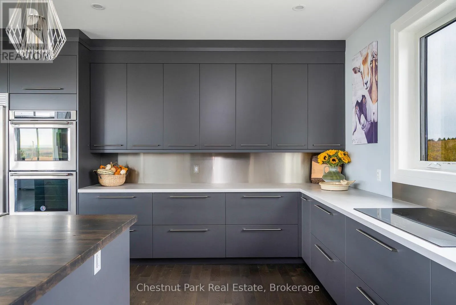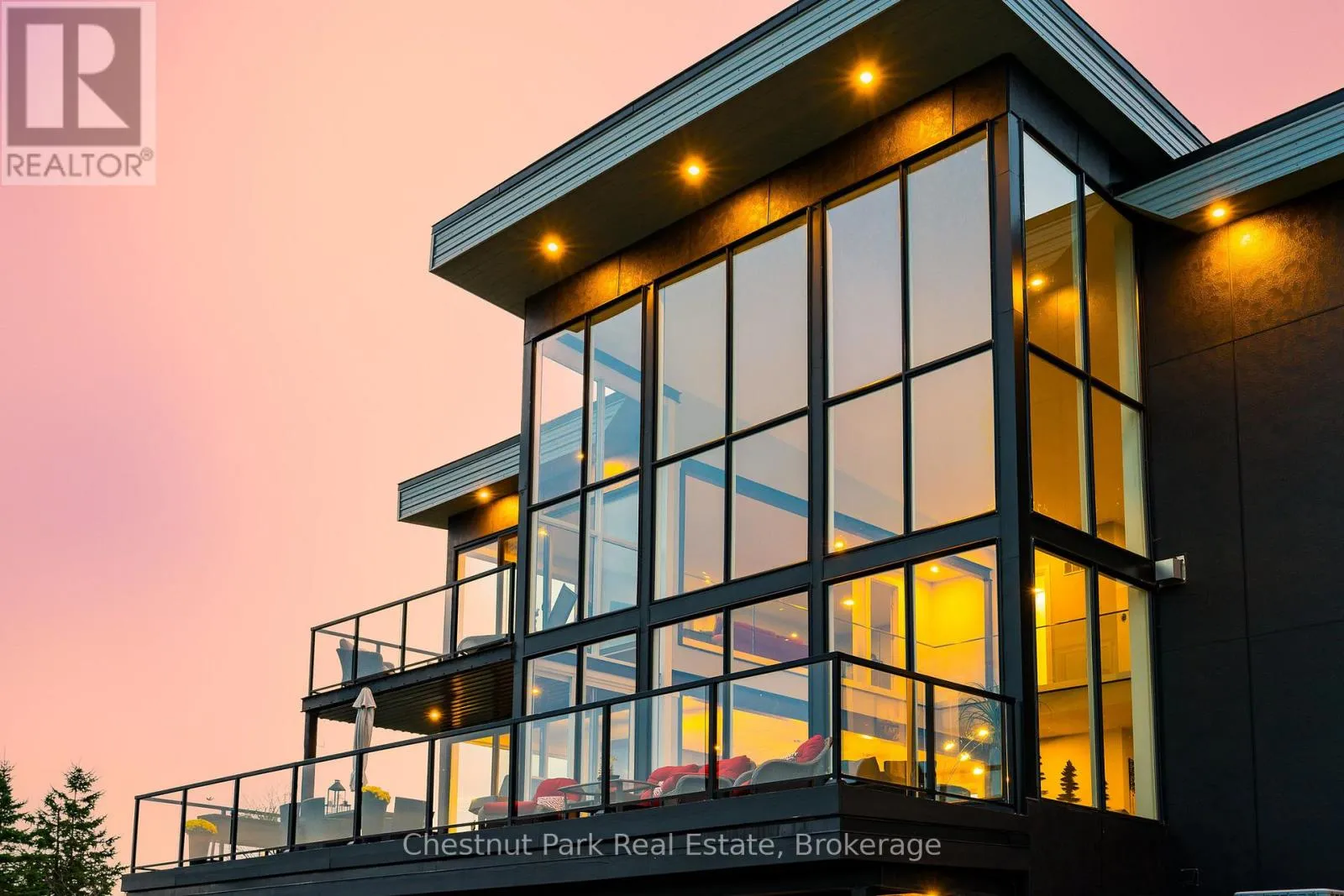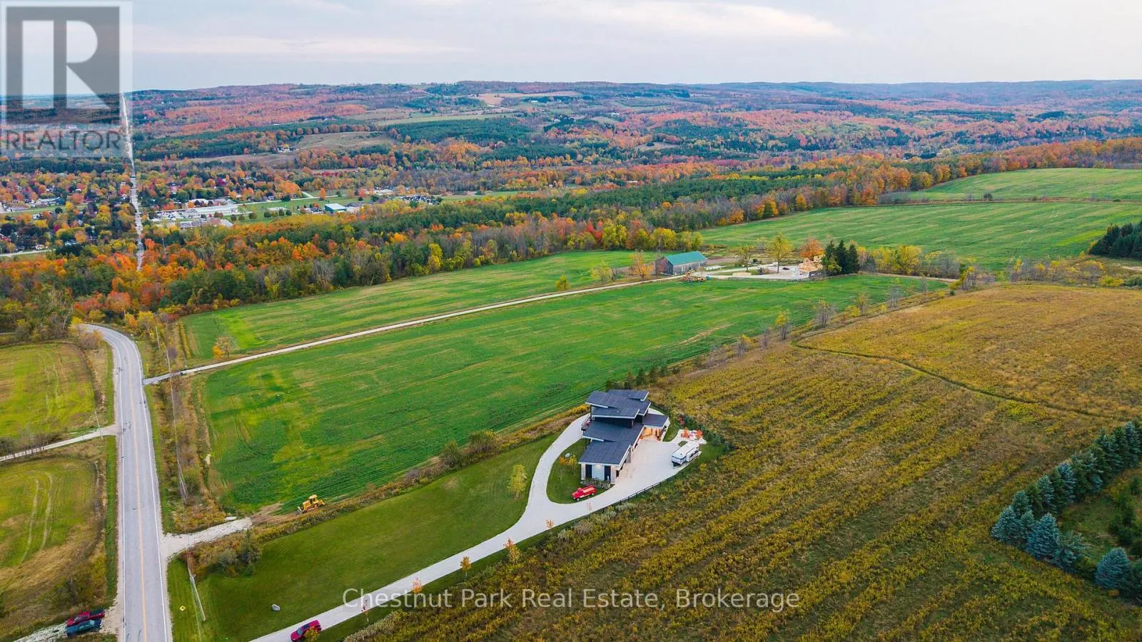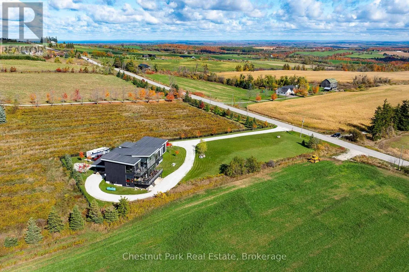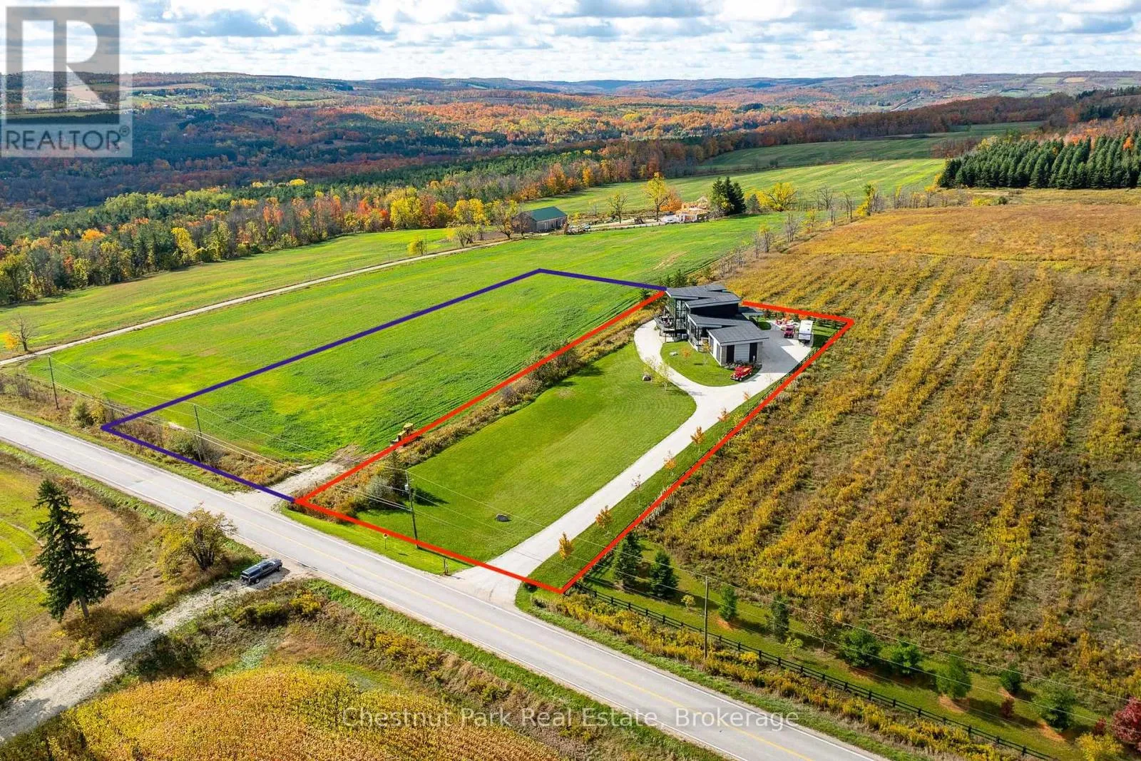 Cross Streets: Fairgrounds Road and SR 12/13. ** Directions: Fairgrounds Road north from Creemore to #2642. Architectural glass, steel, and panoramic views define this modern masterpiece overlooking the village of Creemore. Built in 2019 and set on 1.4 acres, this 4-bedroom, 3-bath home offers approximately 4,000 sq. ft. of finished living space with 180-degree vistas over the Creemore Hills, reaching to Alliston and Barrie. The striking design features steel beams, opposing rooflines, and floor-to-ceiling Dashwood windows that flood the interiors with light and frame the valley's ever-changing skies-from golden sunsets to the incredible canopy of stars above. Elevated above the village and free from city glow, this is a stargazer's dream home, where the night sky feels within reach through expansive glass walls. The chef's kitchen includes Cabneato custom cabinetry, quartz countertops, a 6'x10' wormy maple island, KitchenAid double ovens, 5-burner cooktop, and a 54" Frigidaire Professional fridge/freezer. A butler's pantry adds additional prep and storage space. Dark maple hardwood floors, designer lighting, and heated tile baths bring warmth to the modern aesthetic. The insulated, metal-lined four-car garage with gas heat, insulated doors, and hot/cold water is ideal for collectors. Durable Hardie board exterior and a solid drilled well ensure low-maintenance, worry-free living. Importantly, both this property and the adjacent 1.82-acre lot (available separately) are not subject to NEC or NVCA regulation, allowing for future additions like a pool, tennis court, or guest house with far fewer approvals required. Just minutes from Creemore's shops and restaurants, and 15 minutes to Collingwood, Devil's Glen, and Mad River Golf Club. A rare combination of architecture, freedom, and breathtaking views. (id:27476)