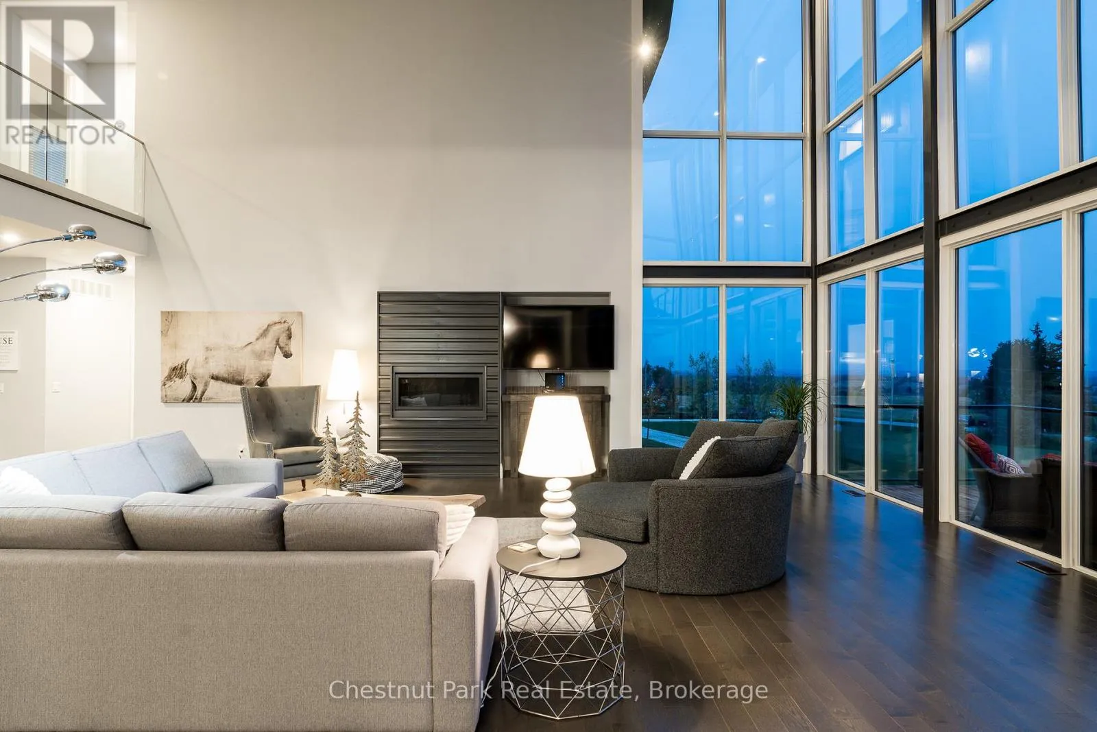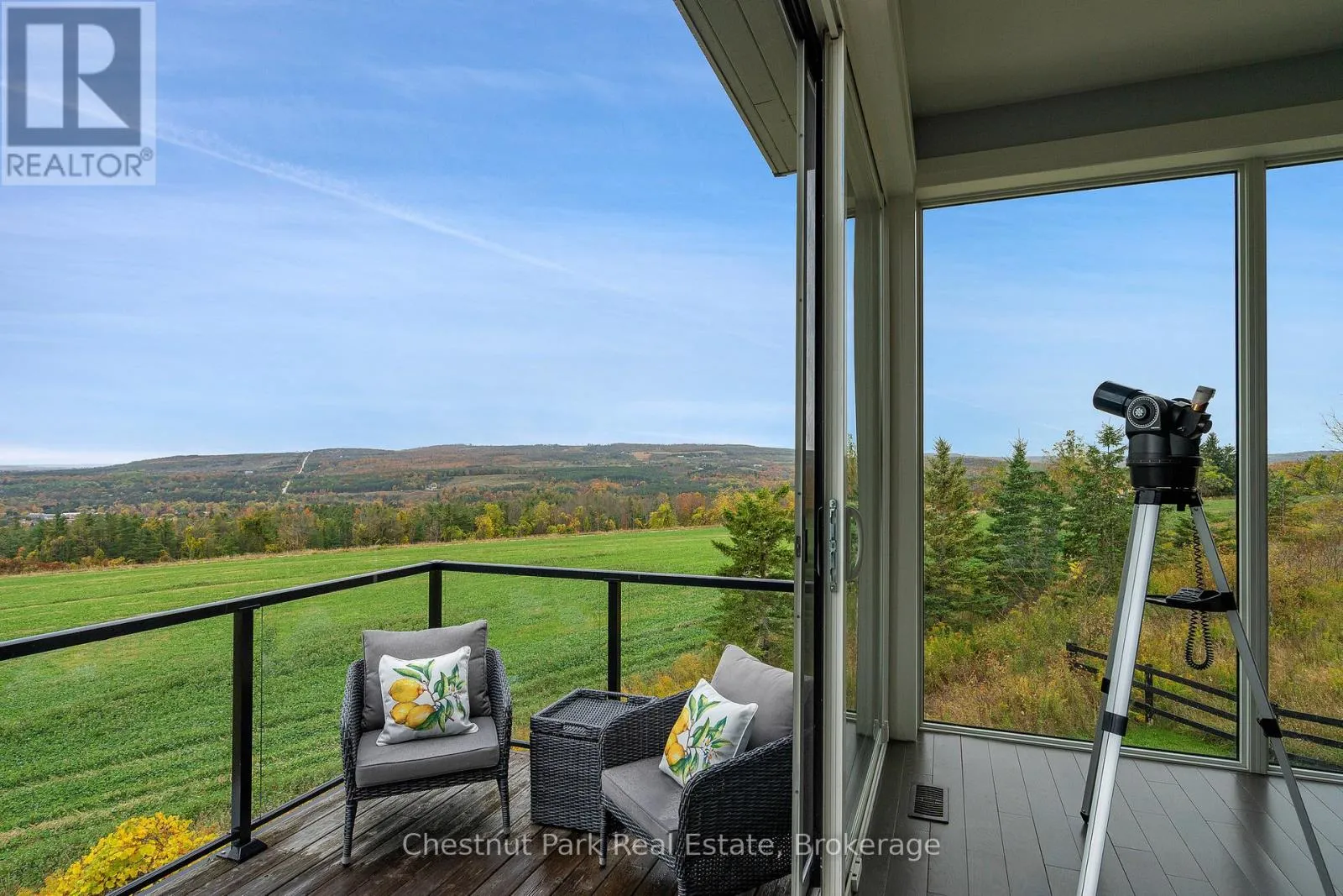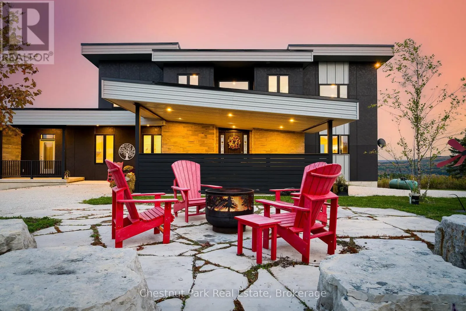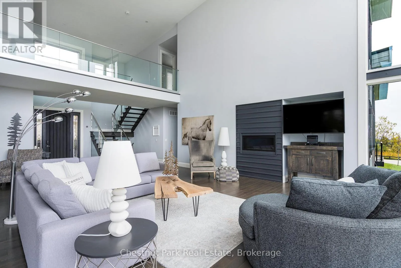 Cross Streets: Fairgrounds Road and SR 12/13. ** Directions: Fairgrounds Road north from Creemore to #2642. Architectural glass, steel, and panoramic views define this modern masterpiece overlooking the village of Creemore. Built in 2019 and set on 1.4 acres, this 4-bedroom, 3-bath home offers approximately 4,000 sq. ft. of finished living space with 180-degree vistas over the Creemore Hills, reaching to Alliston and Barrie. The striking design features steel beams, opposing rooflines, and floor-to-ceiling Dashwood windows that flood the interiors with light and frame the valley's ever-changing skies-from golden sunsets to the incredible canopy of stars above. Elevated above the village and free from city glow, this is a stargazer's dream home, where the night sky feels within reach through expansive glass walls. The chef's kitchen includes Cabneato custom cabinetry, quartz countertops, a 6'x10' wormy maple island, KitchenAid double ovens, 5-burner cooktop, and a 54" Frigidaire Professional fridge/freezer. A butler's pantry adds additional prep and storage space. Dark maple hardwood floors, designer lighting, and heated tile baths bring warmth to the modern aesthetic. The insulated, metal-lined four-car garage with gas heat, insulated doors, and hot/cold water is ideal for collectors. Durable Hardie board exterior and a solid drilled well ensure low-maintenance, worry-free living. Importantly, both this property and the adjacent 1.82-acre lot (available separately) are not subject to NEC or NVCA regulation, allowing for future additions like a pool, tennis court, or guest house with far fewer approvals required. Just minutes from Creemore's shops and restaurants, and 15 minutes to Collingwood, Devil's Glen, and Mad River Golf Club. A rare combination of architecture, freedom, and breathtaking views. (id:27476)