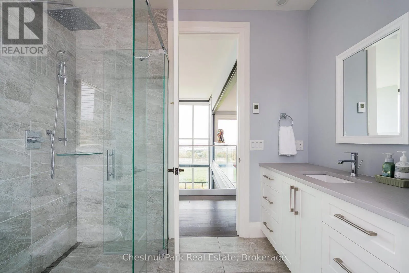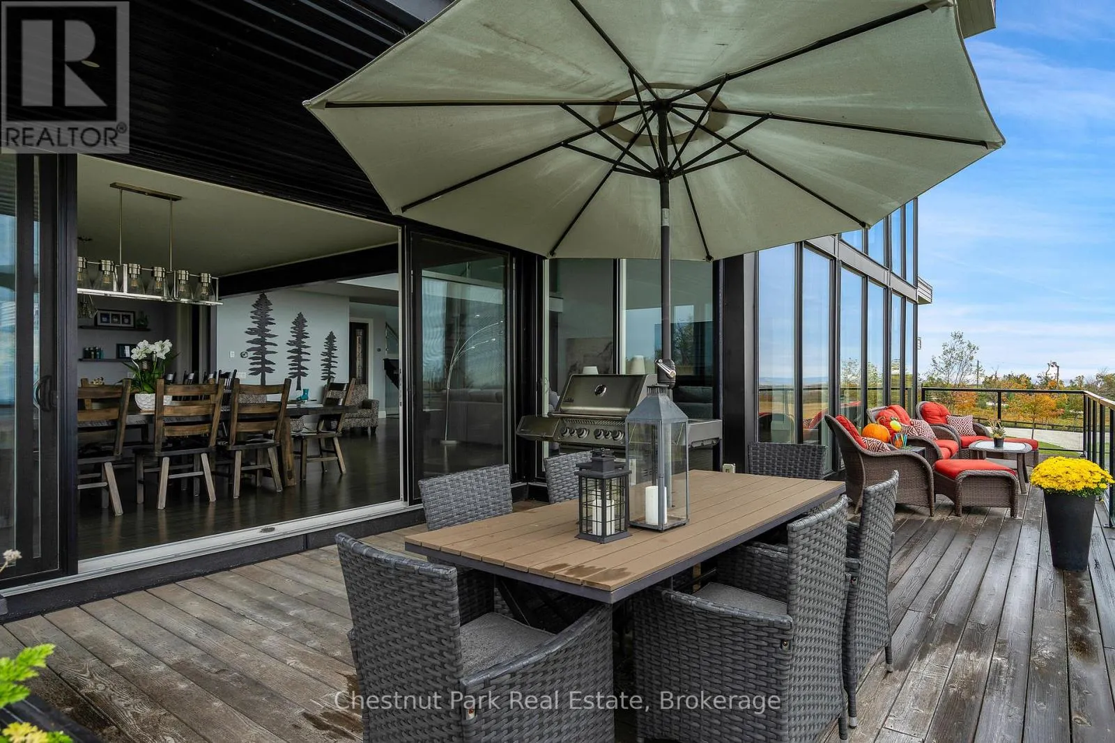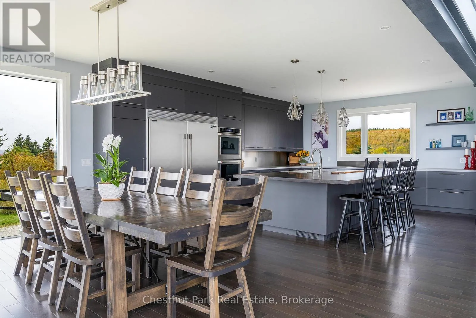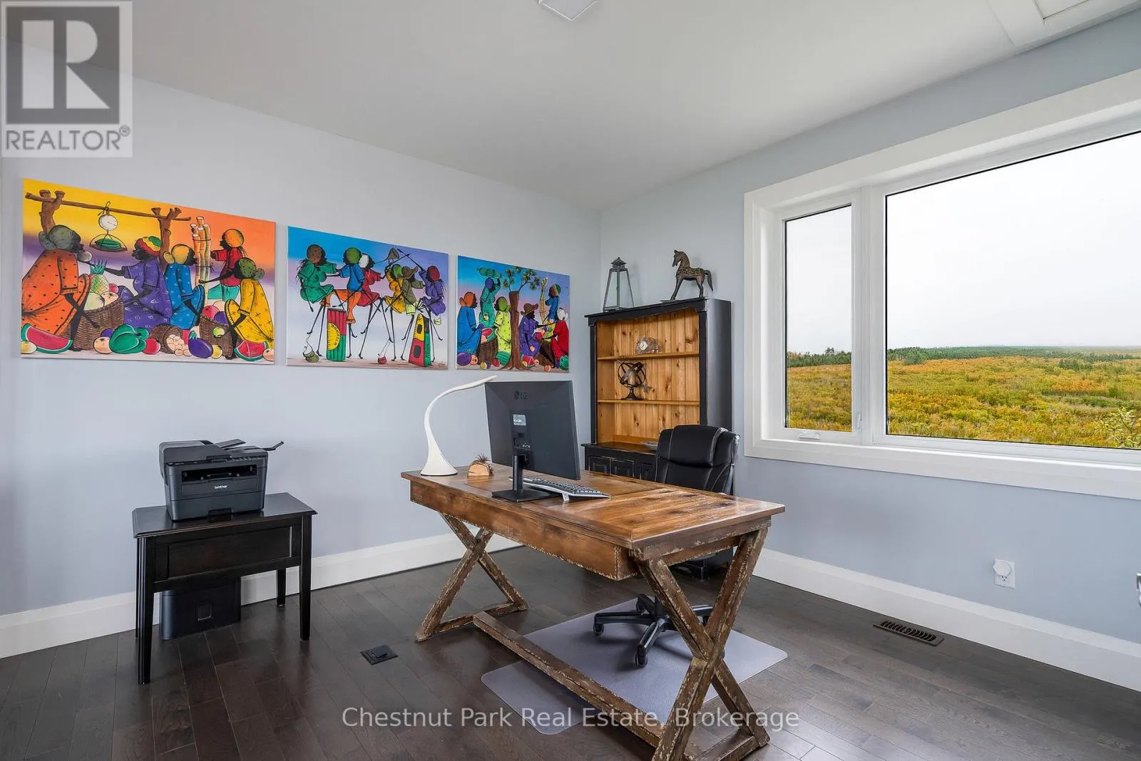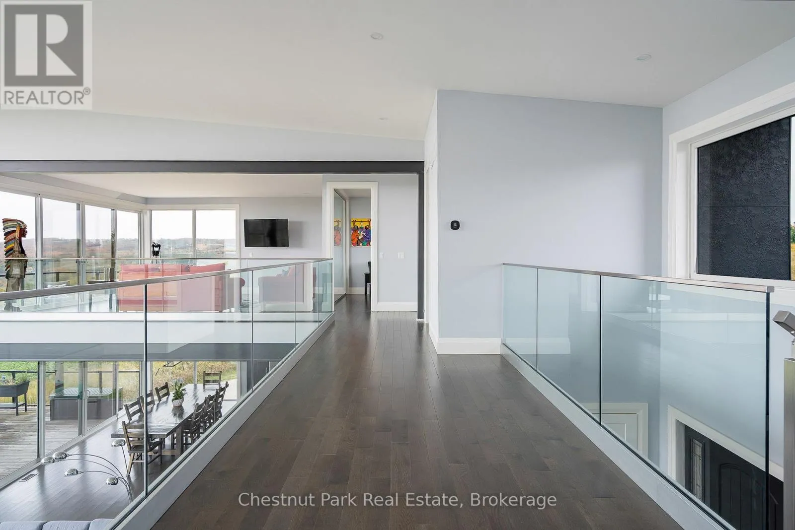 Cross Streets: Fairgrounds Road and SR 12/13. ** Directions: Fairgrounds Road north from Creemore to #2642. Architectural glass, steel, and panoramic views define this modern masterpiece overlooking the village of Creemore. Built in 2019 and set on 1.4 acres, this 4-bedroom, 3-bath home offers approximately 4,000 sq. ft. of finished living space with 180-degree vistas over the Creemore Hills, reaching to Alliston and Barrie. The striking design features steel beams, opposing rooflines, and floor-to-ceiling Dashwood windows that flood the interiors with light and frame the valley's ever-changing skies-from golden sunsets to the incredible canopy of stars above. Elevated above the village and free from city glow, this is a stargazer's dream home, where the night sky feels within reach through expansive glass walls. The chef's kitchen includes Cabneato custom cabinetry, quartz countertops, a 6'x10' wormy maple island, KitchenAid double ovens, 5-burner cooktop, and a 54" Frigidaire Professional fridge/freezer. A butler's pantry adds additional prep and storage space. Dark maple hardwood floors, designer lighting, and heated tile baths bring warmth to the modern aesthetic. The insulated, metal-lined four-car garage with gas heat, insulated doors, and hot/cold water is ideal for collectors. Durable Hardie board exterior and a solid drilled well ensure low-maintenance, worry-free living. Importantly, both this property and the adjacent 1.82-acre lot (available separately) are not subject to NEC or NVCA regulation, allowing for future additions like a pool, tennis court, or guest house with far fewer approvals required. Just minutes from Creemore's shops and restaurants, and 15 minutes to Collingwood, Devil's Glen, and Mad River Golf Club. A rare combination of architecture, freedom, and breathtaking views. (id:27476)